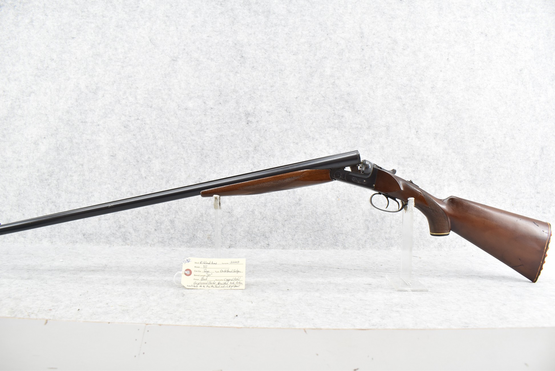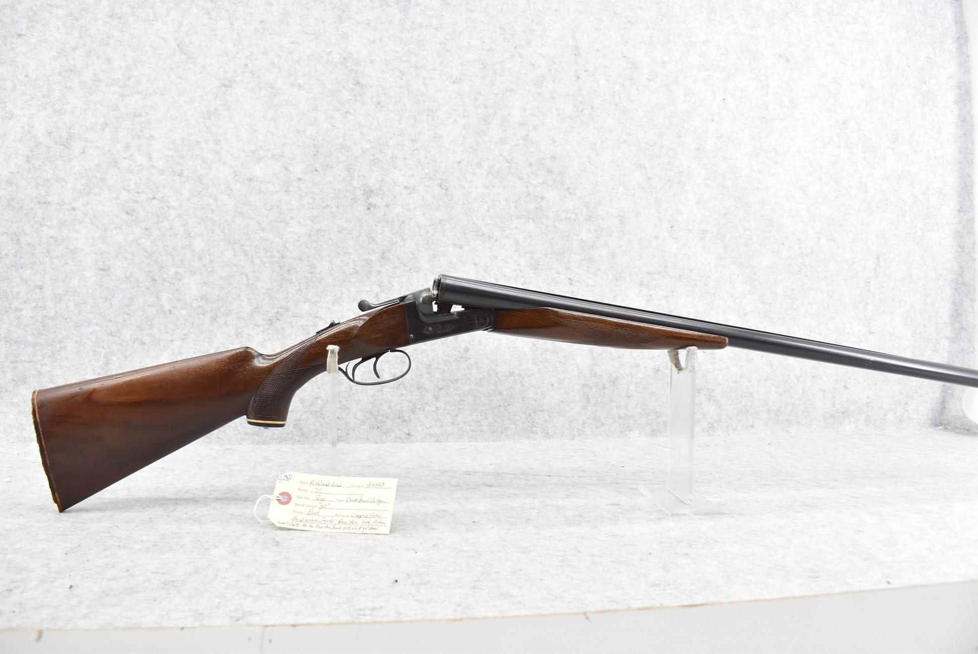 548R. Richland Arms – Mod. 711 – 12ga. Double Barrel Shotgun – w/30” Barrels – Blued Finish – w/Capped Pistol Grip Wood Stocks w/Recoil Pad – Note: Action Won’t Shut Due to Fire Pin Stuck Out on Right Barrel