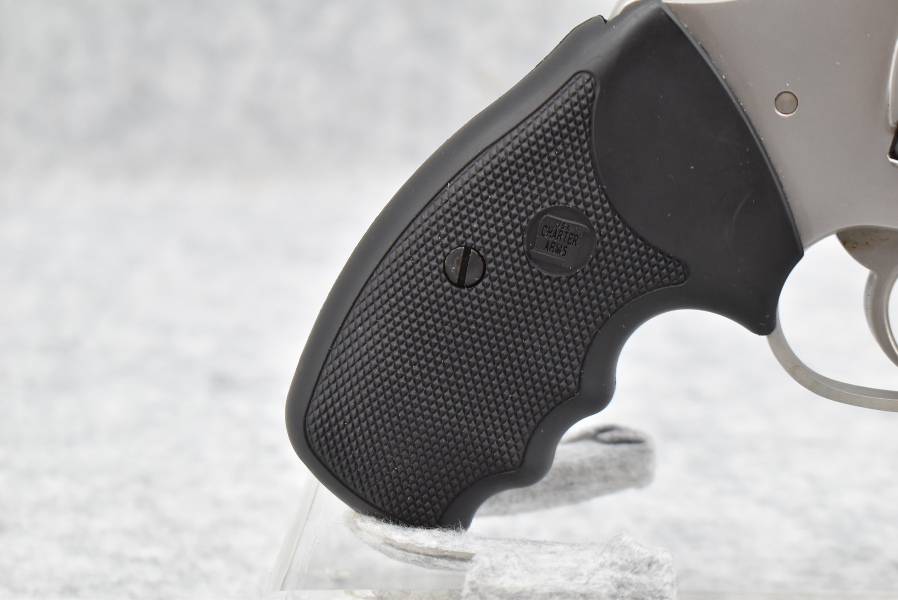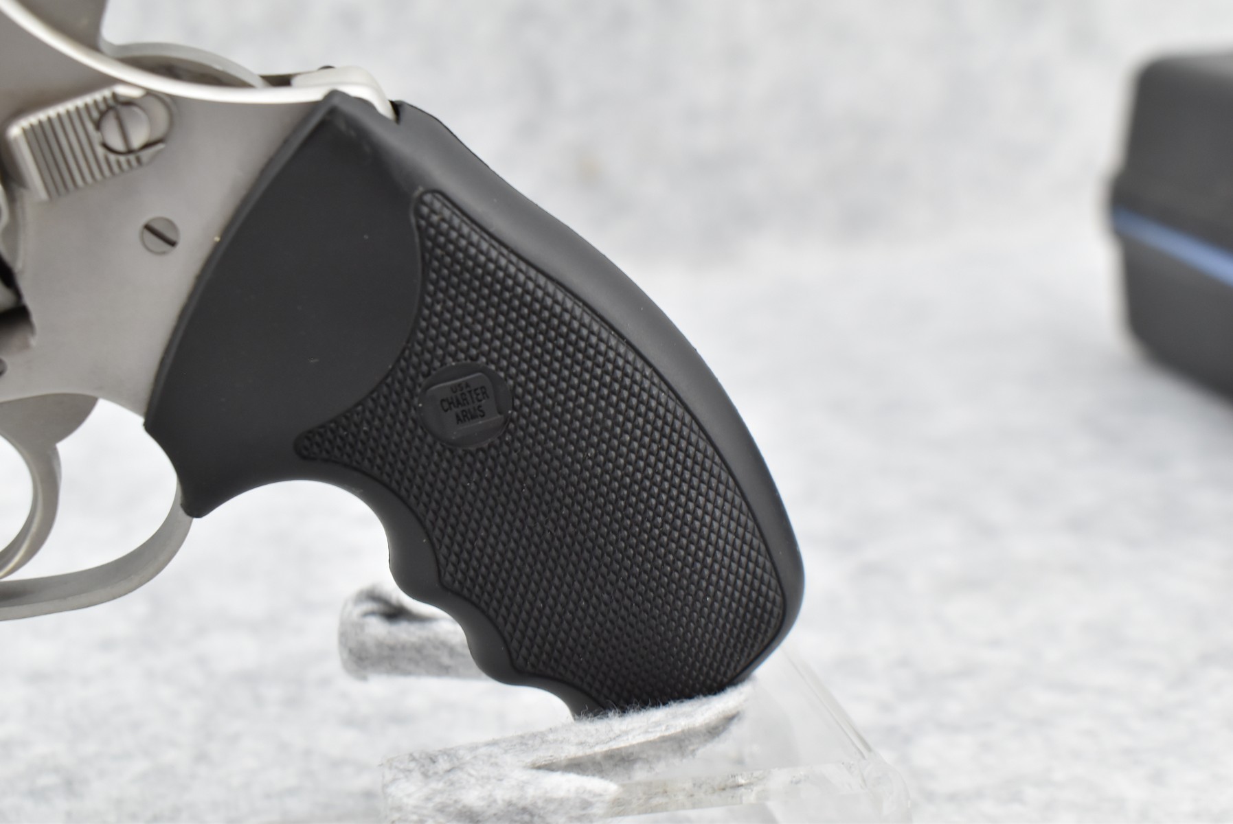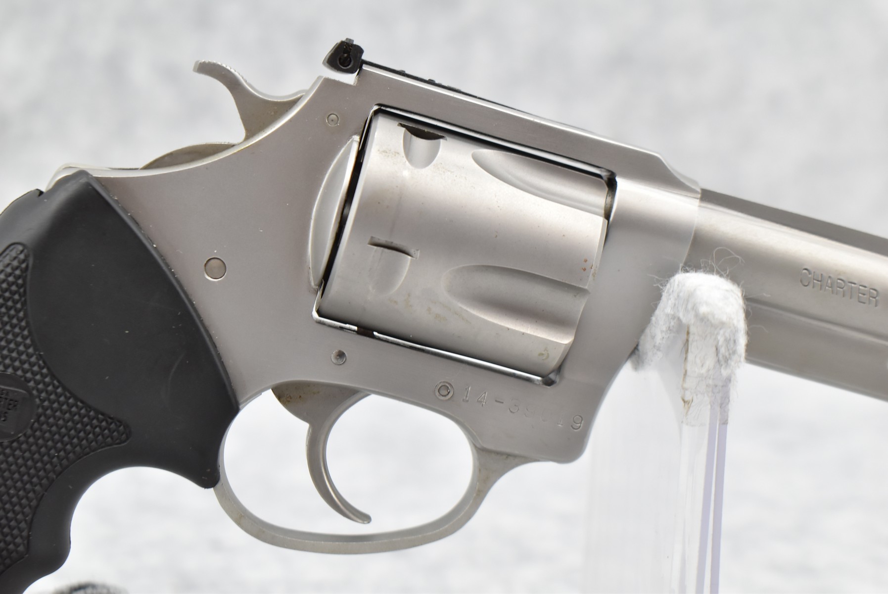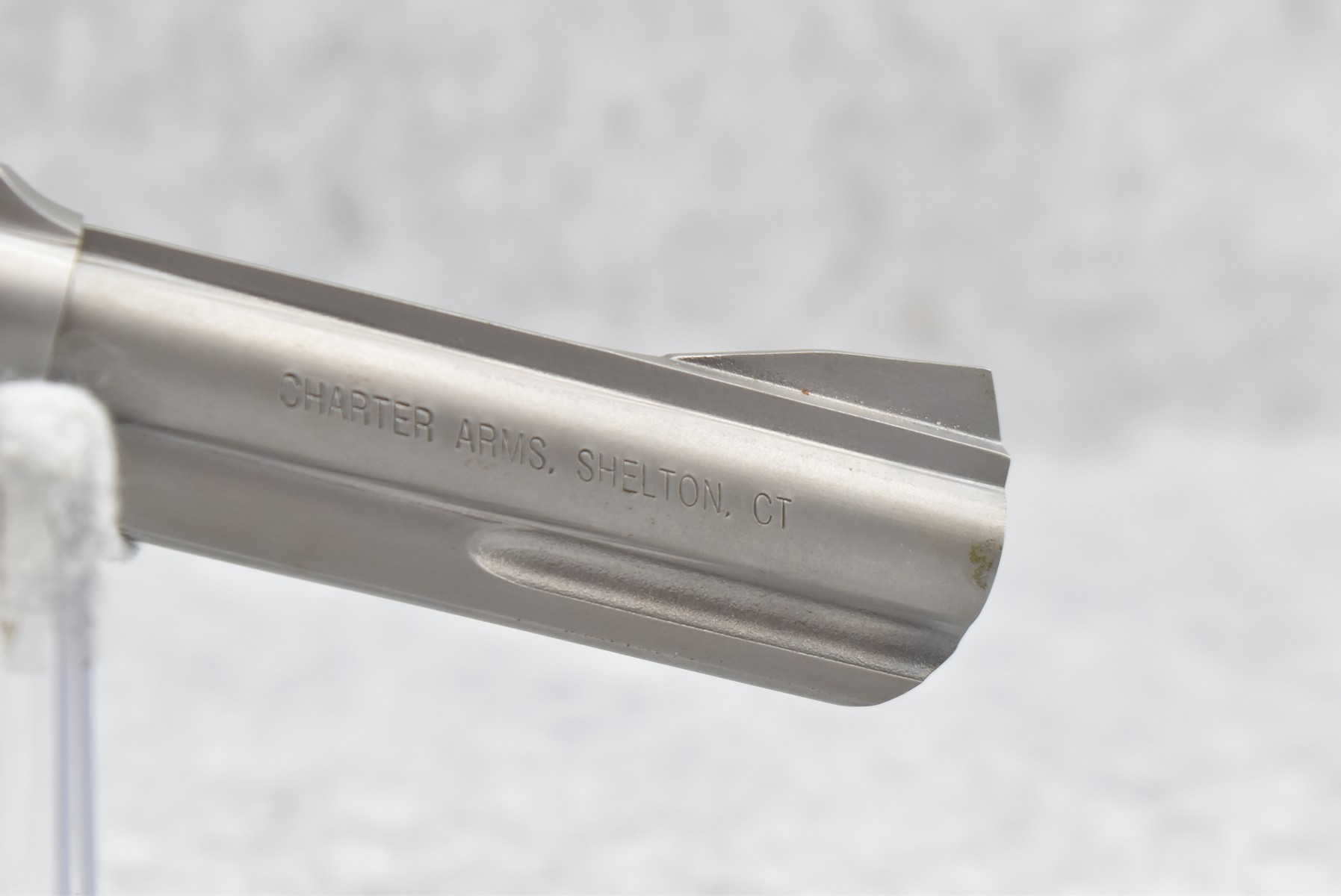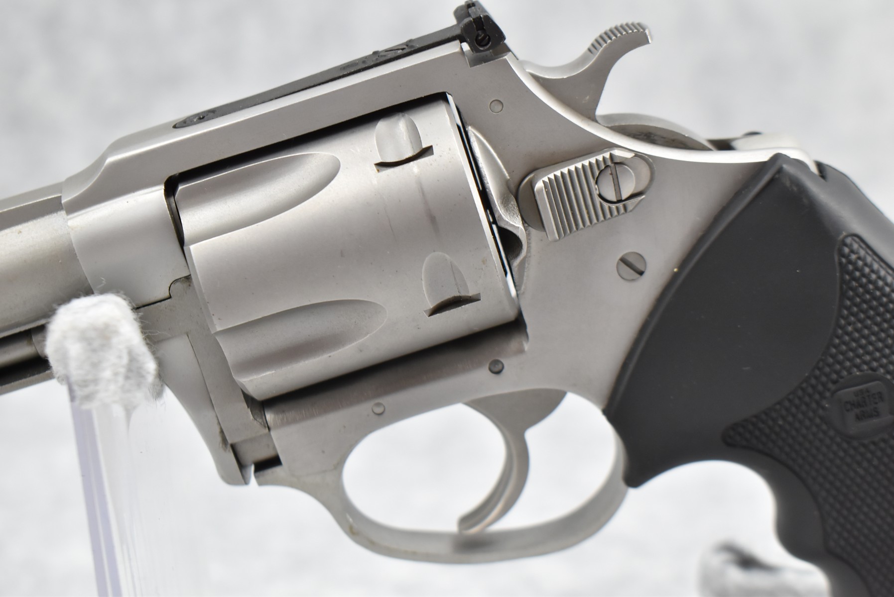 54R. Charter Arms – Mod. Target Bull Dog – 357 Mag. Cal. Double Action Revolver – w/4” Barrel w/Front Blade & Rear Adj. Sight – Matte Stainless Finish – w/Factory Grooved Rubber Grip – As New w/Factory Hard Case, Manual & Lock