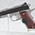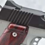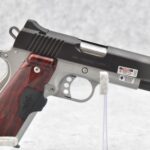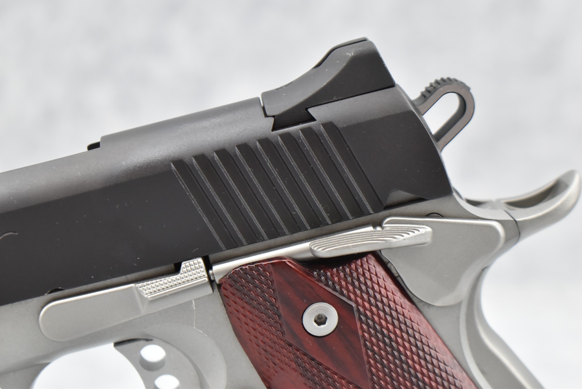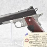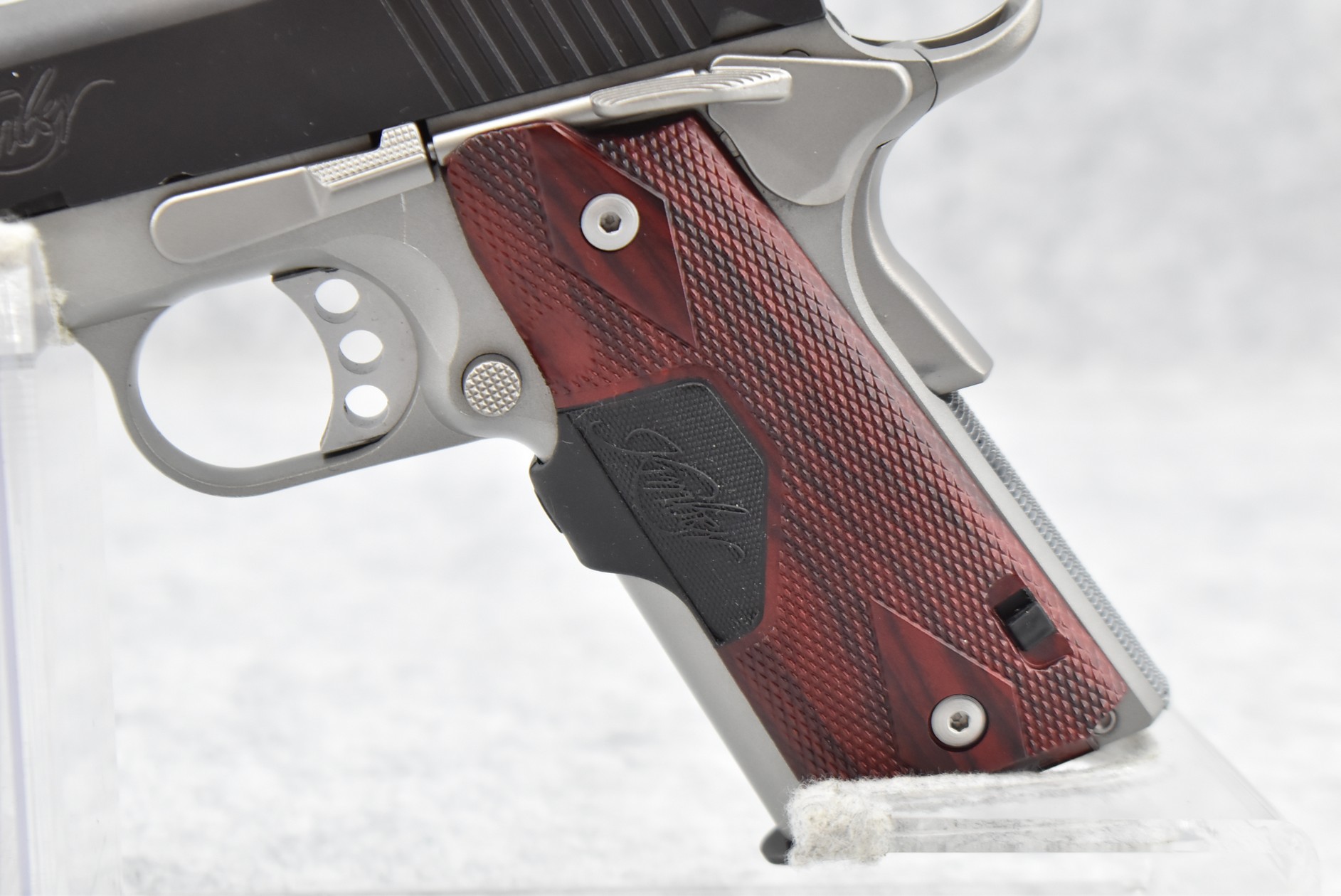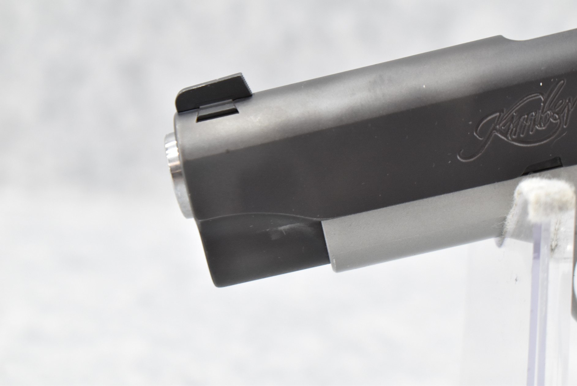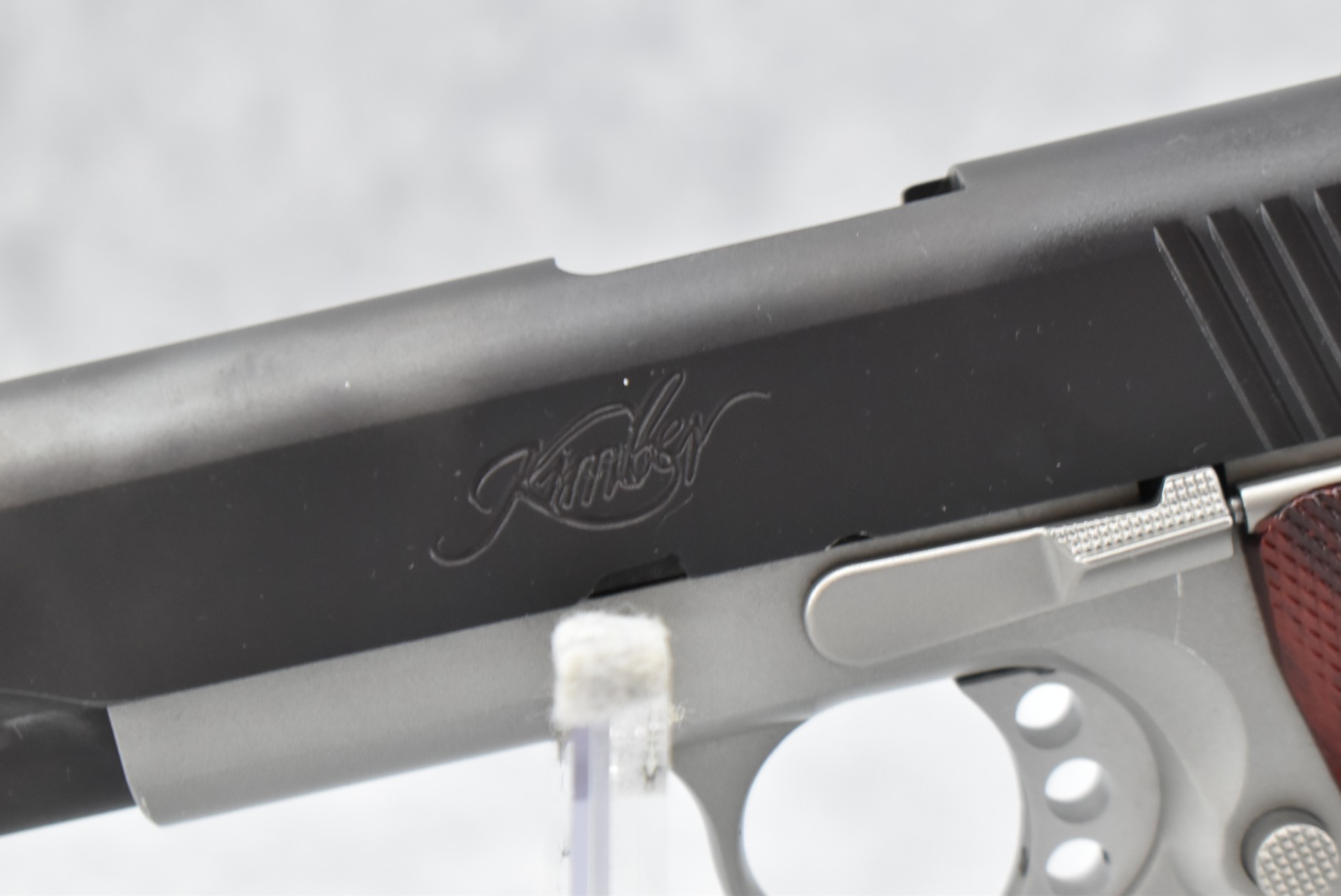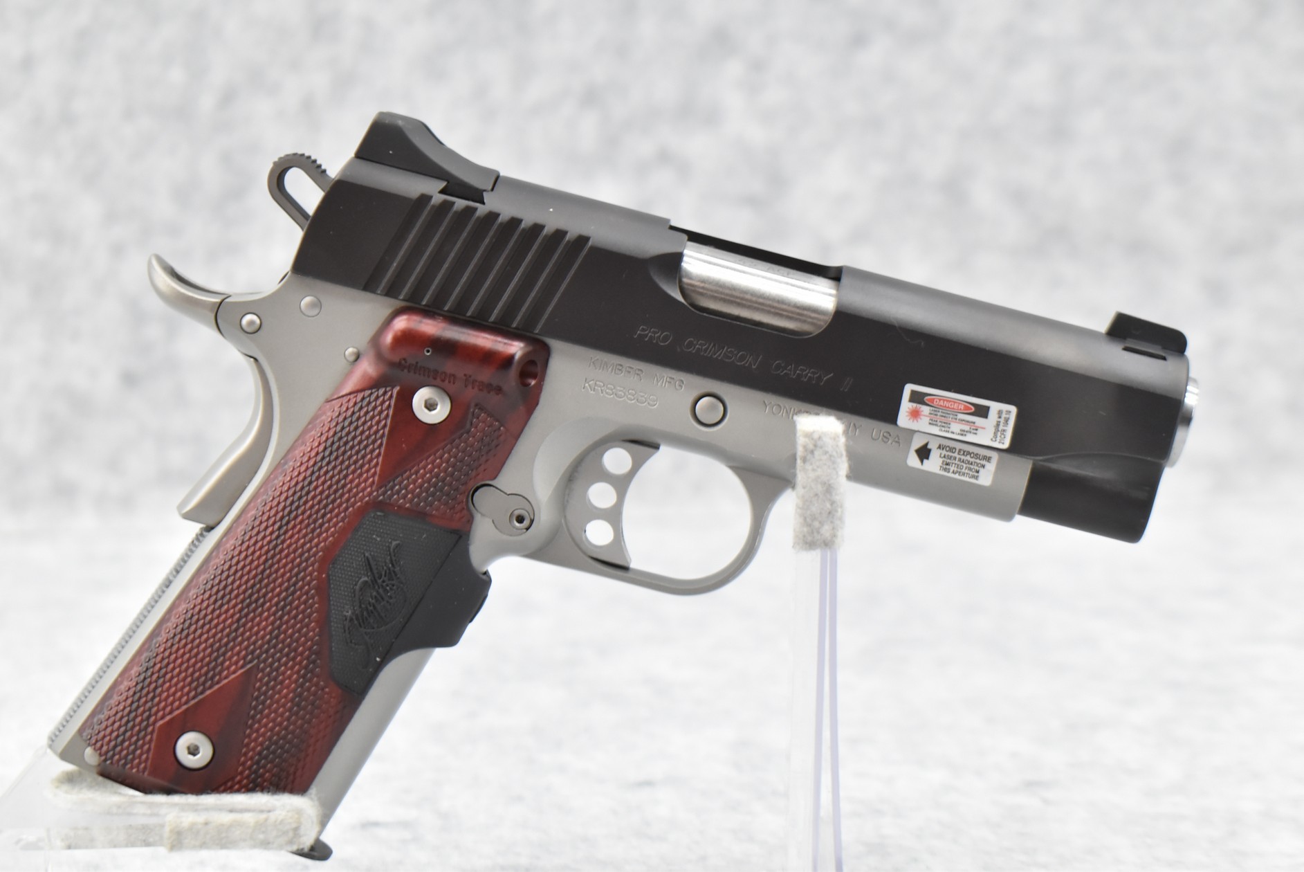 54R.       Kimber – Mod. Pro Crimson Carry II – 45 ACP Cal. Semi-Auto Pistol – w/3 ¾” Barrel w/Iron Sights – Black/Stainless Two-Tone Finish – w/Checkered Wood Grips w/Crimson Trace Grip Laser – w/Factory Hard Case, Magazine & Manual
