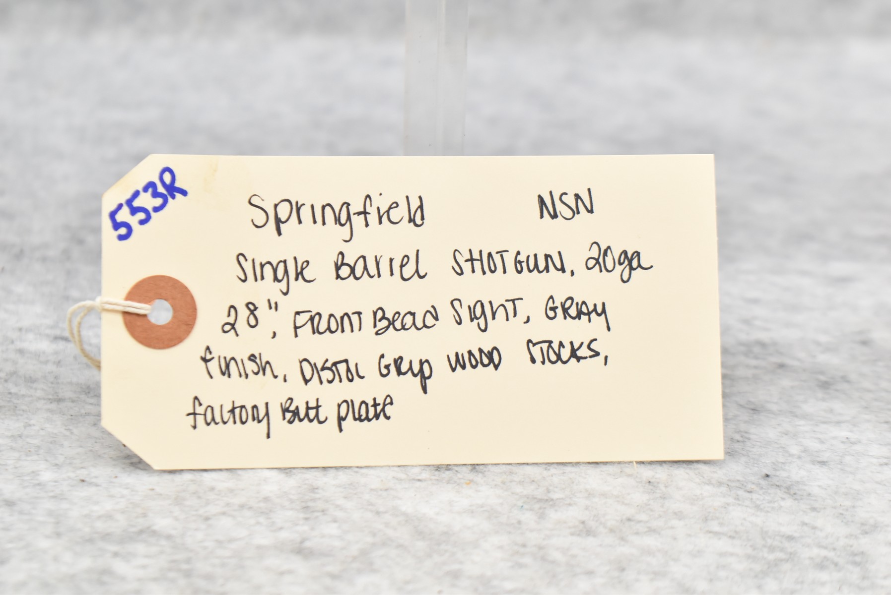 553R. Springfield – 20ga. Single Barrel Shotgun – w/28” Barrel w/Front Bead Sight – Gray Finish – w/Pistol Grip Wood Stocks w/Factory Butt Plate
