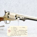 560. Italian – Mod. 1851 Navy – 36 Cal. Percussion Black Powder Revolver – w/7 ½” Octagon Barrel w/Front & Notch Rear Sights – In the White Finish – w/Smooth Wood Grips – w/Wood Presentation Case, Powder Flask, Bullet Mold & Percussion Caps