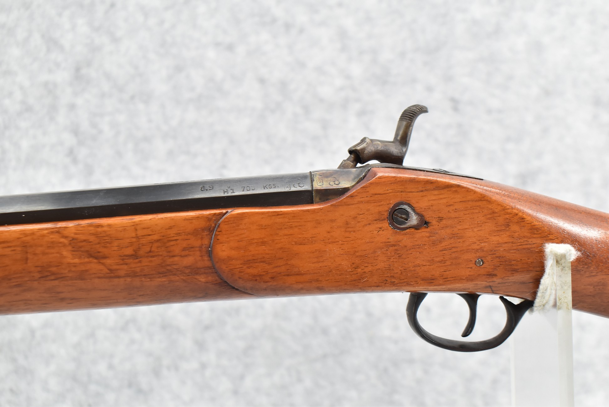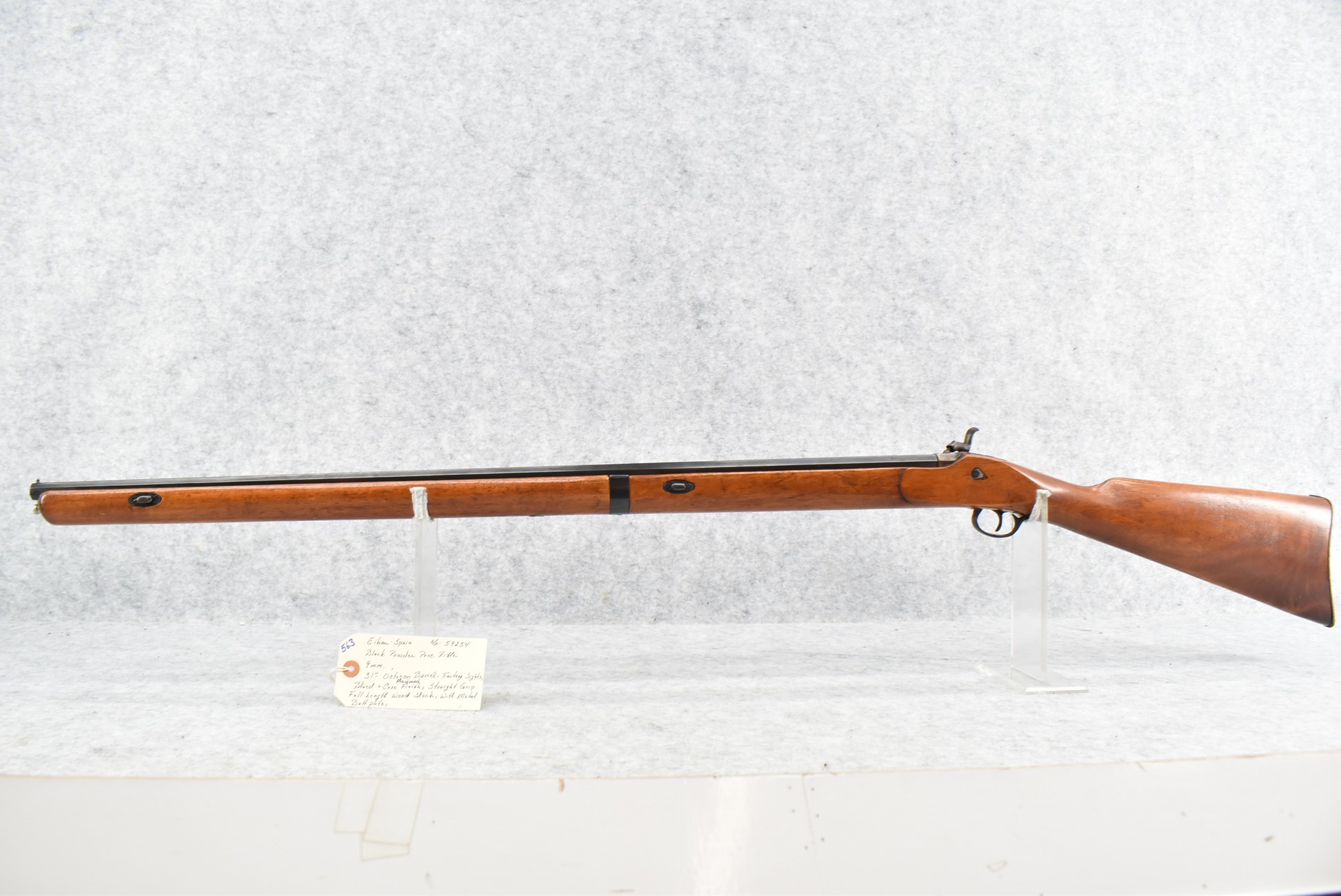 563. Eibar-Spain – 9mm Cal. Black Powder Percussion Rifle – w/31” Octagon Barrel w/Factory Sights – Blued Finish w/Case Hardened Lock – w/Straight Grip Full Length Wood Stock w/Metal Butt Plate