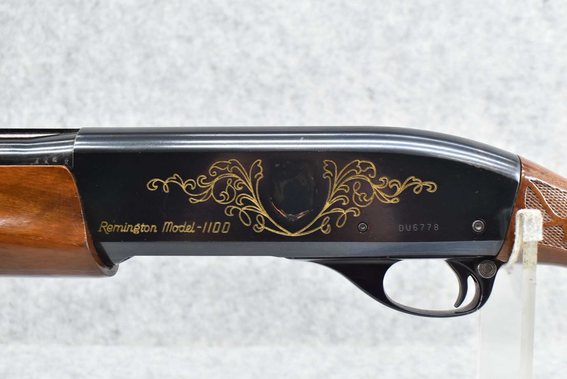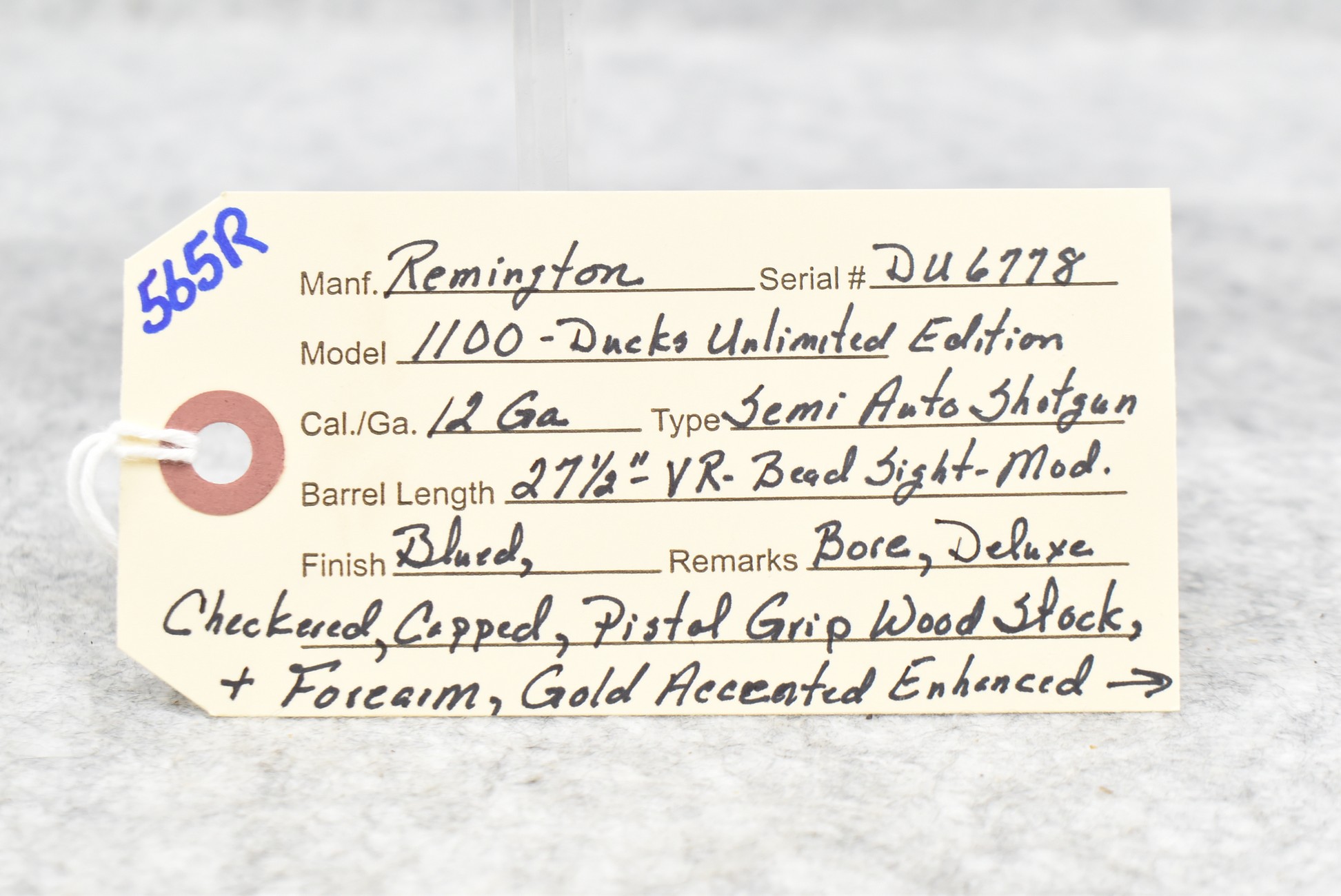 565R. Remington – Mod. 1100 – Ducks Unlimited Edition – 12ga. Semi-Auto Shotgun – w/27 ½” Mod. Choke, Vent-Rib Barrel w/Bead Sight – Blued Finish w/Gold Accented Enhanced Receiver on Both Sides – w/Deluxe Checkered Capped Pistol Grip Wood Stocks w/Kick EEZ Butt Pad