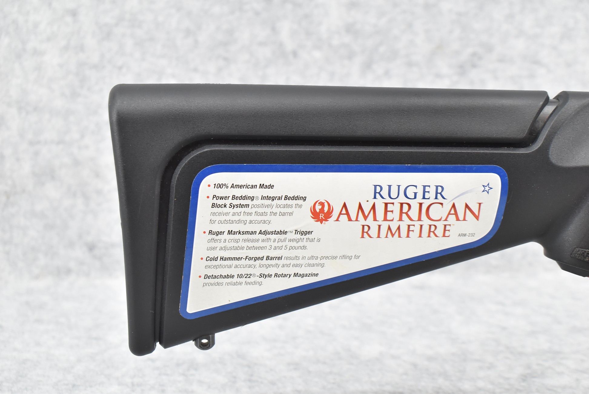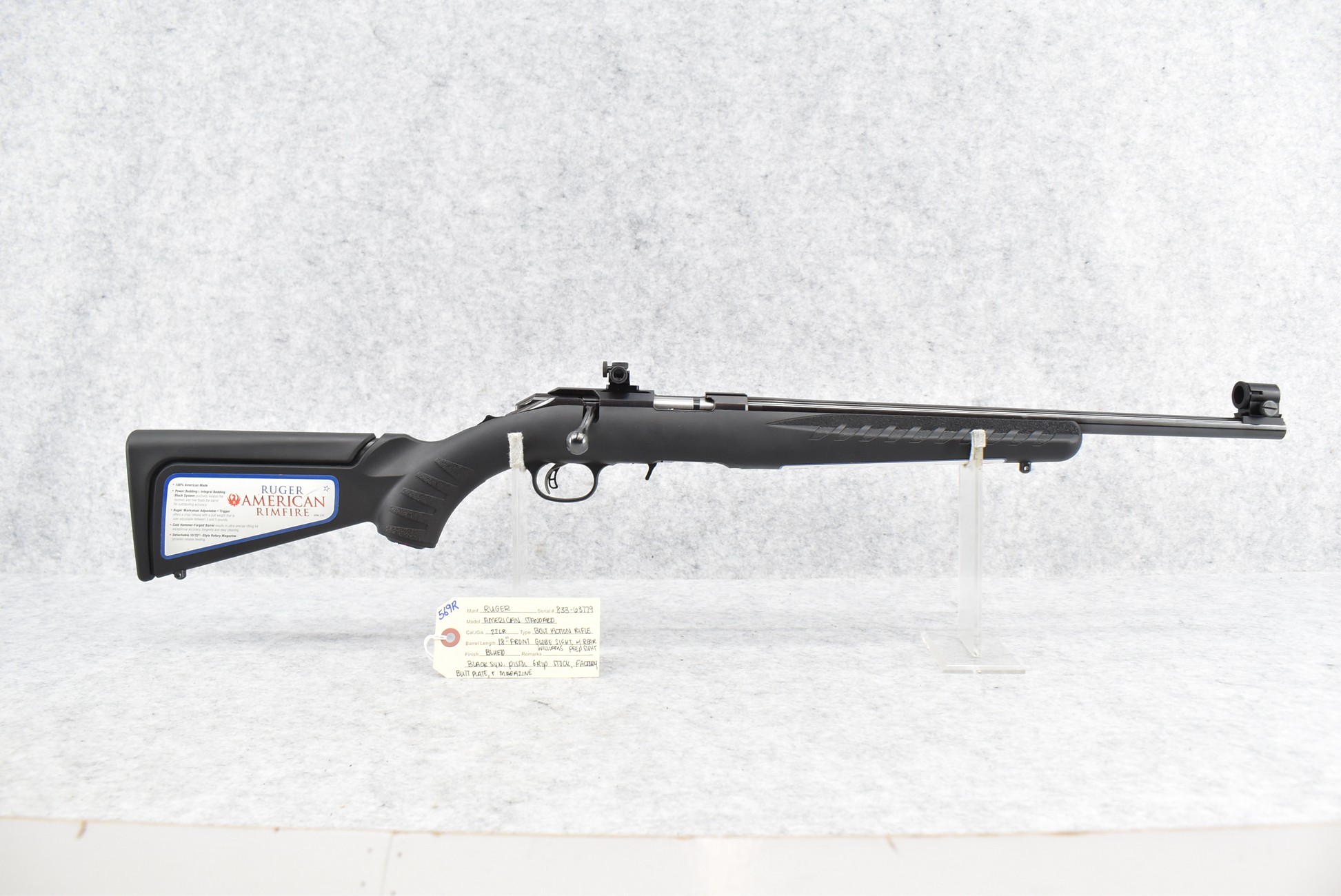 569R. Ruger – Mod. American Standard – 22LR Cal. Bolt Action Rifle – w/18” Barrel w/Front Globe Sight & Rear Receiver Williams Peep Sight – Blued Finish – w/Black Synthetic Pistol Grip Stock w/Factory Butt Plate – w/Factory Magazine