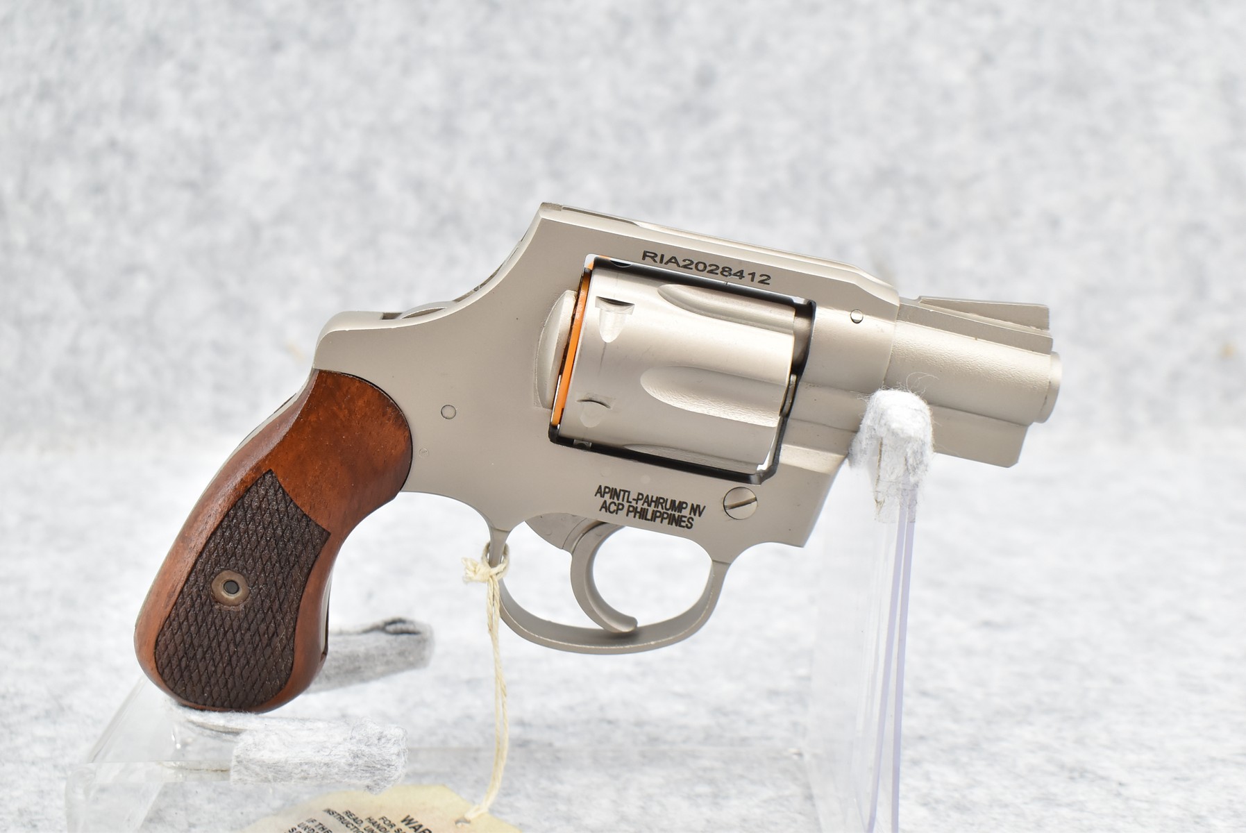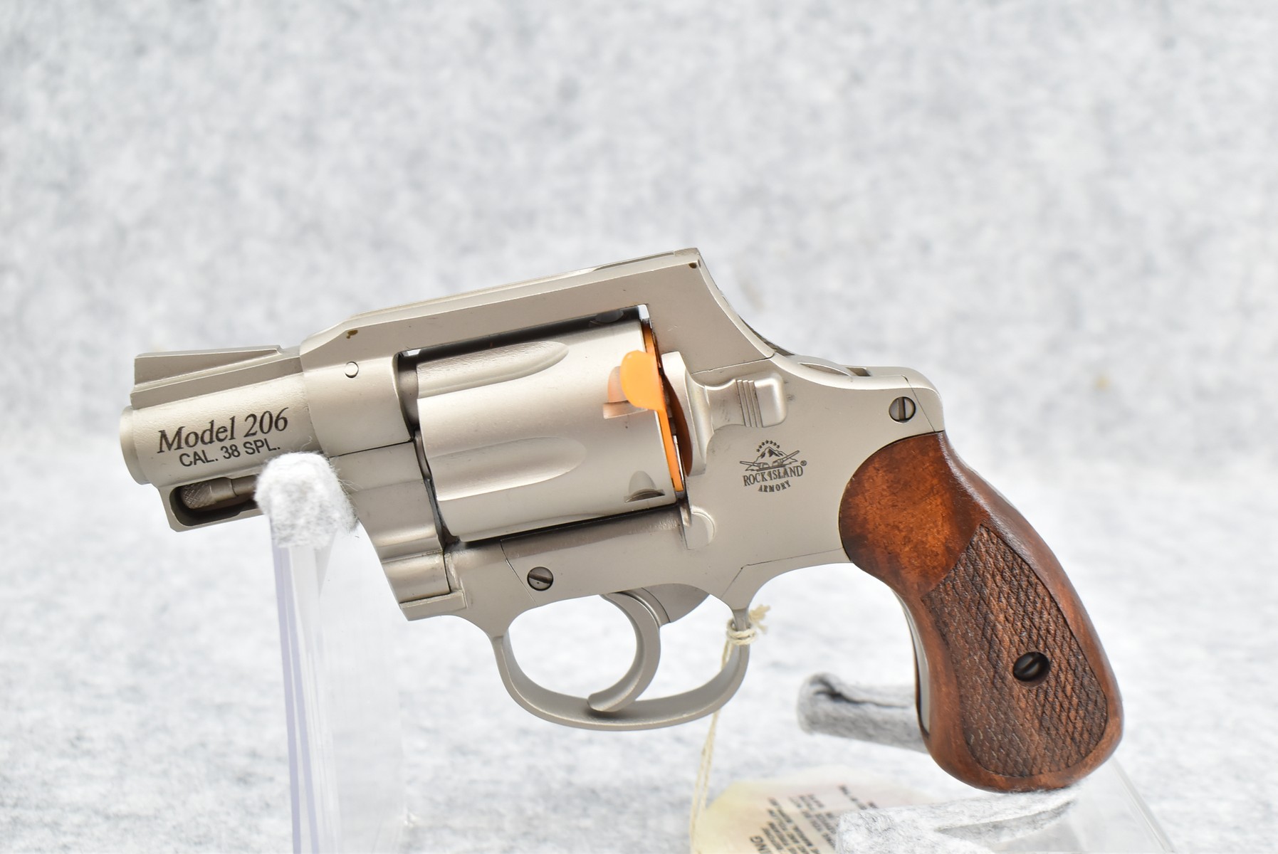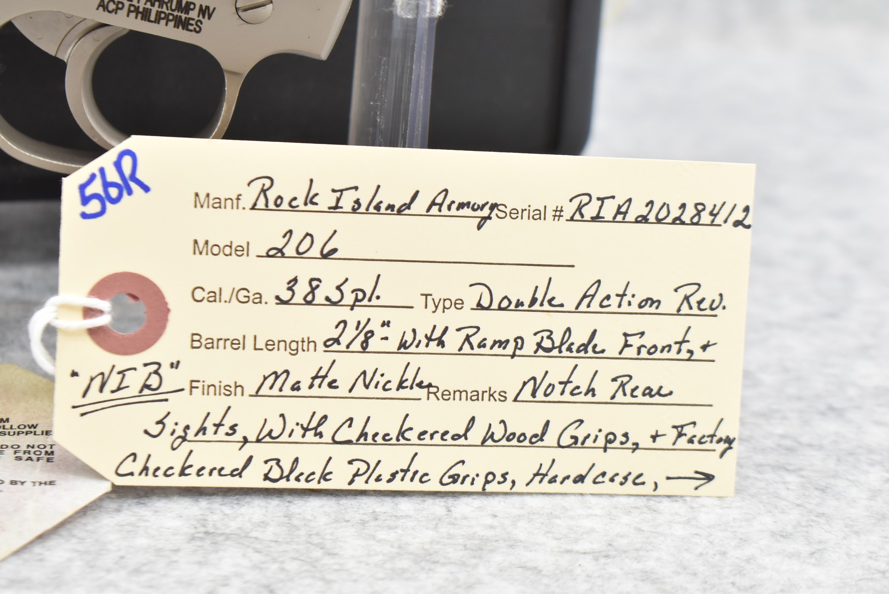 56R. Rock Island Armory – Mod. 206 – 38 Spl. Cal. Double Action Revolver – w/2 1/8” Barrel w/Ramp Blade Front & Notch Rear Sights – Matte Nickel Finish – w/Checkered Wood Grips – New w/Hard Case, Manual & Accessories