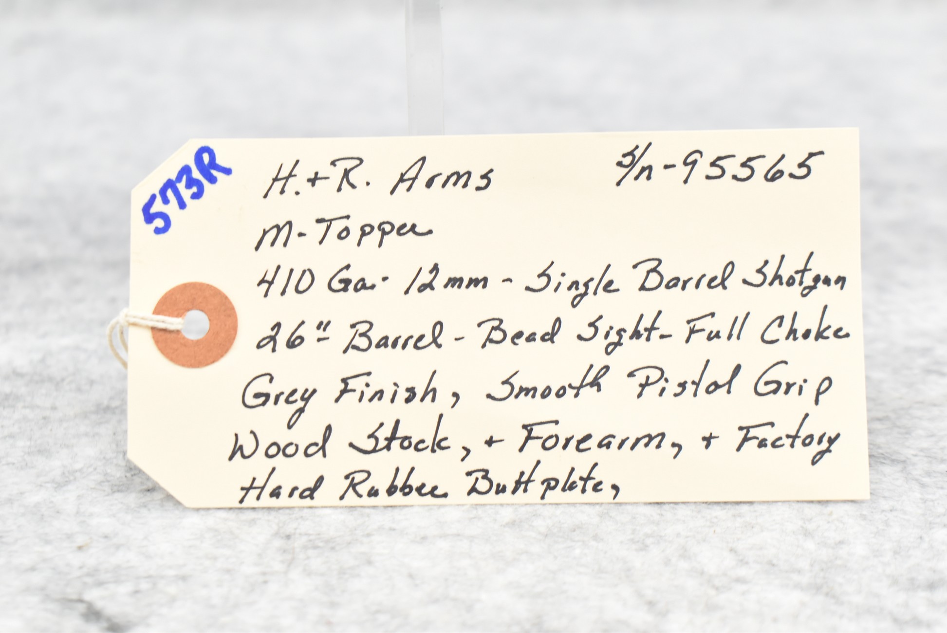 573R. H. & R. Arms – Mod. Topper – 410ga./12mm Single Barrel Shotgun – w/26” Full Choke Barrel w/Bead Sight – Gray Finish – w/Smooth Pistol Grip Wood Stocks w/Factory Hard Rubber Butt Plate