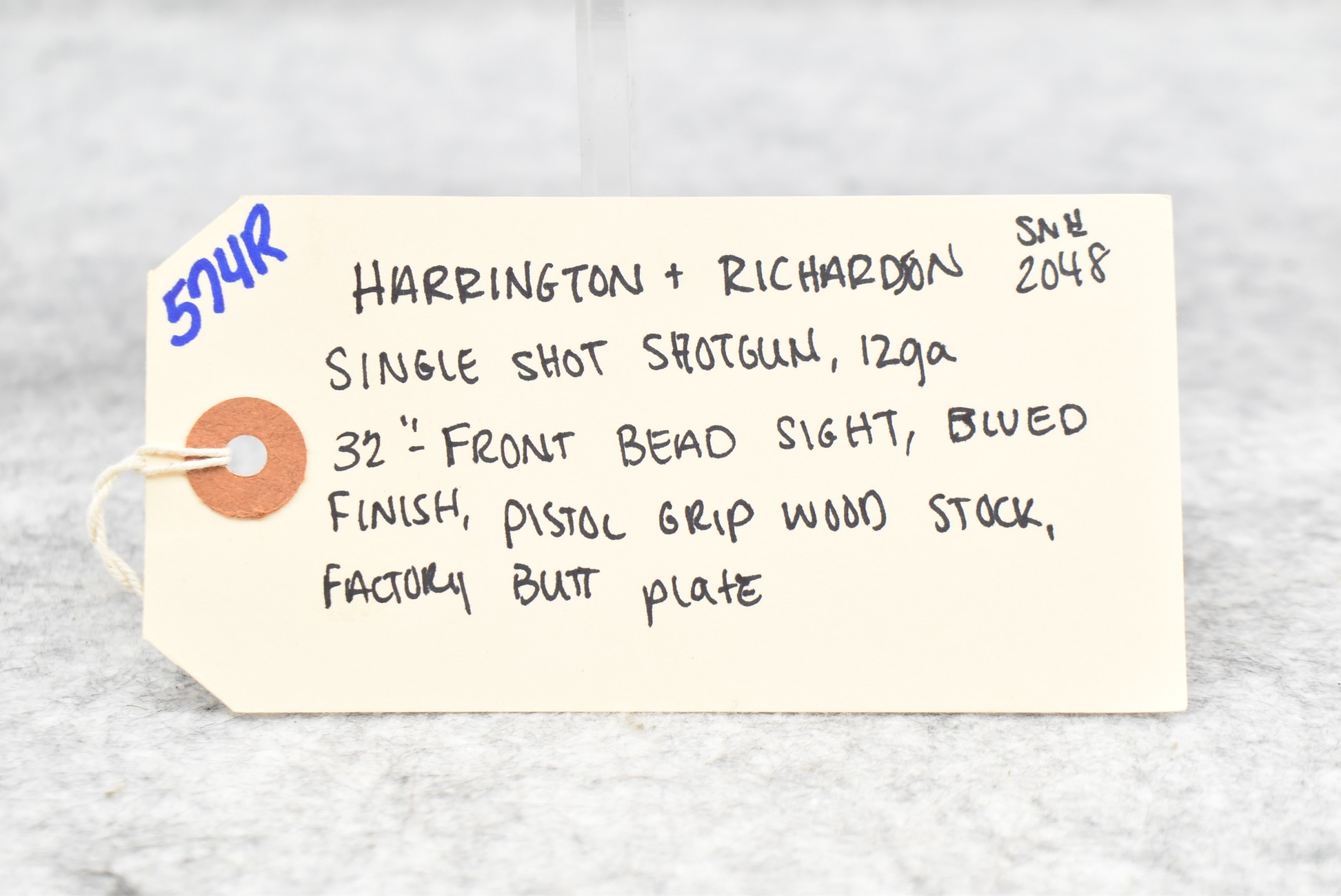 574R. Harrington & Richardson – 12ga. Single Barrel Shotgun – w/32” Barrel w/Front Bead Sight – Blued Finish – w/Pistol Grip Wood Stock w/Factory Butt Plate