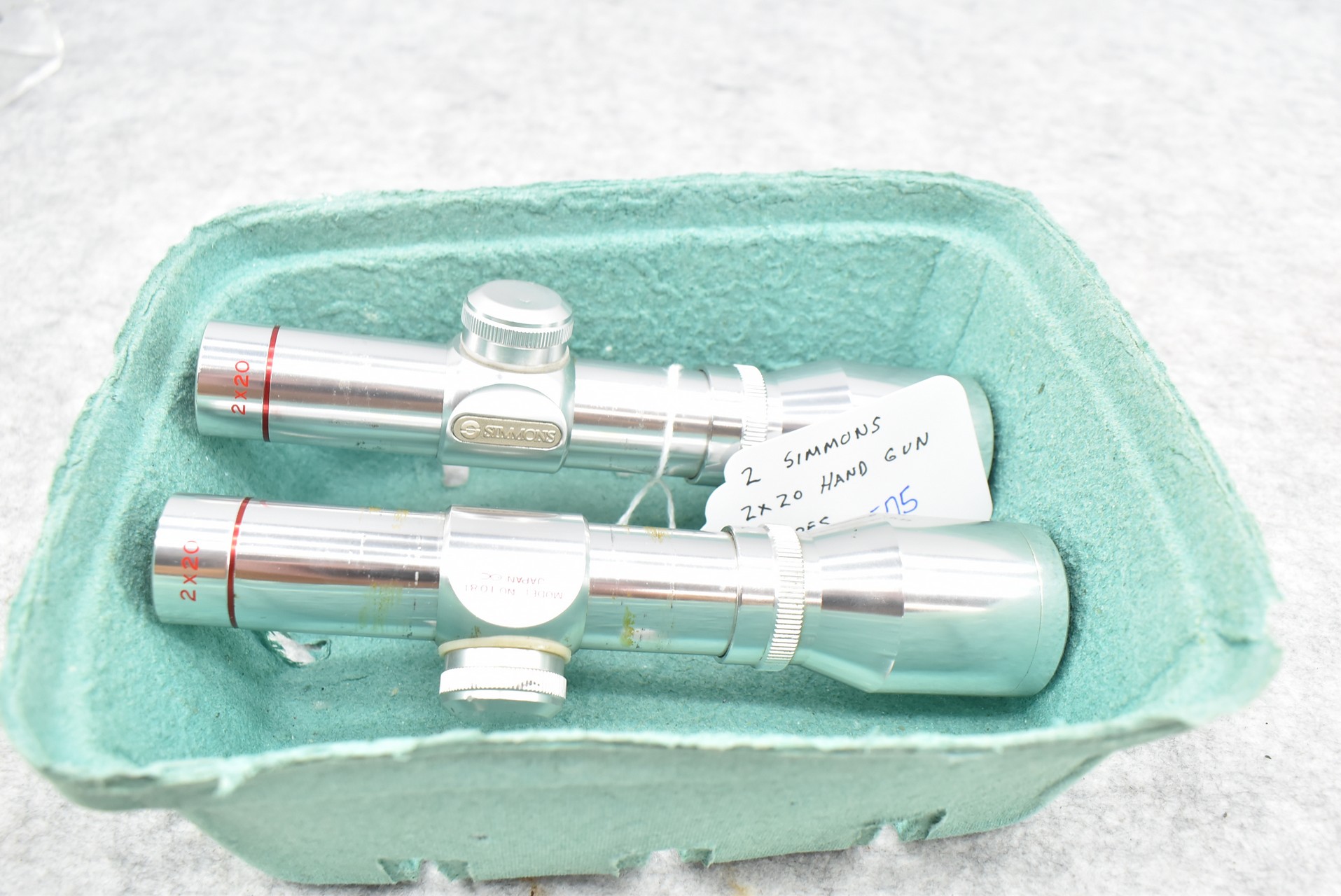 575. Pair of Simmons – 2×20 Hand Gun Stainless Finish Scopes