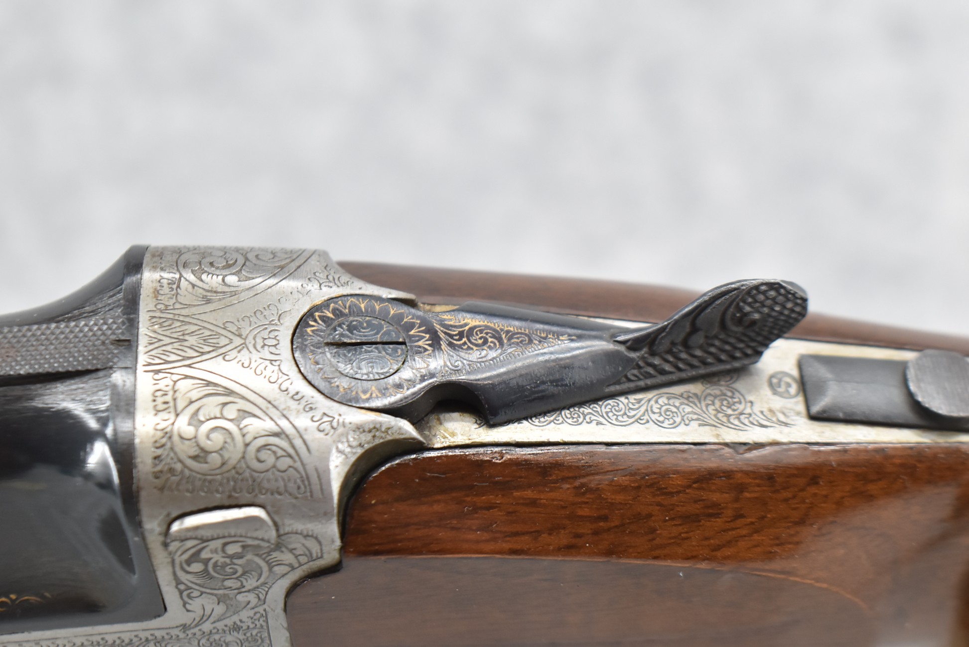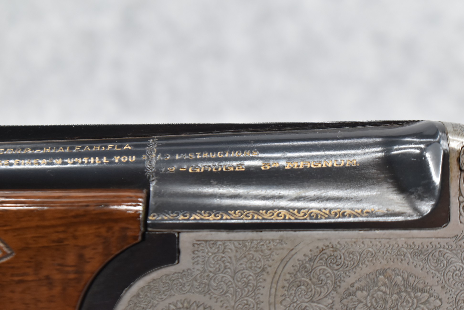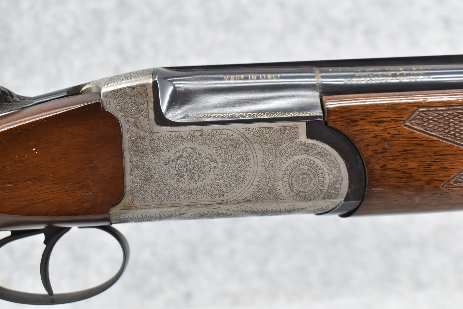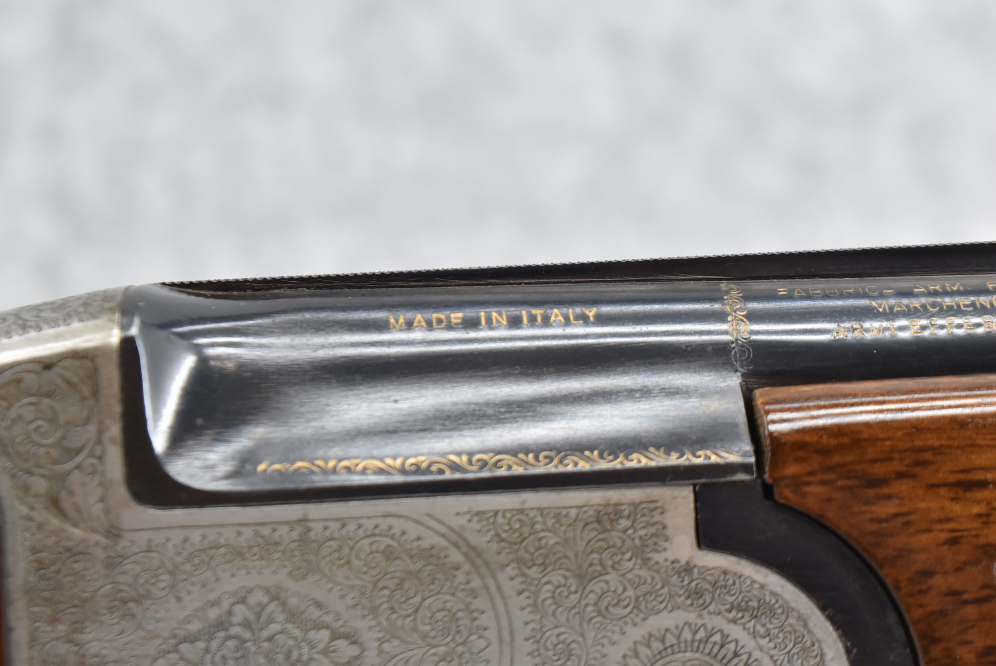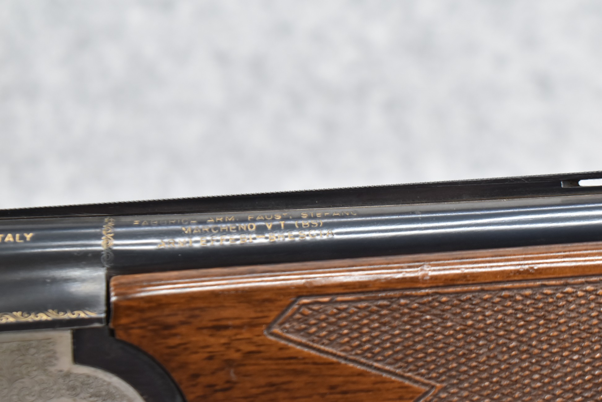 575R. Fabrica Armi-Italy – Mod. Fausti – 12ga. 3” Over-Under Shotgun – w/28” Vent-Rib Blued Finish Barrels w/Bead Front Sights – w/Engraved Gray Finish Frame – w/Factory Checkered Pistol Grip Wood Stocks w/Factory Butt Plate – w/Double Triggers