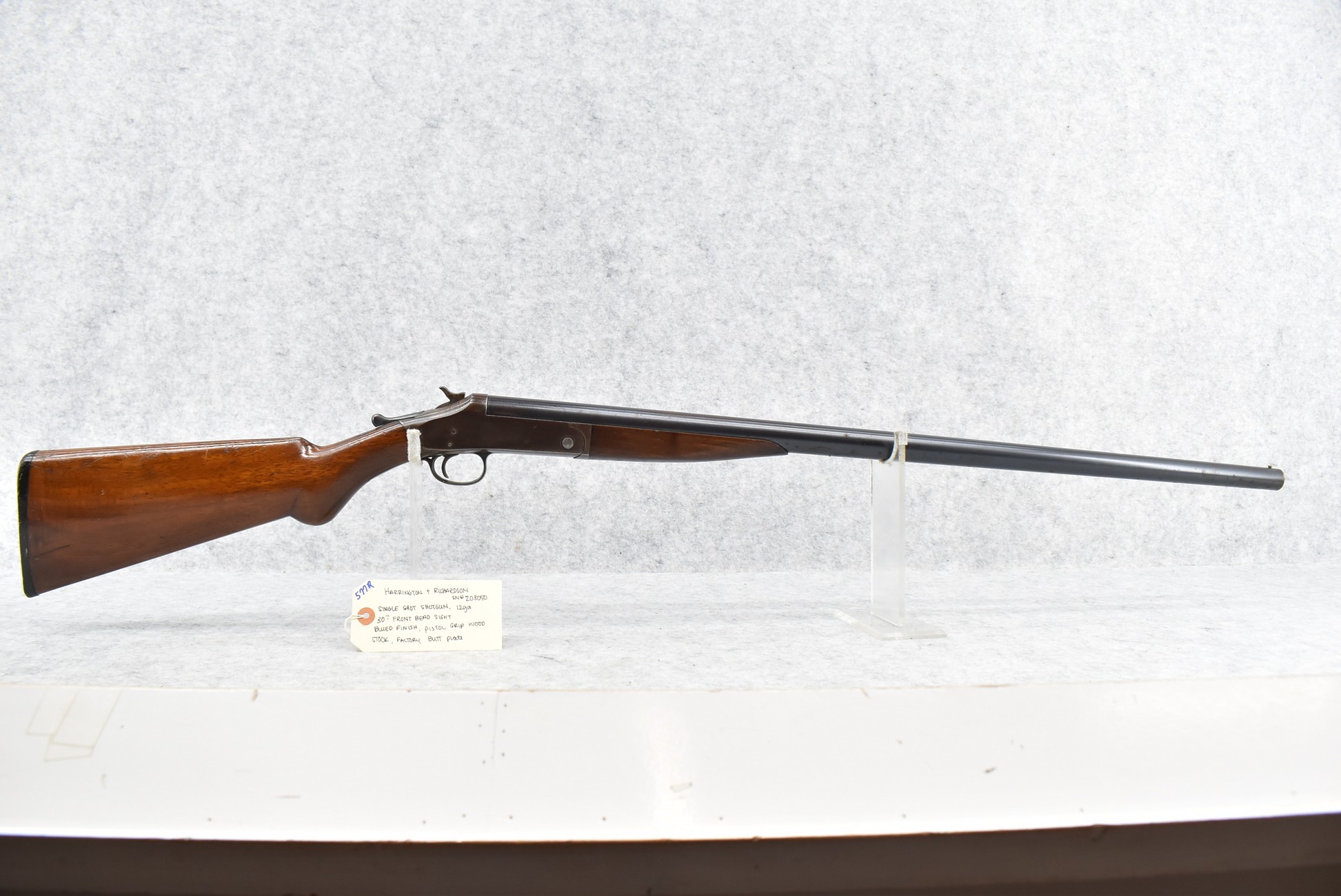 577R. Harrington & Richardson – 12ga. Single Barrel Shotgun – w/30” Barrel w/Front Bead Sight – Blued Finish – w/Pistol Grip Wood Stock w/Factory Butt Plate