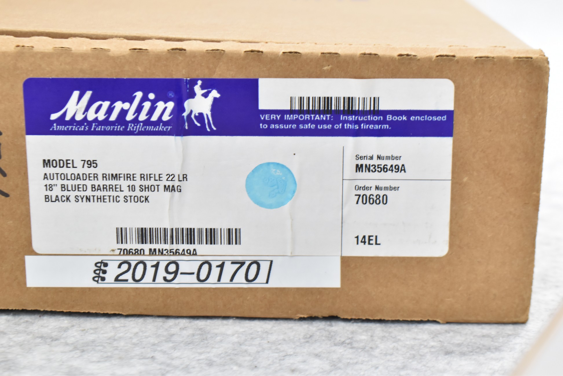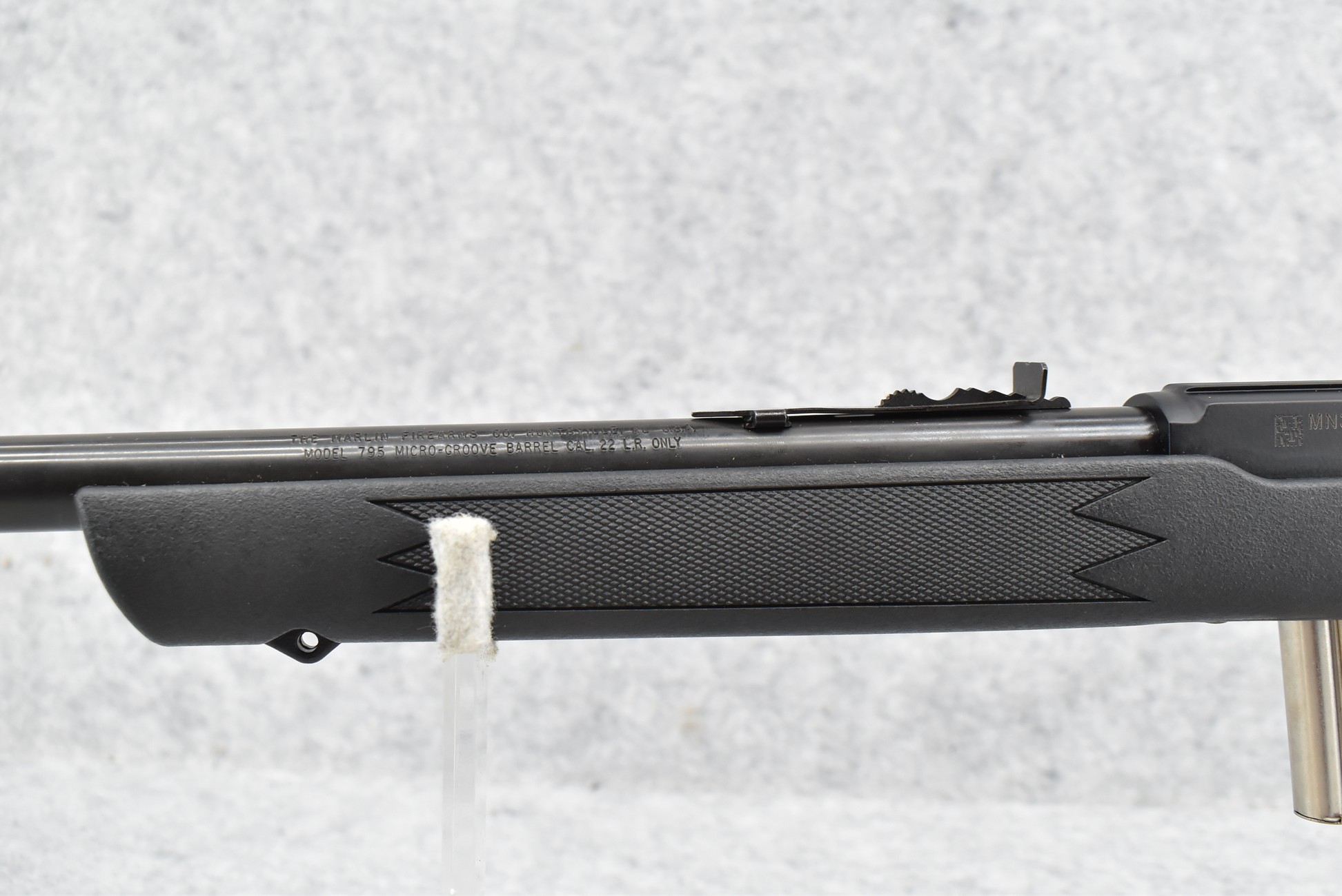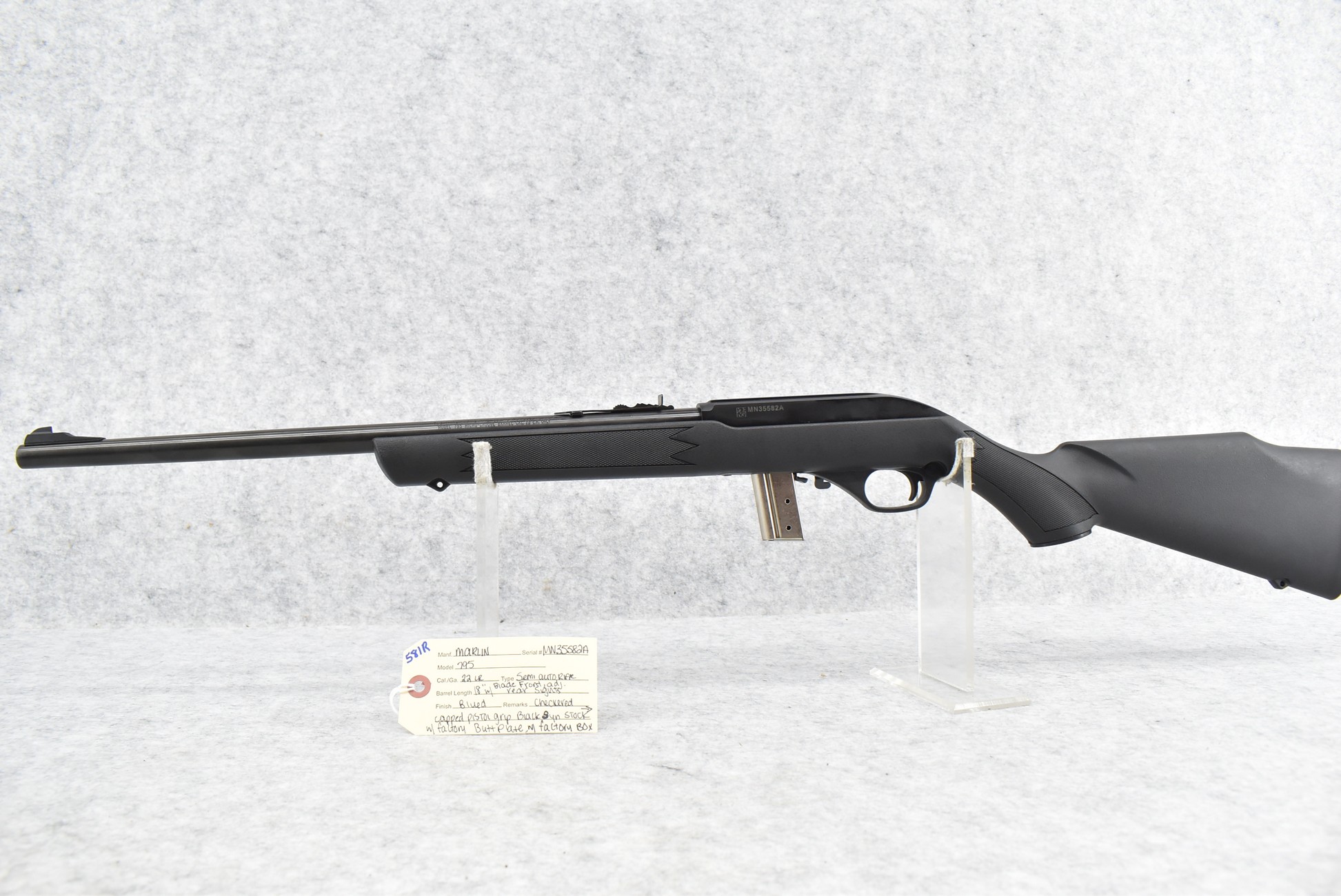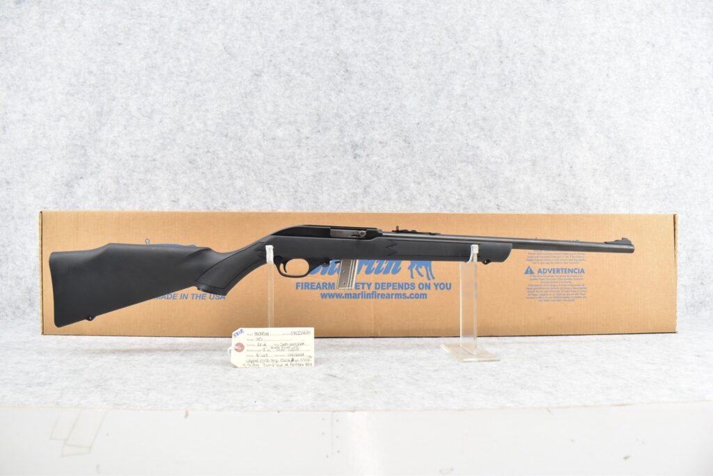 581R. Marlin – Mod. 795 – 22RL Cal. Semi-Auto Rifle – w/18” Barrel w/Blade Front & Adj. Rear Sights – Blued Finish – w/Checkered Capped Pistol Grip Black Synthetic Stock w/Factory Butt Plate – w/Factory Box, Manual & Detachable Magazine