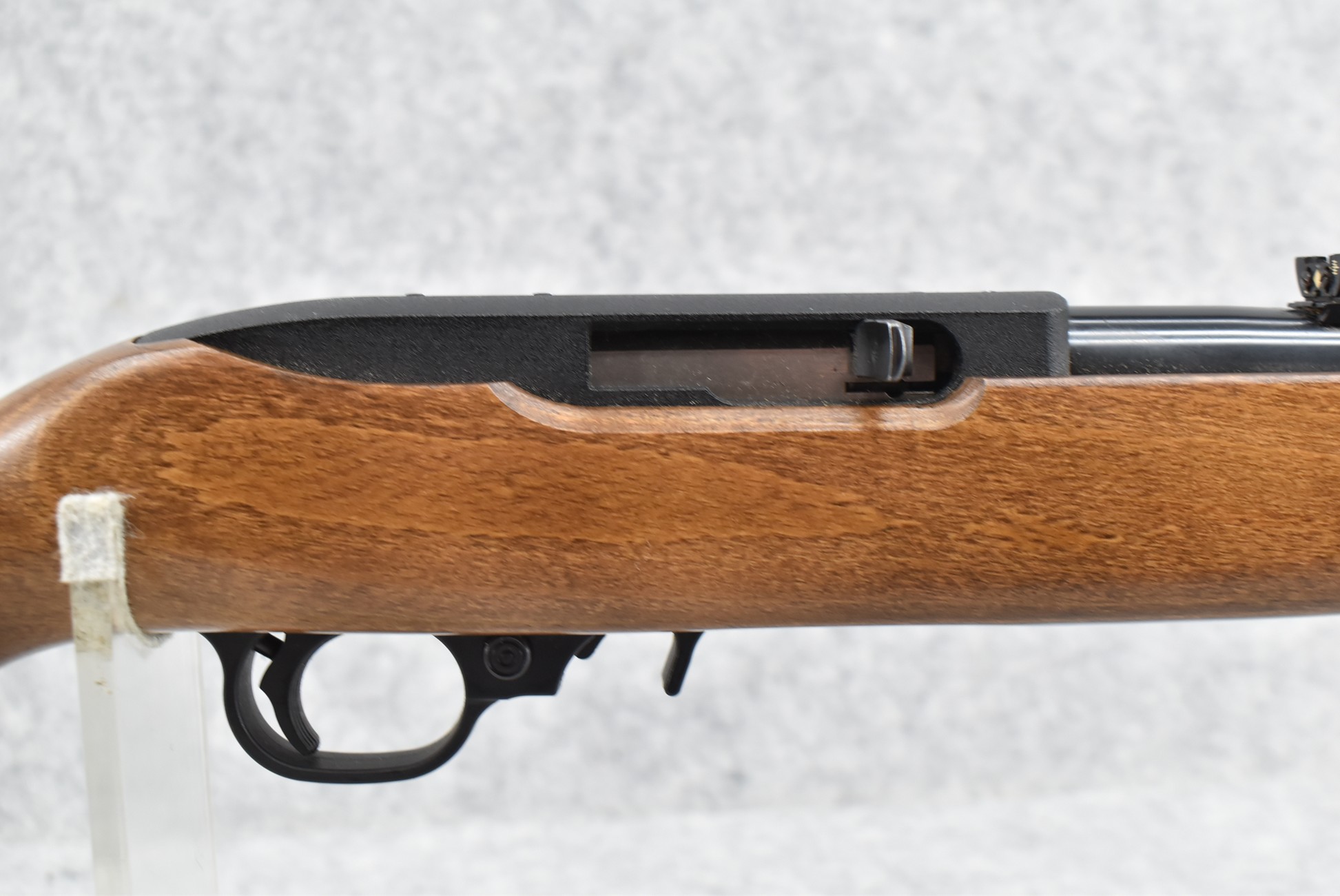 587R. Ruger – Mod. 10/22 – 22LR Cal. Semi-Auto Rifle – w/16.5” Barrel w/Rear Folding Sight w/Threaded Muzzle w/Cap – Blued Finish – w/Full Smooth Pistol Grip Wood Stock w/Factory Butt Plate – w/Magazine