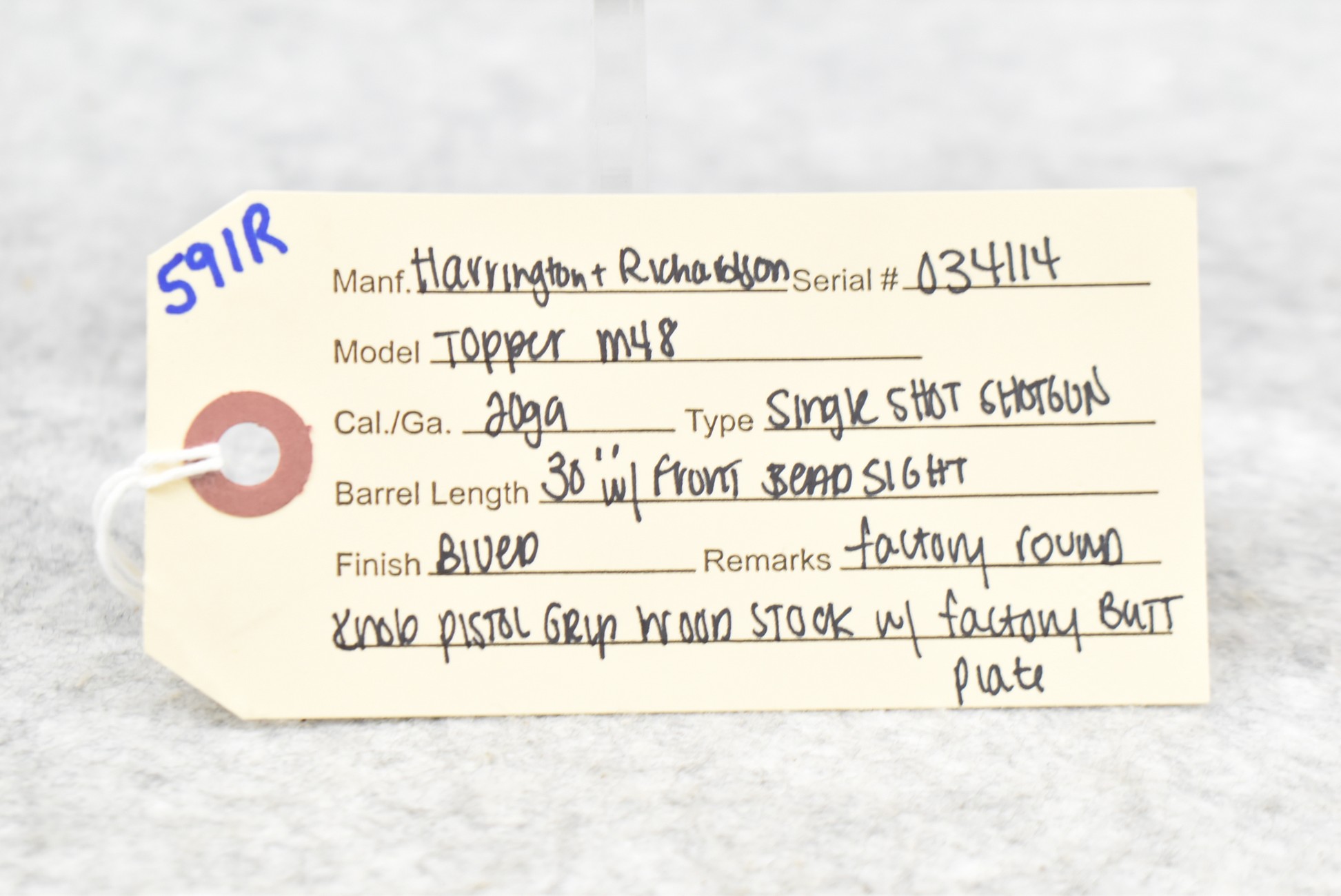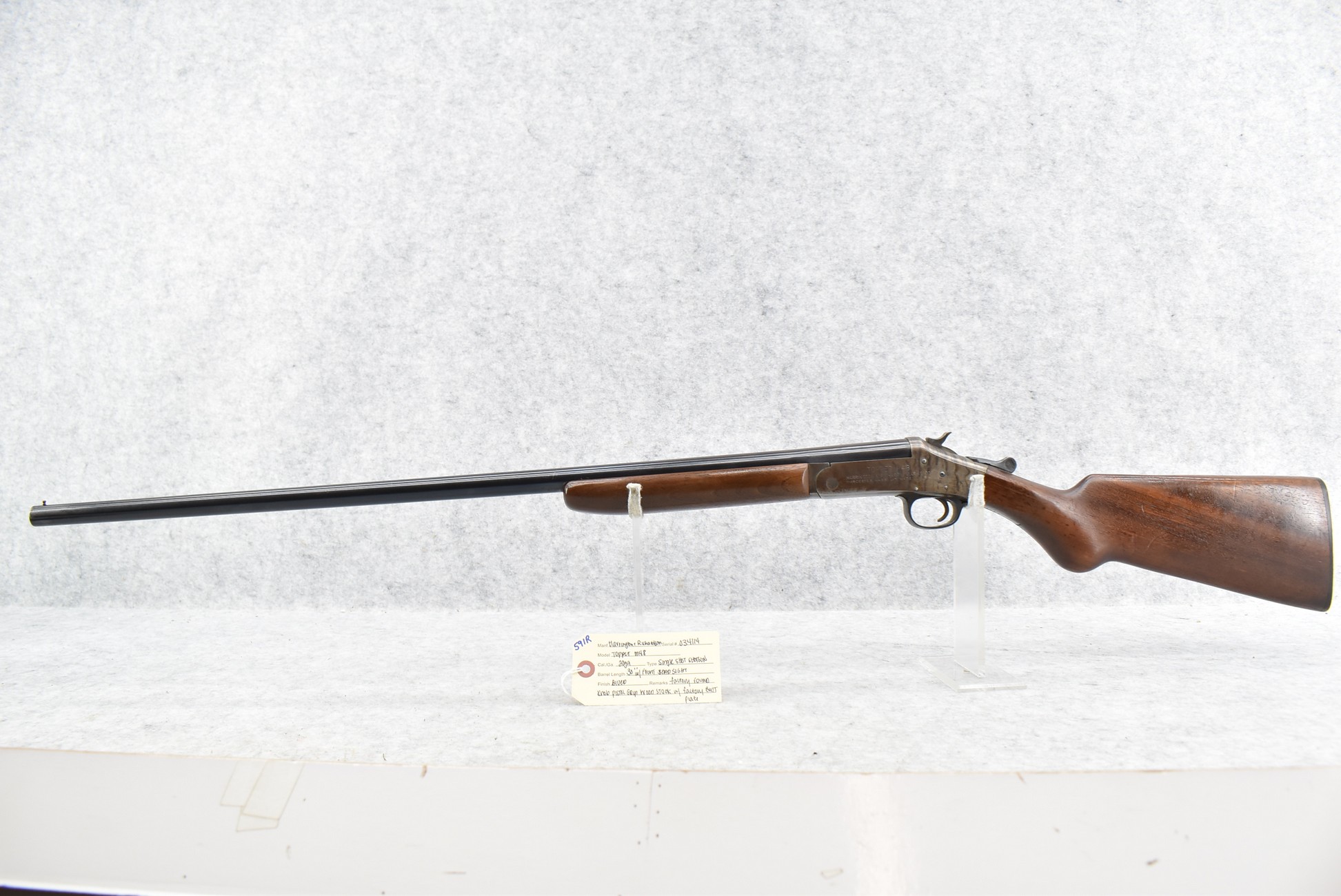 591R. Harrington and Richardson – Mod. Topper M48 – 20ga. Single Shot Shotgun – w/30” Barrel w/Front Bead Sight – Blued Finish – w/Factory Round Knob Pistol Grip Wood Stock w/Factory Butt Plate