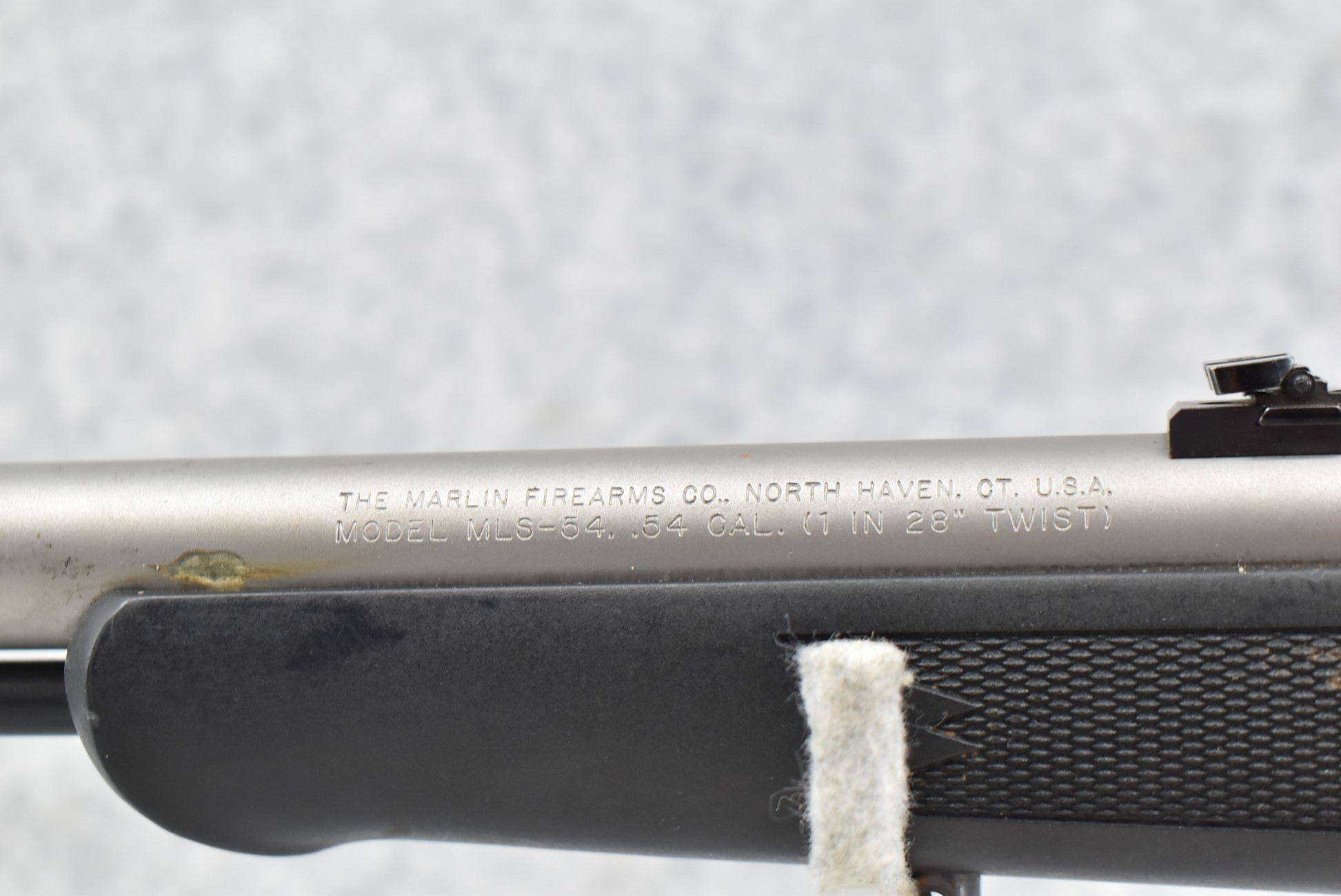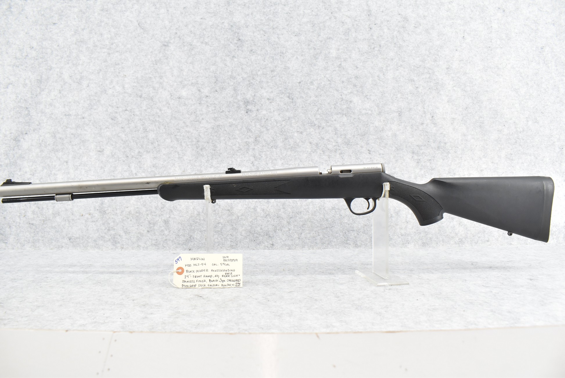 597. Marlin – Mod. MLS-54 – 54 Cal. Black Powder Muzzleloading Rifle – w/24” Barrel w/Front Ramp & Adj. Rear Rifle Sights – Stainless Finish – w/Black Synthetic Checkered Pistol Grip Stock w/Factory Butt Pad – w/Ram Rod