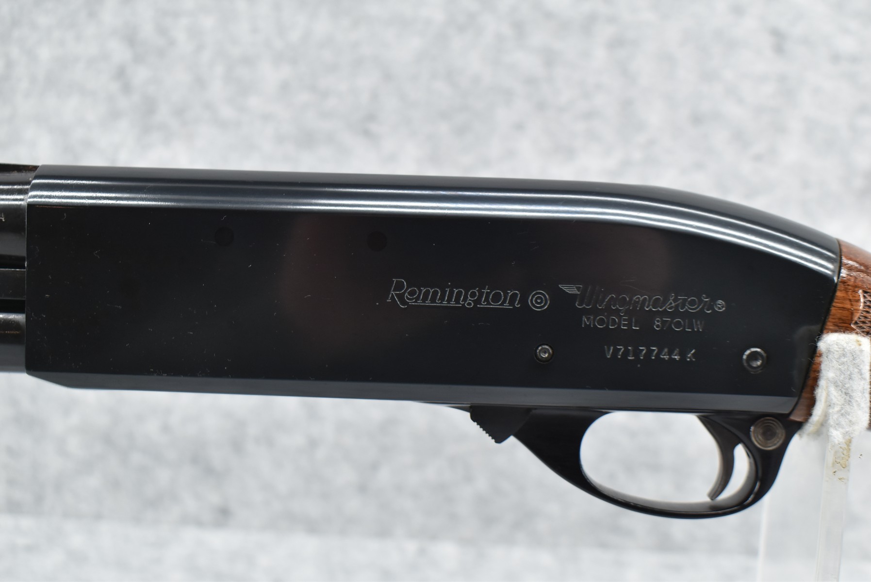 59R. Remington – Mod. 870 LW Wingmaster – 20ga. Pump Action Shotgun – w/23” Imp. Cyl. Choke, Vent-Rib Barrel w/Bead Sight – Blued Finish – w/Deluxe Checkered Capped Pistol Grip Wood Stocks w/Factory Butt Pad – Mfg. Between 1972-83 – LOP 12 ½” to End of Butt Pad, Youth Model Butt Stock
