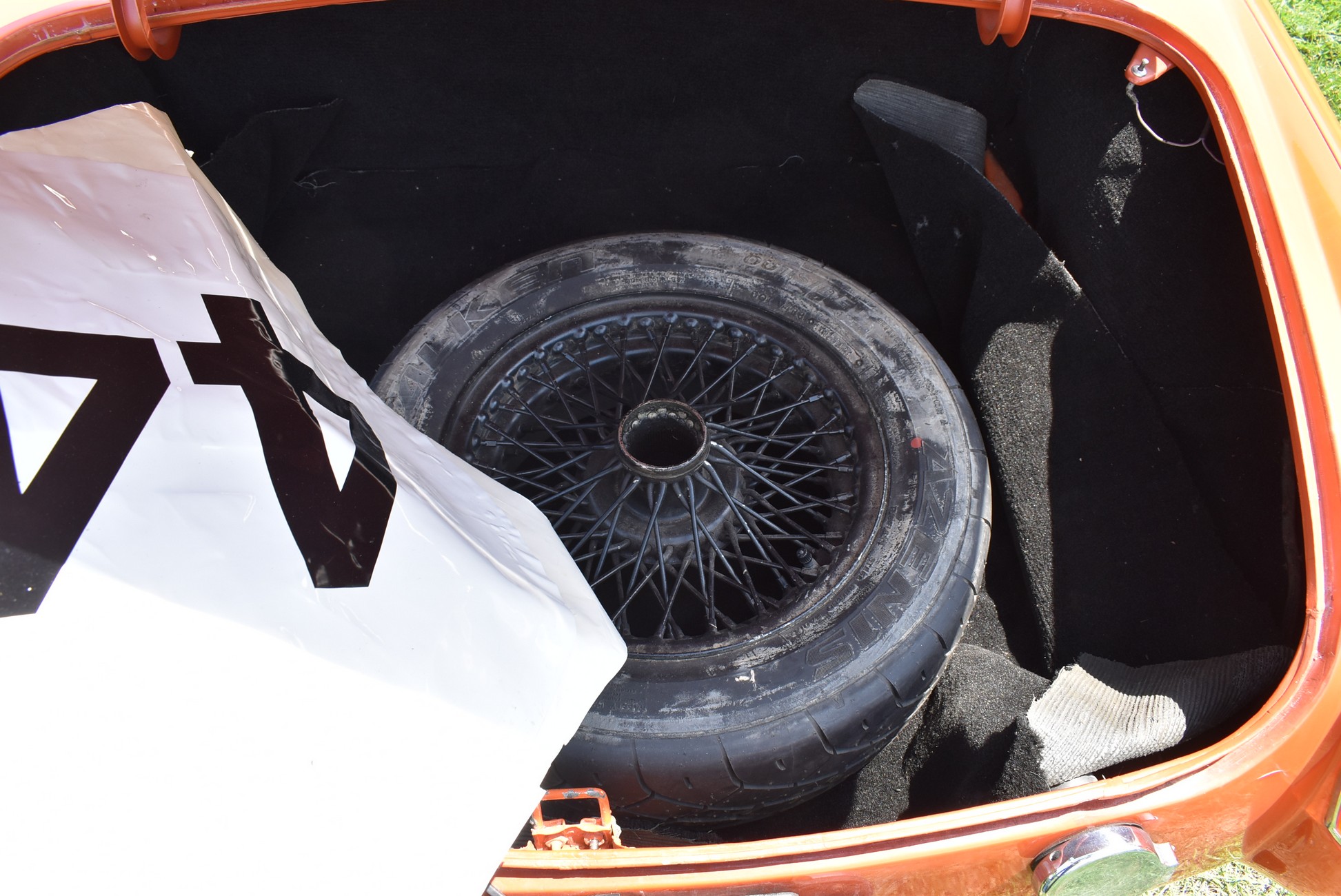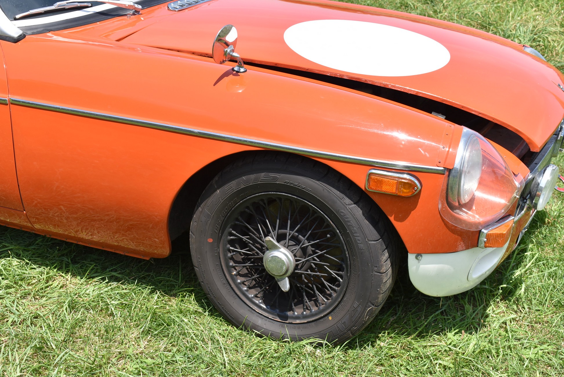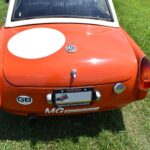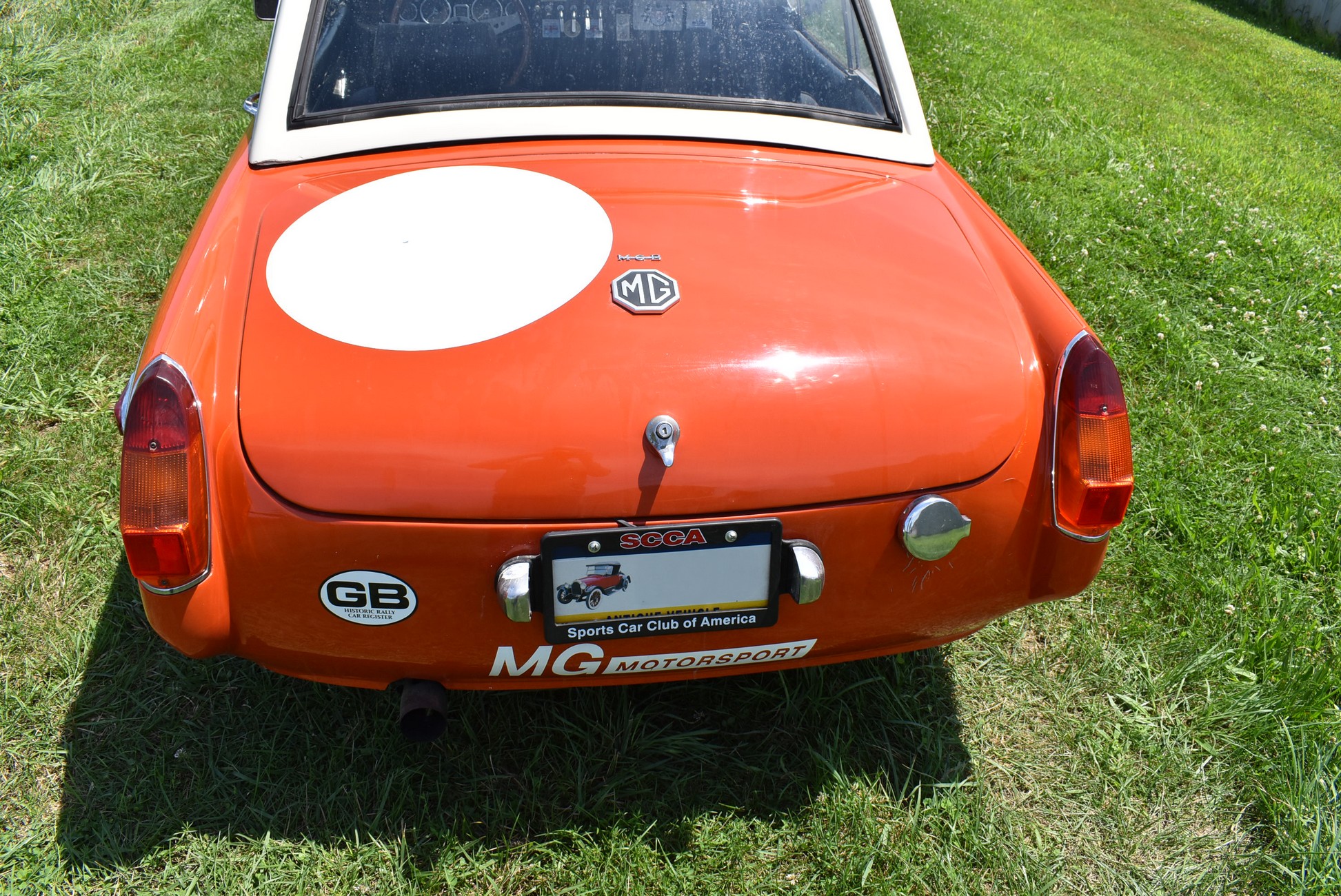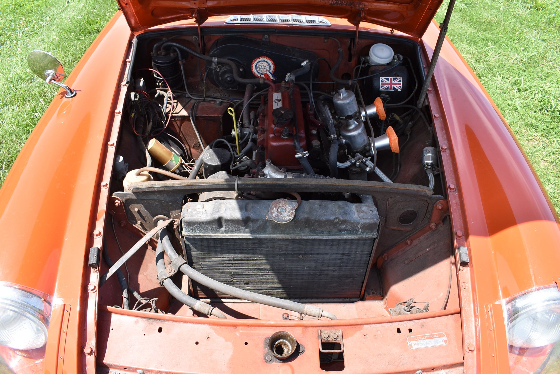 6. 1971 MG MGB Convertible Made to Look like 1965 Sebring MGB “Tribute” – 1.8L 4cyl. Engine – 53,062 Miles Showing on the Odometer – 4spd. Transmission w/Overdrive – Equipped w/Metal Dash, Greens Racing Pads, Covered Head Lights, Single 12v Battery, PECO Manifold & Exhaust, Original Factory MGB Hardtop & 5 ½” Powder Coated Spokes “Racing Wheels” – Black Interior – Orange/White Exterior – Pace Car for Inaugural Carolina Trophy Rally Race – Vin#: GHN5UB227681G