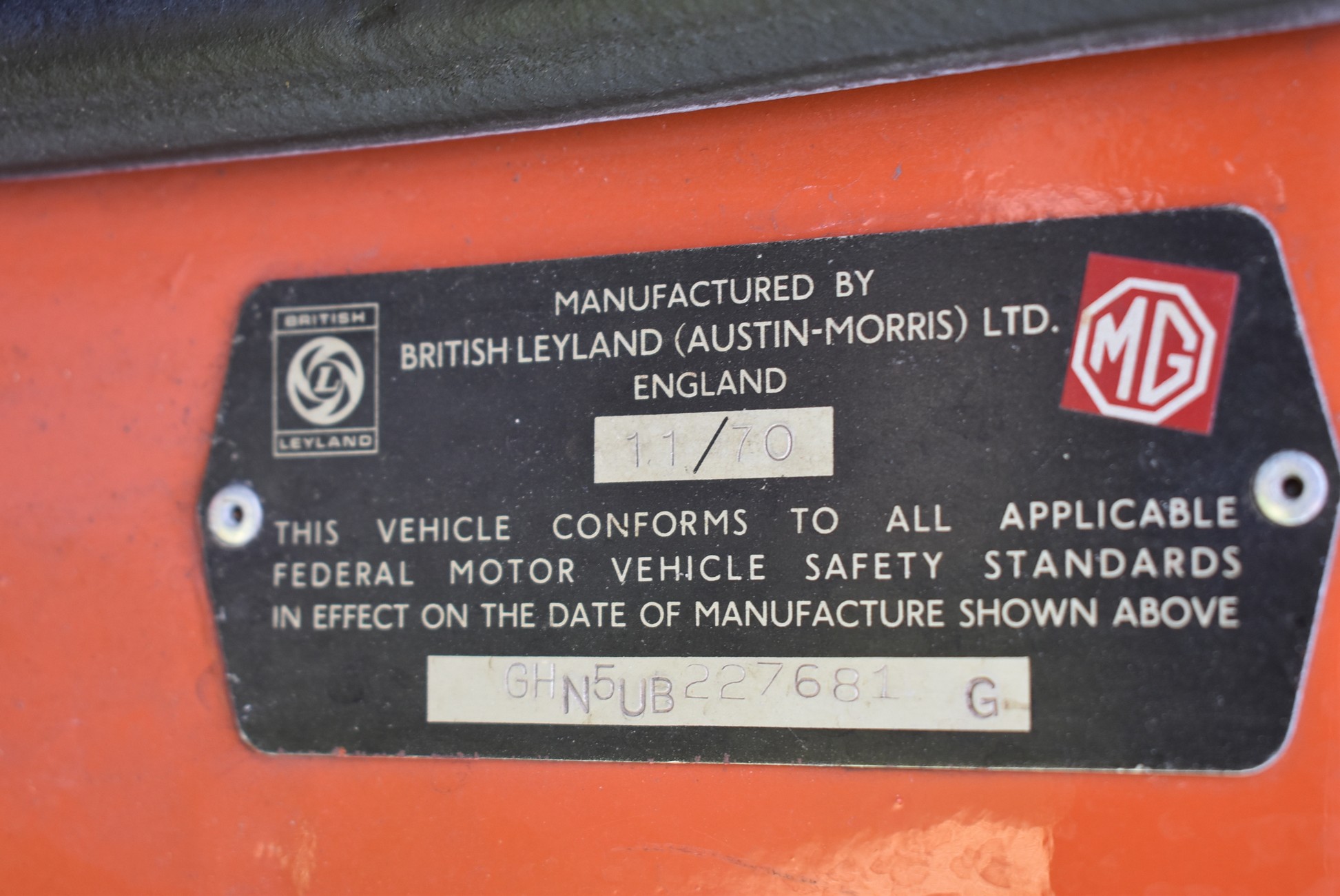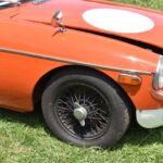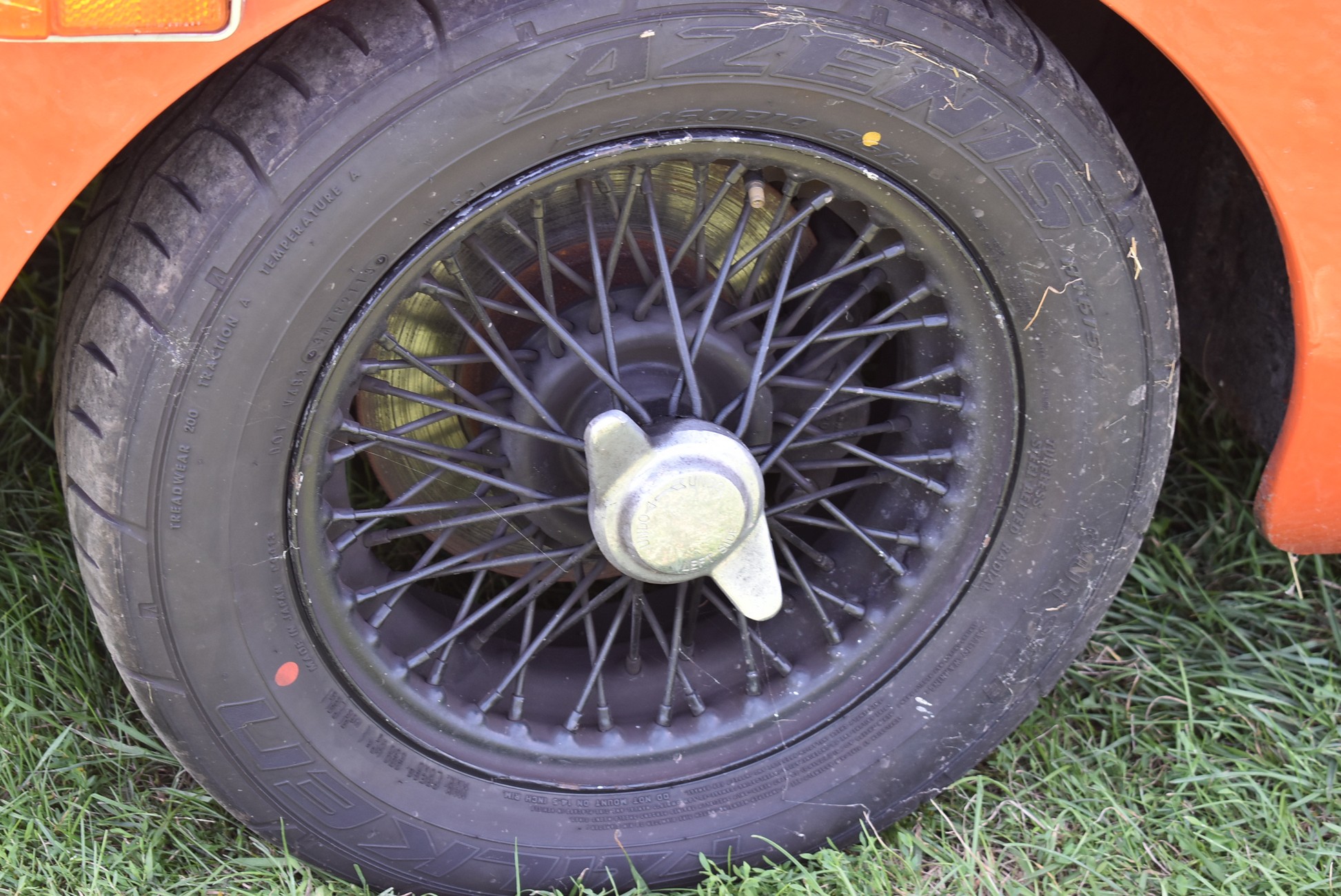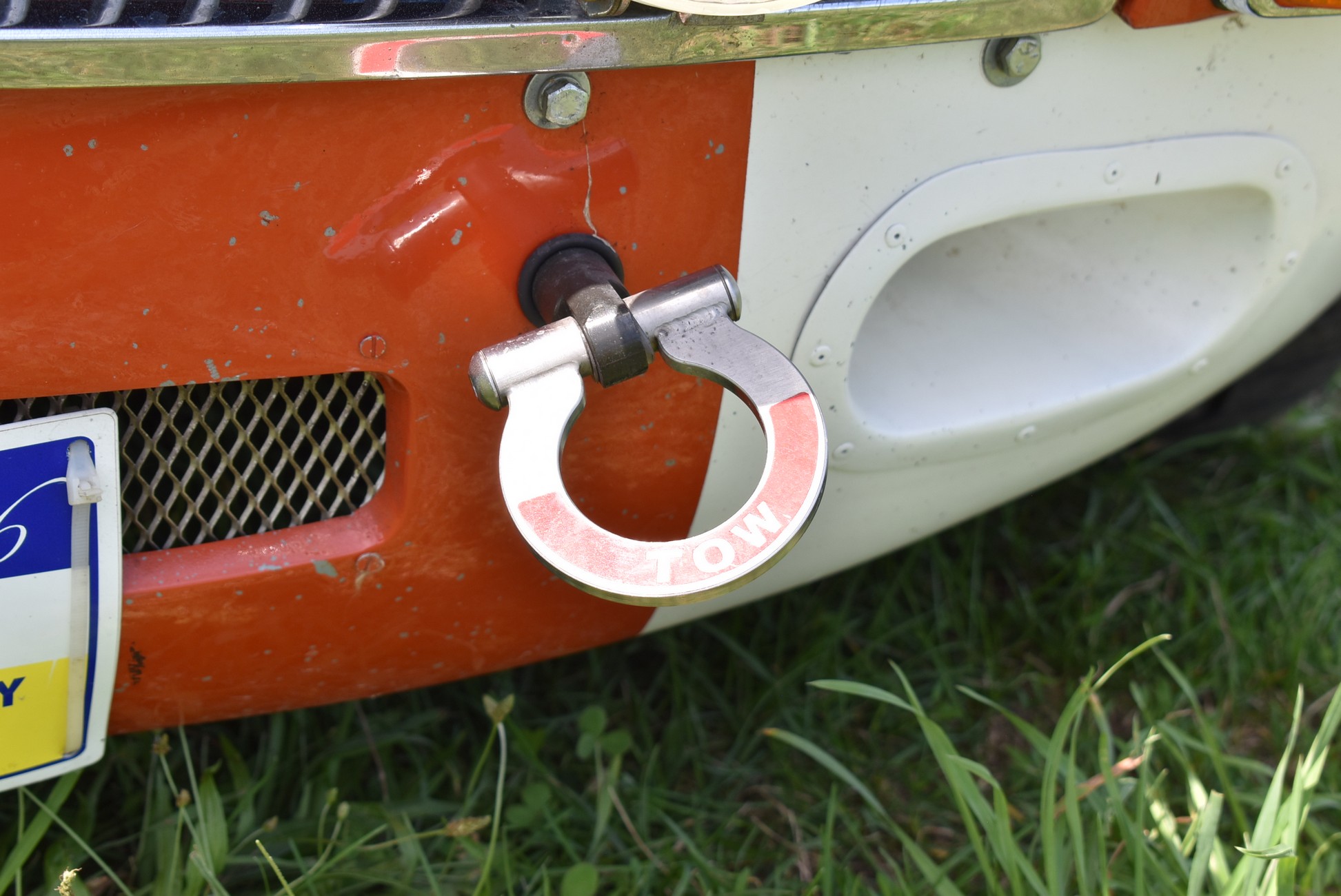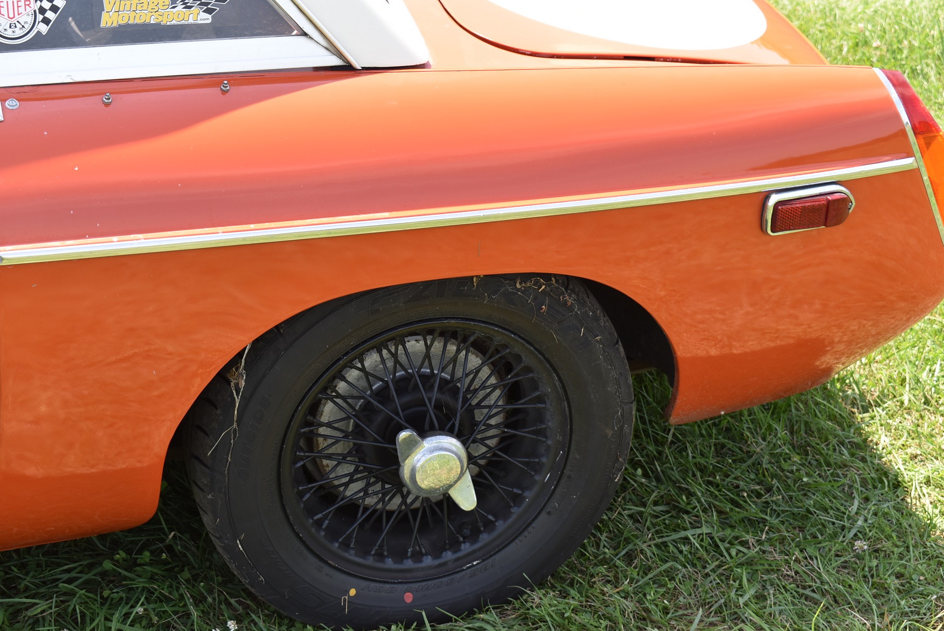 6. 1971 MG MGB Convertible Made to Look like 1965 Sebring MGB “Tribute” – 1.8L 4cyl. Engine – 53,062 Miles Showing on the Odometer – 4spd. Transmission w/Overdrive – Equipped w/Metal Dash, Greens Racing Pads, Covered Head Lights, Single 12v Battery, PECO Manifold & Exhaust, Original Factory MGB Hardtop & 5 ½” Powder Coated Spokes “Racing Wheels” – Black Interior – Orange/White Exterior – Pace Car for Inaugural Carolina Trophy Rally Race – Vin#: GHN5UB227681G