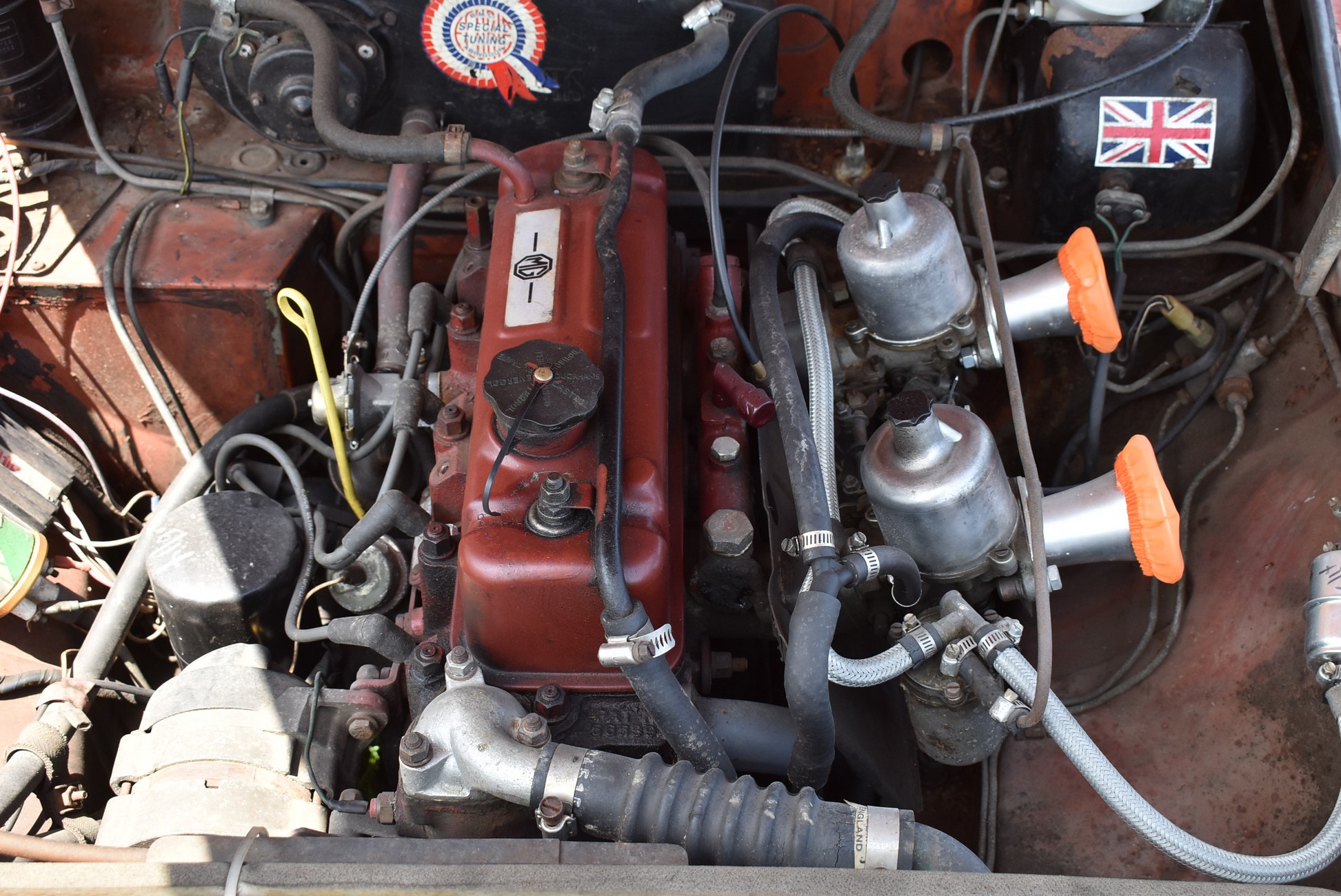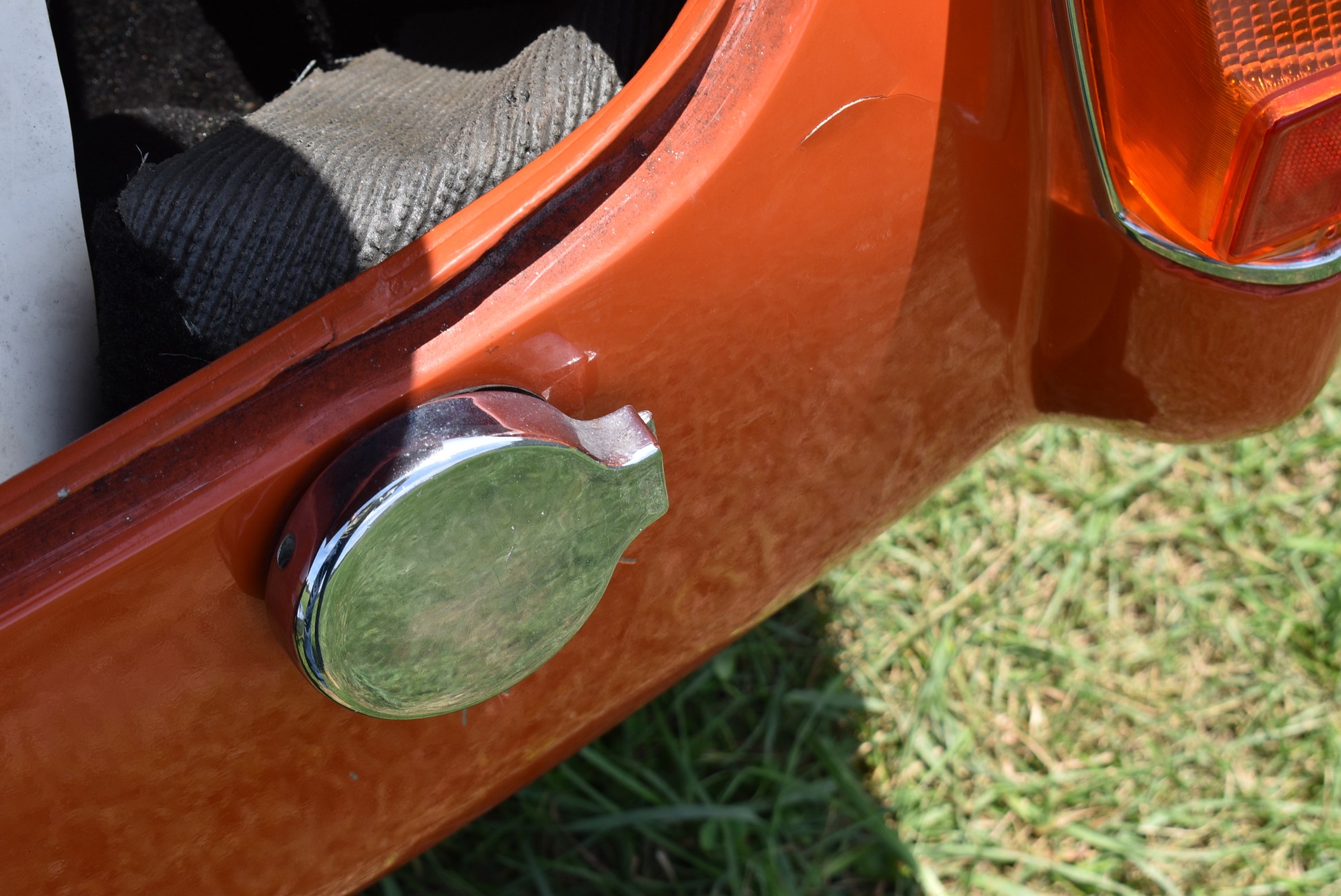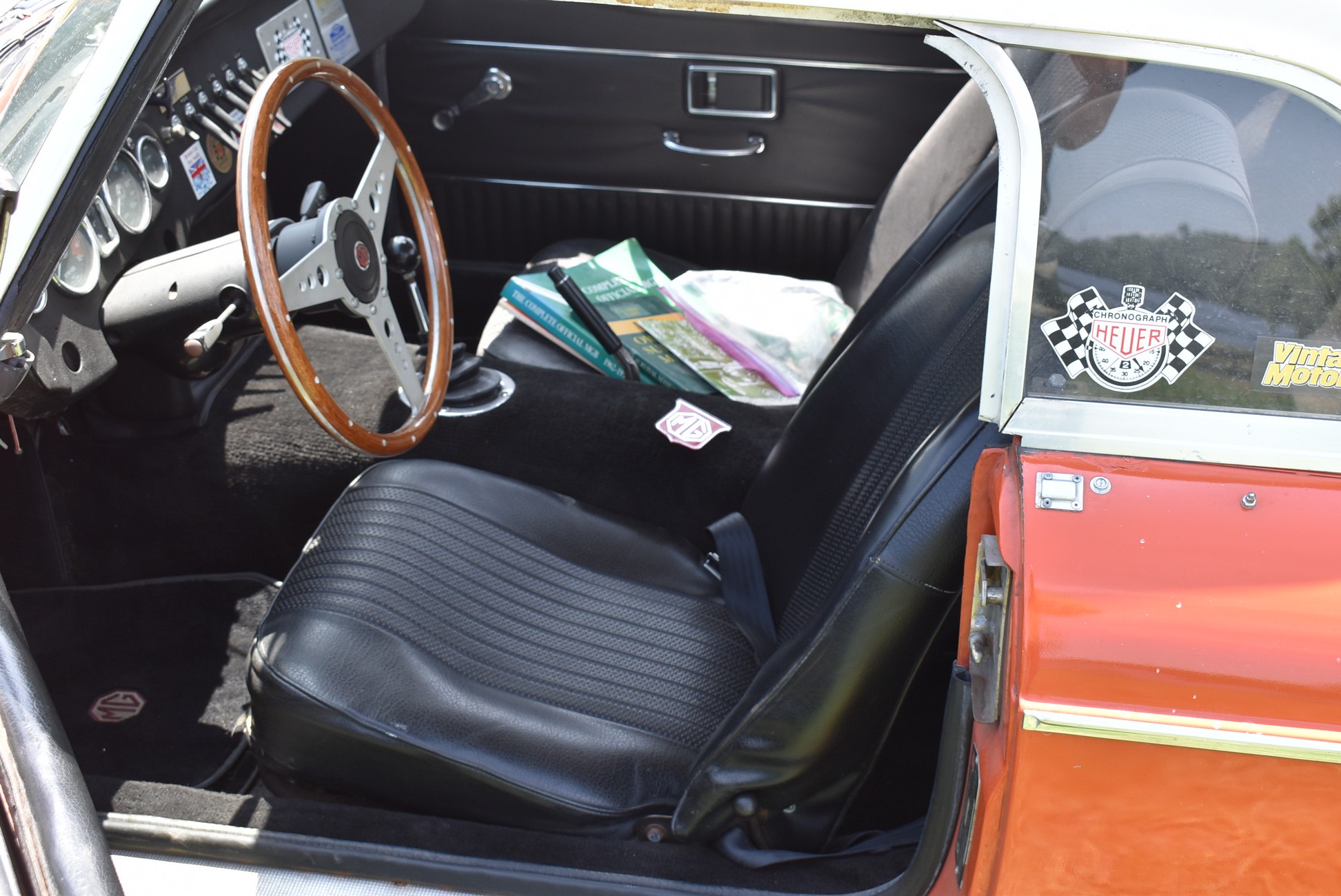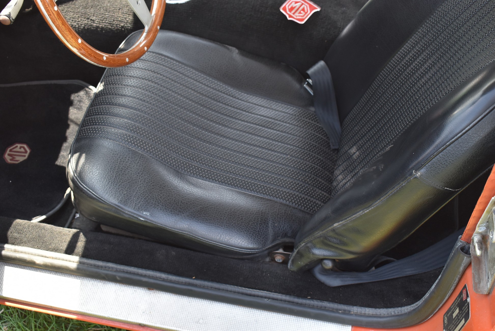 6. 1971 MG MGB Convertible Made to Look like 1965 Sebring MGB “Tribute” – 1.8L 4cyl. Engine – 53,062 Miles Showing on the Odometer – 4spd. Transmission w/Overdrive – Equipped w/Metal Dash, Greens Racing Pads, Covered Head Lights, Single 12v Battery, PECO Manifold & Exhaust, Original Factory MGB Hardtop & 5 ½” Powder Coated Spokes “Racing Wheels” – Black Interior – Orange/White Exterior – Pace Car for Inaugural Carolina Trophy Rally Race – Vin#: GHN5UB227681G