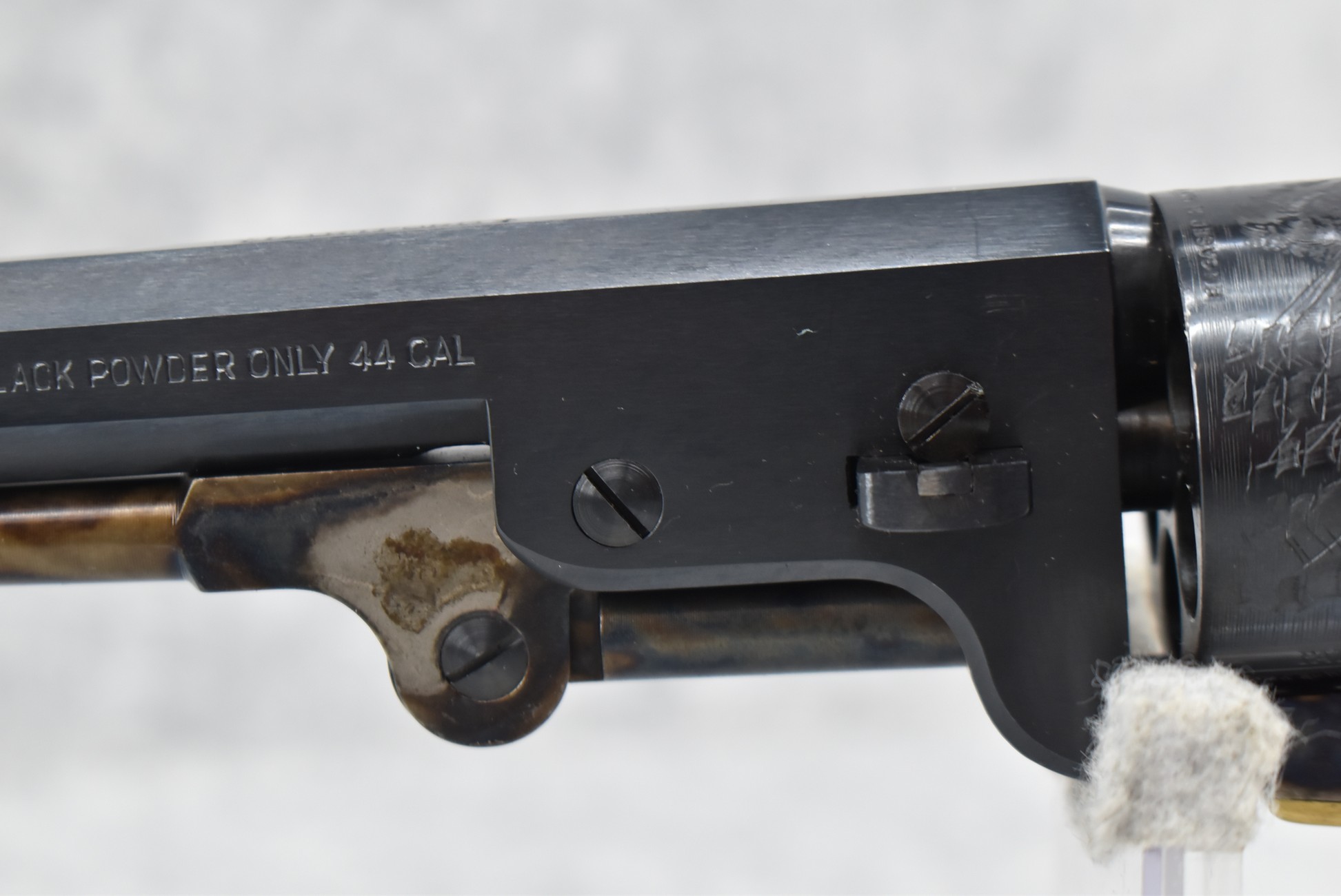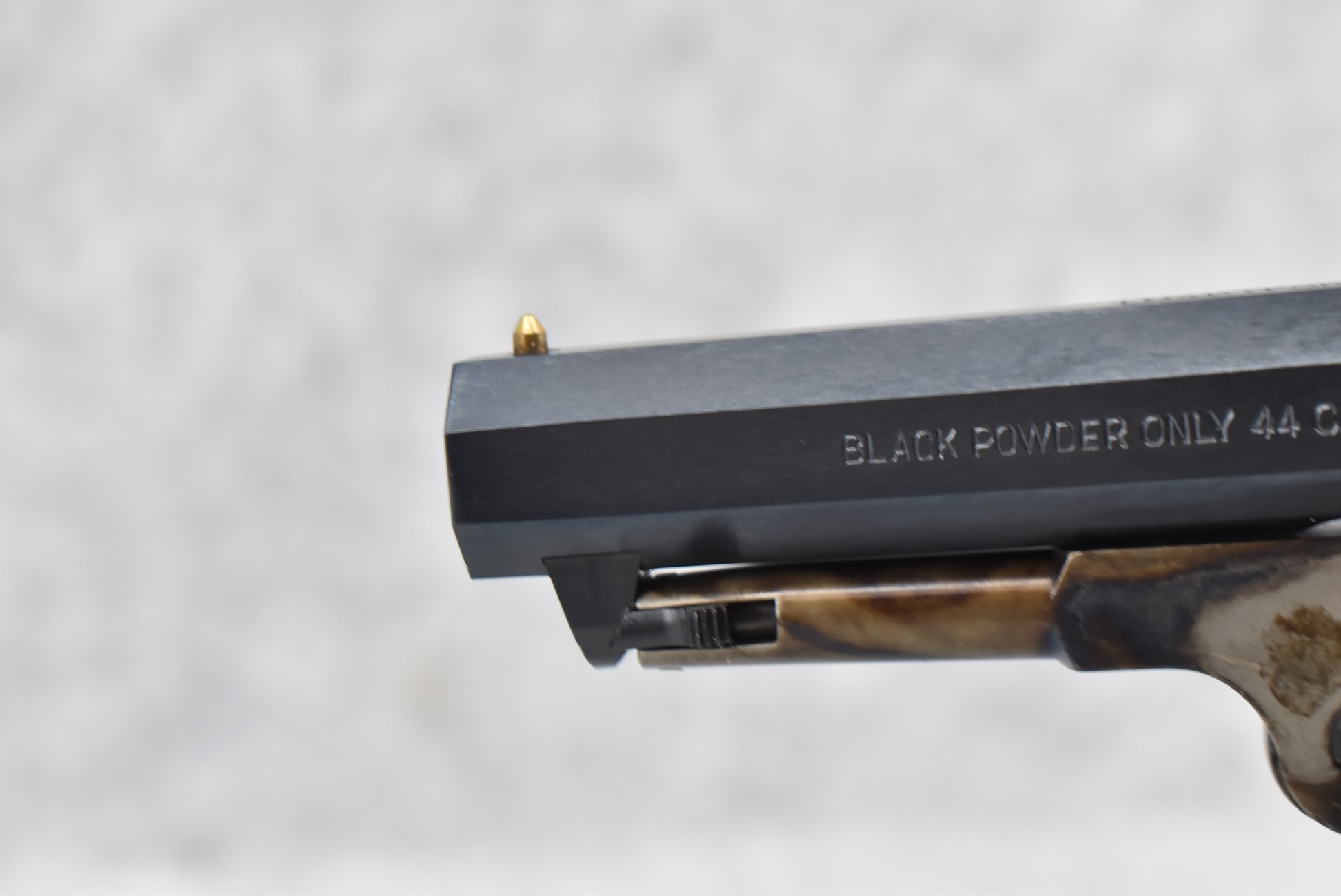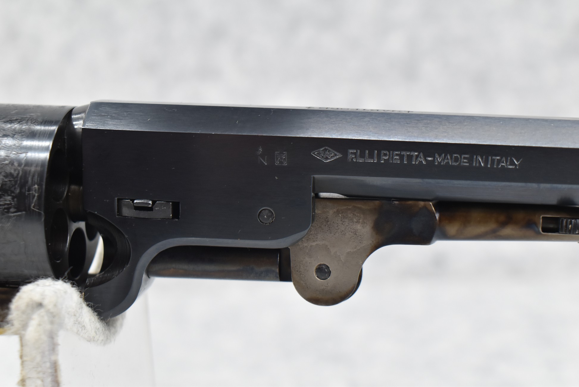 603. Pietta-Italian – Mod. 1851 Sheriff Steel (Hartford Stamped) – 44 Cal. Black Powder Revolver – w/5” Barrel w/Front Bead Sight – Blued/Case Hardened Finish – w/Brass Trigger Guard – w/Factory Wood Grip – Unfired & New w/Factory Box & Manuals