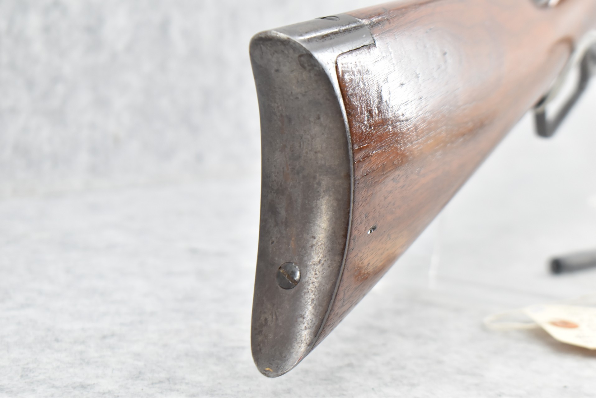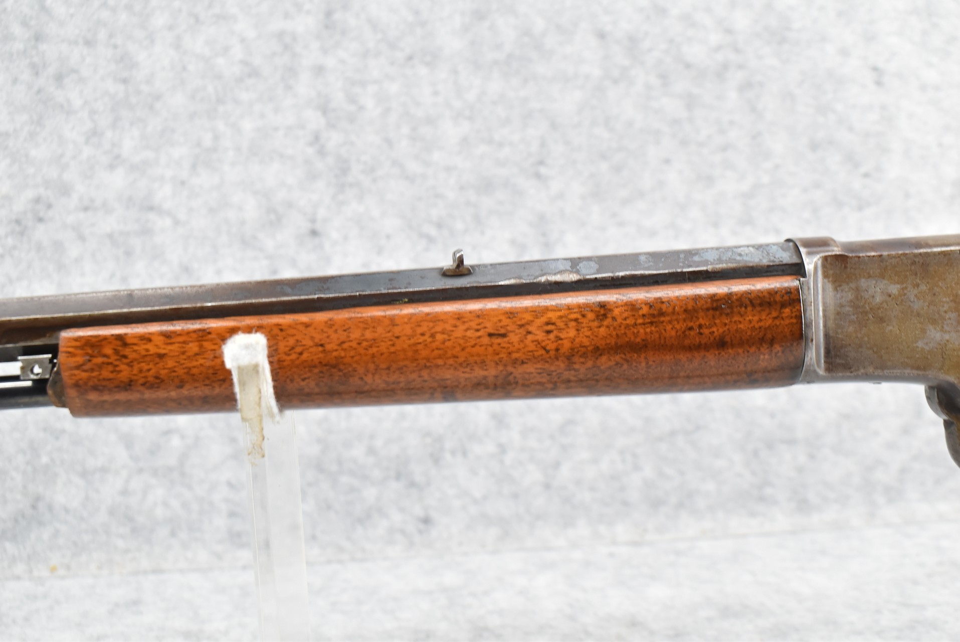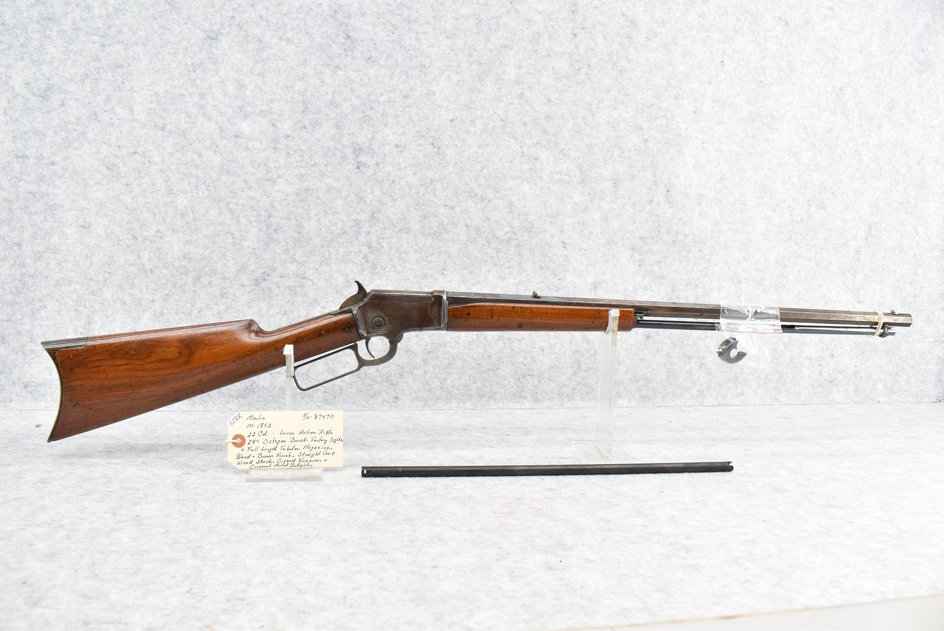 608R. Marlin – Mod. 1892 – 22 Cal. Lever Action Rifle – w/24” Octagon Barrel w/Factory Sights & Full Length Tubular Magazine – Blued & Brown Finish – w/Straight Grip Wood Stock & Capped Forearm w/Crescent Metal Butt Plate – Has Original Magazine Tube w/Gun, a Replacement Tube is Currently in the Gun – Note: Forearm Issues