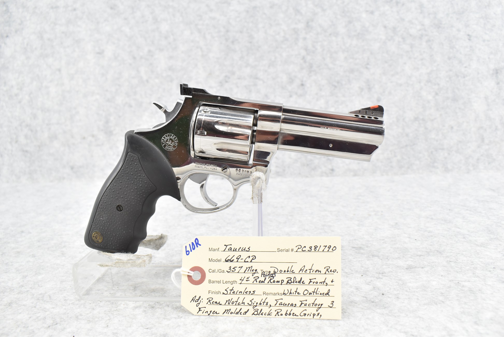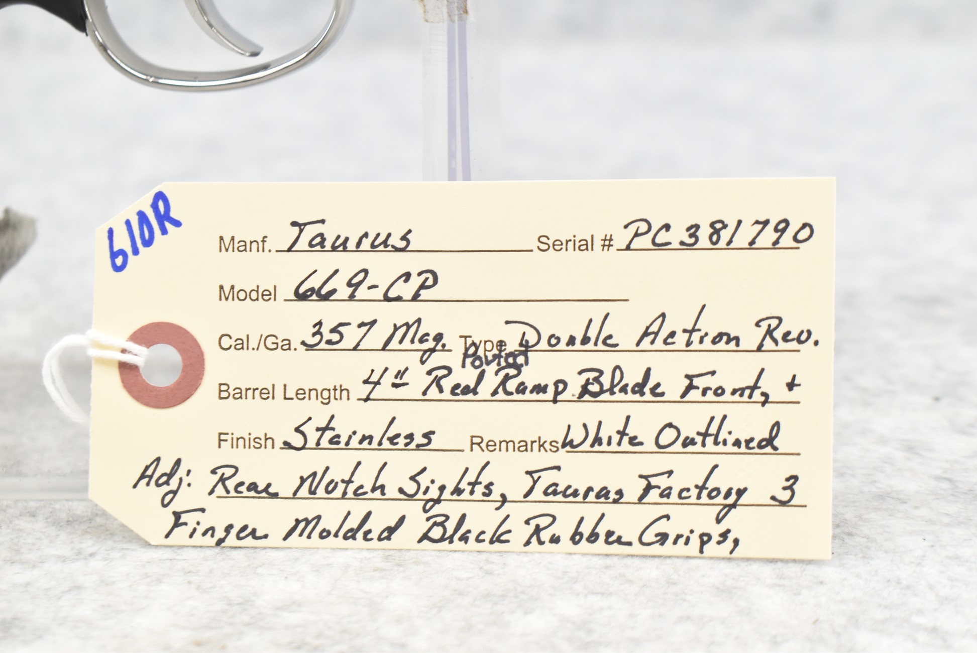 610R. Taurus – Mod. 669-CP – 357 Mag. Cal. Double Action Revolver – w/4” Ported Barrel w/Red Ramp Blade Front & White Outlined Adj. Rear Notch Sights – w/Taurus Factory 3-Finger Molded Black Rubber Grips
