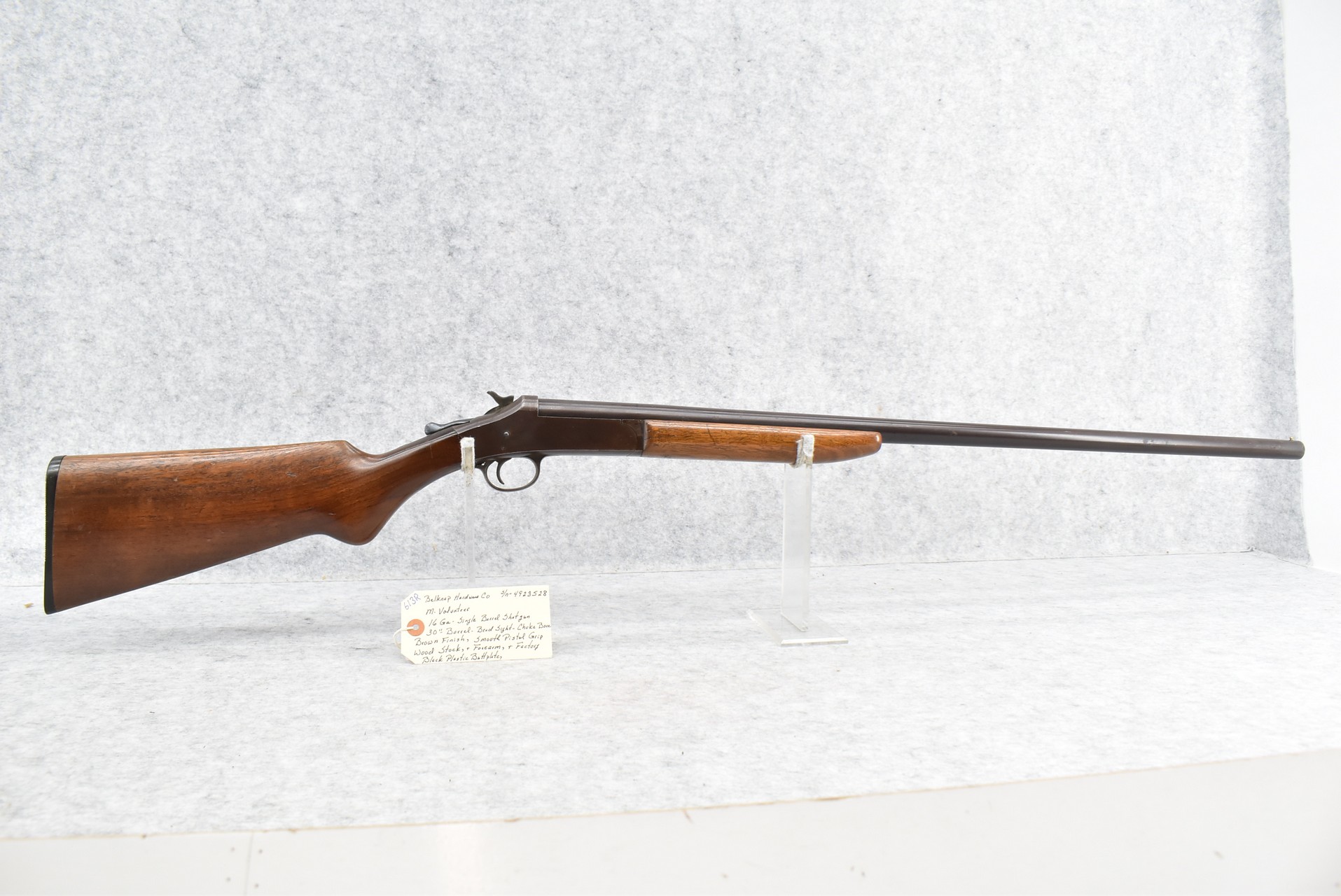 613R. Belknap Hardware Co. – Mod. Volunteer – 16ga. Single Barrel Shotgun – w/30” Choked Barrel w/Bead Sight – Brown Finish – w/Smooth Pistol Grip Wood Stocks w/Factory Butt Plate