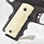 619R. Rock Island – Mod. M1911-A1 CS – 45 ACP Cal. Semi-Auto Pistol – w/3.75” Barrel w/3-Dot White Sights – Matte Black Finish – w/Mother of Pear Grips w/Rubber Grooved Front Grip Strap – w/Factory Wood GI Grips – w/Flush Fit Mag & 2 Extended Mags – w/Factory Hard Case & Mag Loader