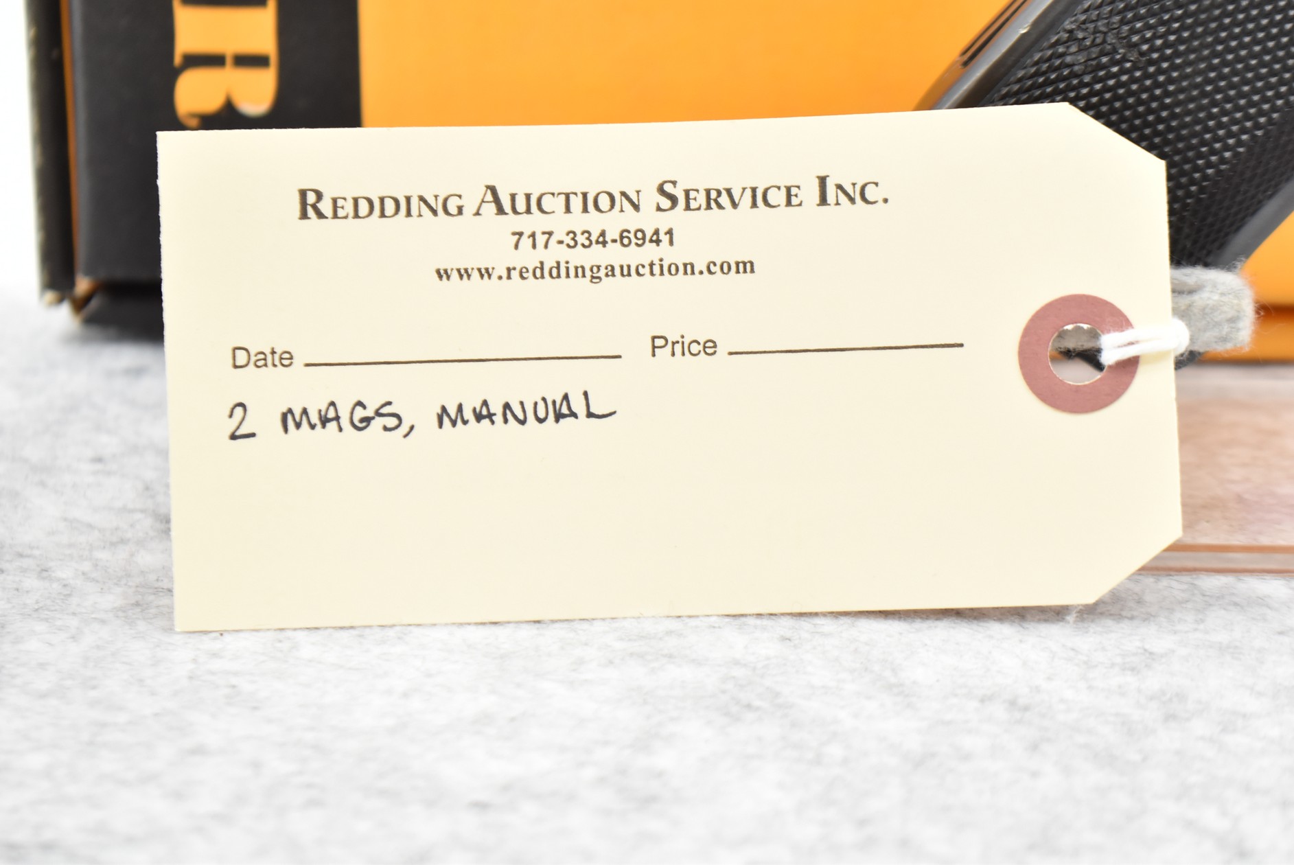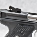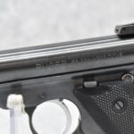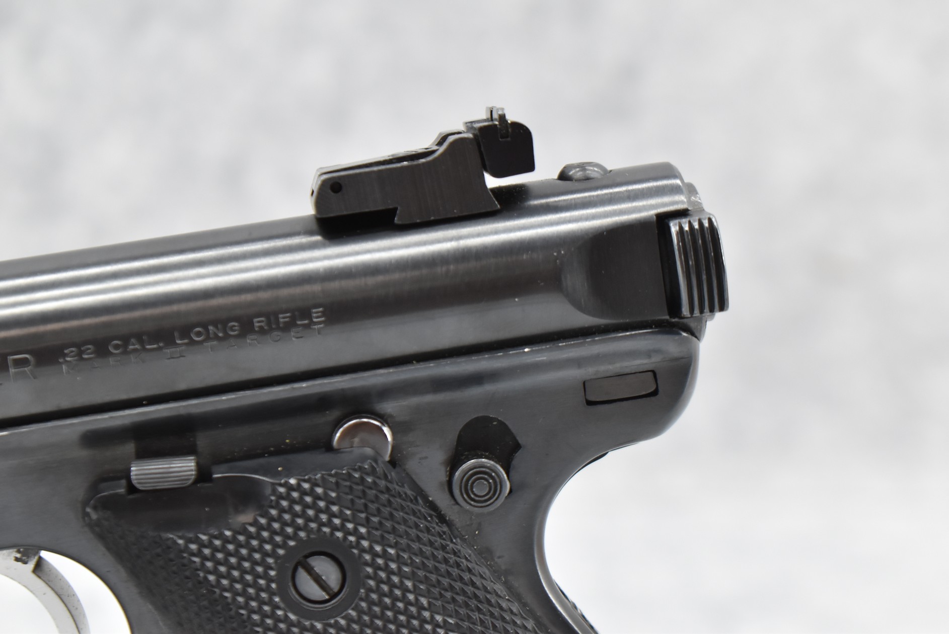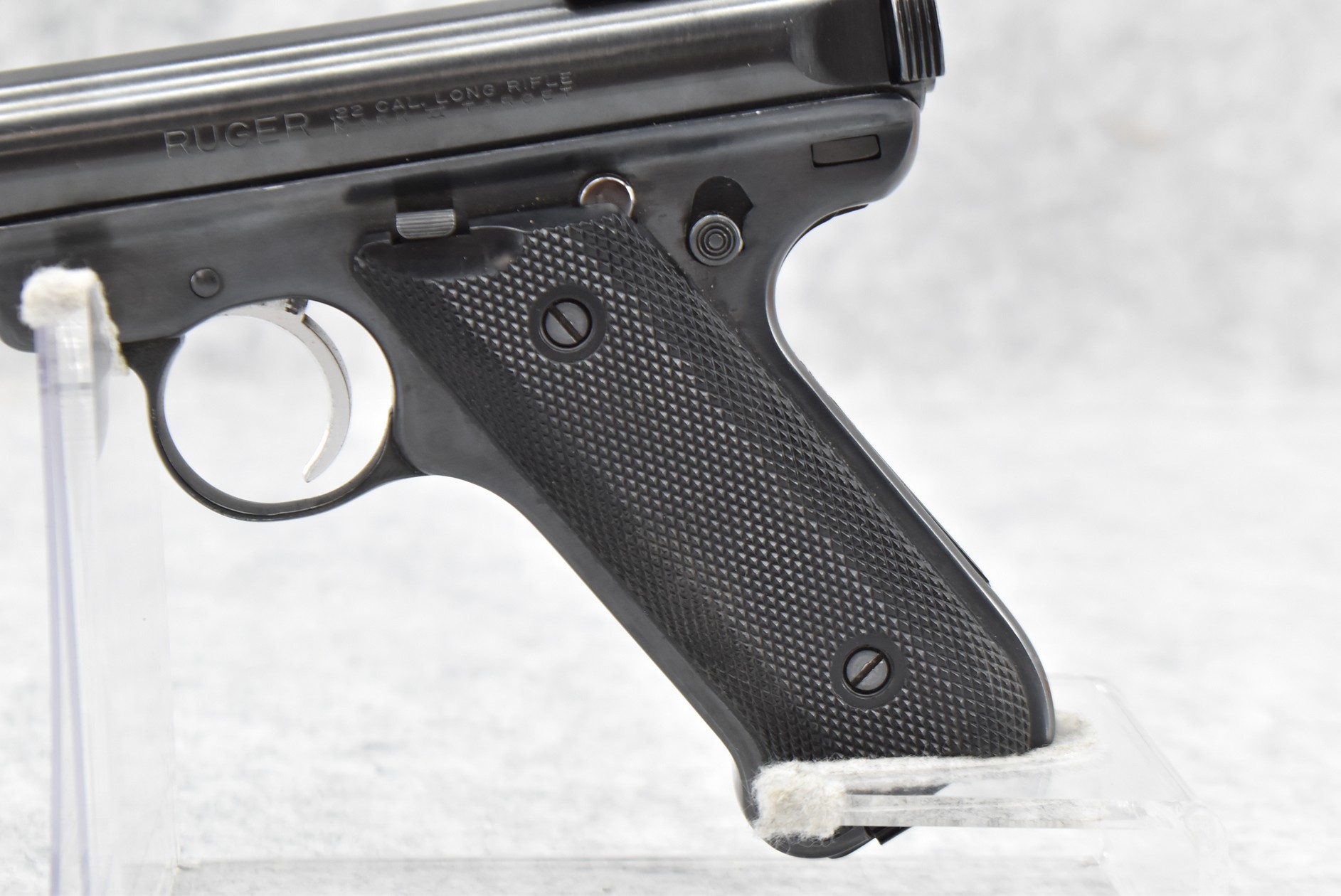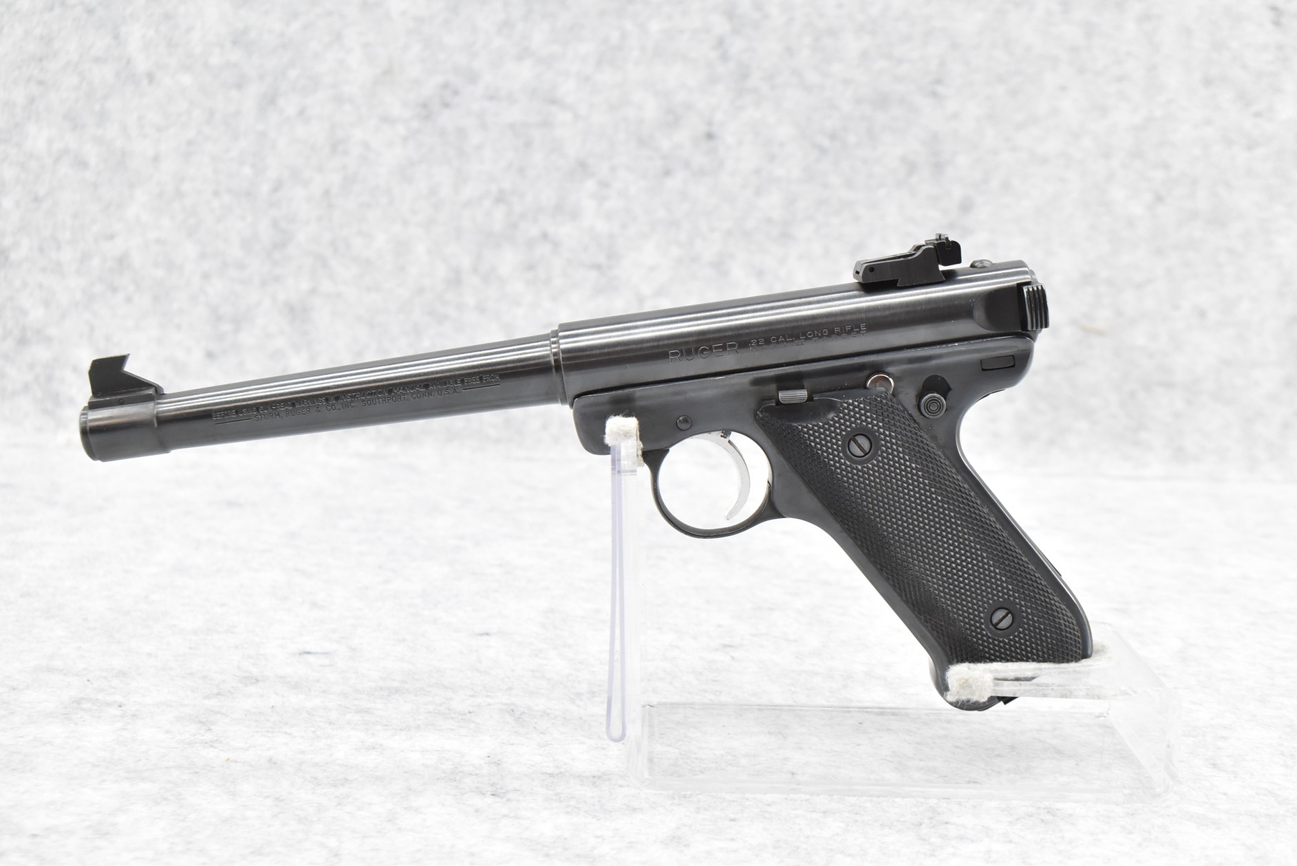 61R. Ruger – Mod. Mark II Target – 22LR Cal. Semi-Auto Pistol – w/6 7/8” Barrel w/Front Blade & Rear Adj. Sights – Blued Finish – w/Factory Checkered Hard Grips w/Silver Eagle Medallion – w/Factory Box, 2 Mags & Manual – Mfg. 1985