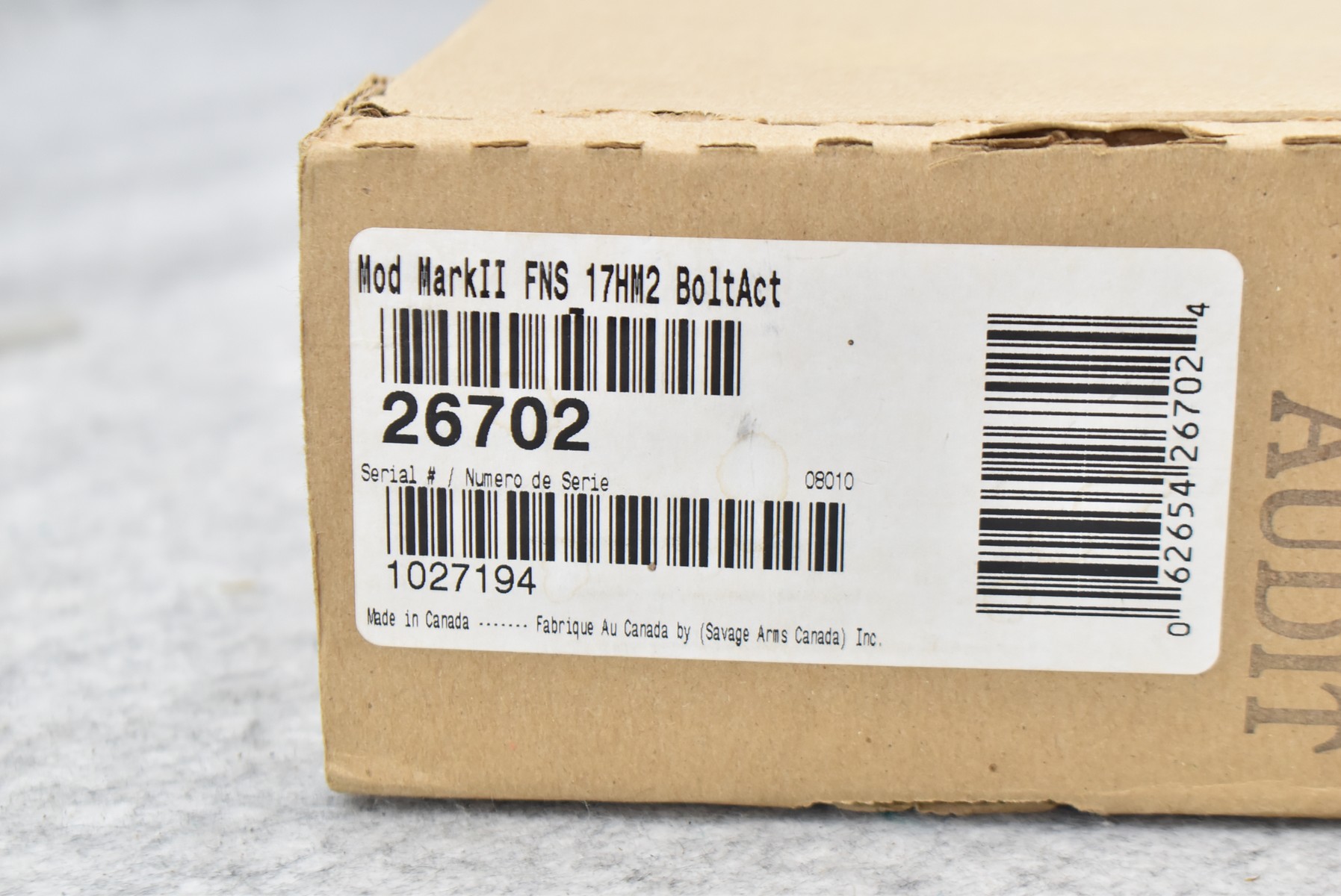 620R. Savage – Mod. Mark II – 17 Mach 2 Cal. Bolt Action Rifle – w/21” Barrel – Blued Finish – w/Checkered Capped Pistol Grip Black Synthetic Stock – w/Factory Detachable Magazine – w/Scope Mounting Bases – Unfired w/Box