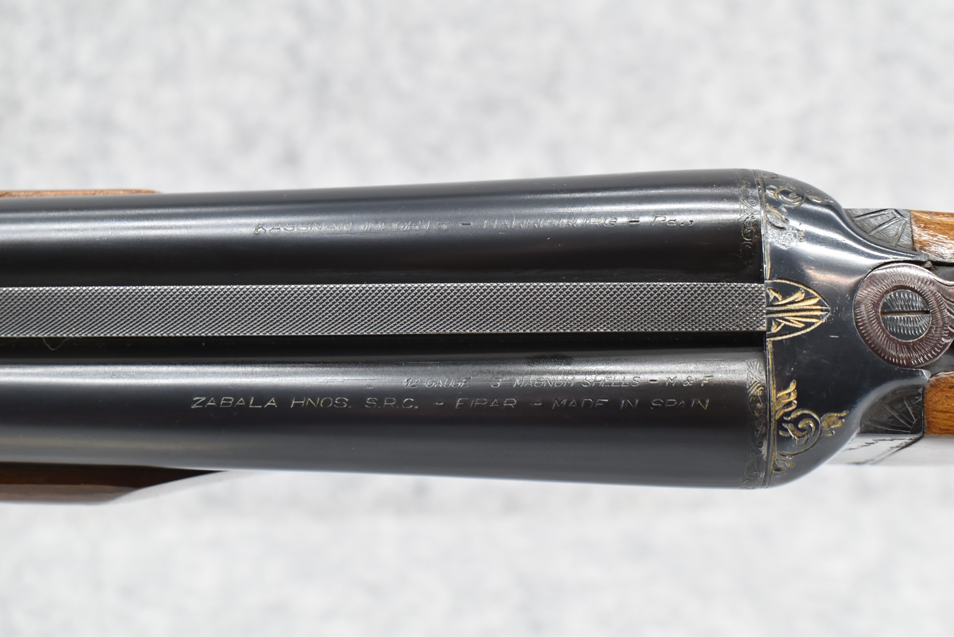 628R. Zabala (Kassnar Import) – 12ga. 3” Mangum Double Barrel Shotgun – w/28” Mod and Full Choke Barrels w/Solid Rib and Bead Sights – Blued Finish – w/Checkered Capped Pistol Grip Wood Stock w/Butt Pad & Beavertail Forearm