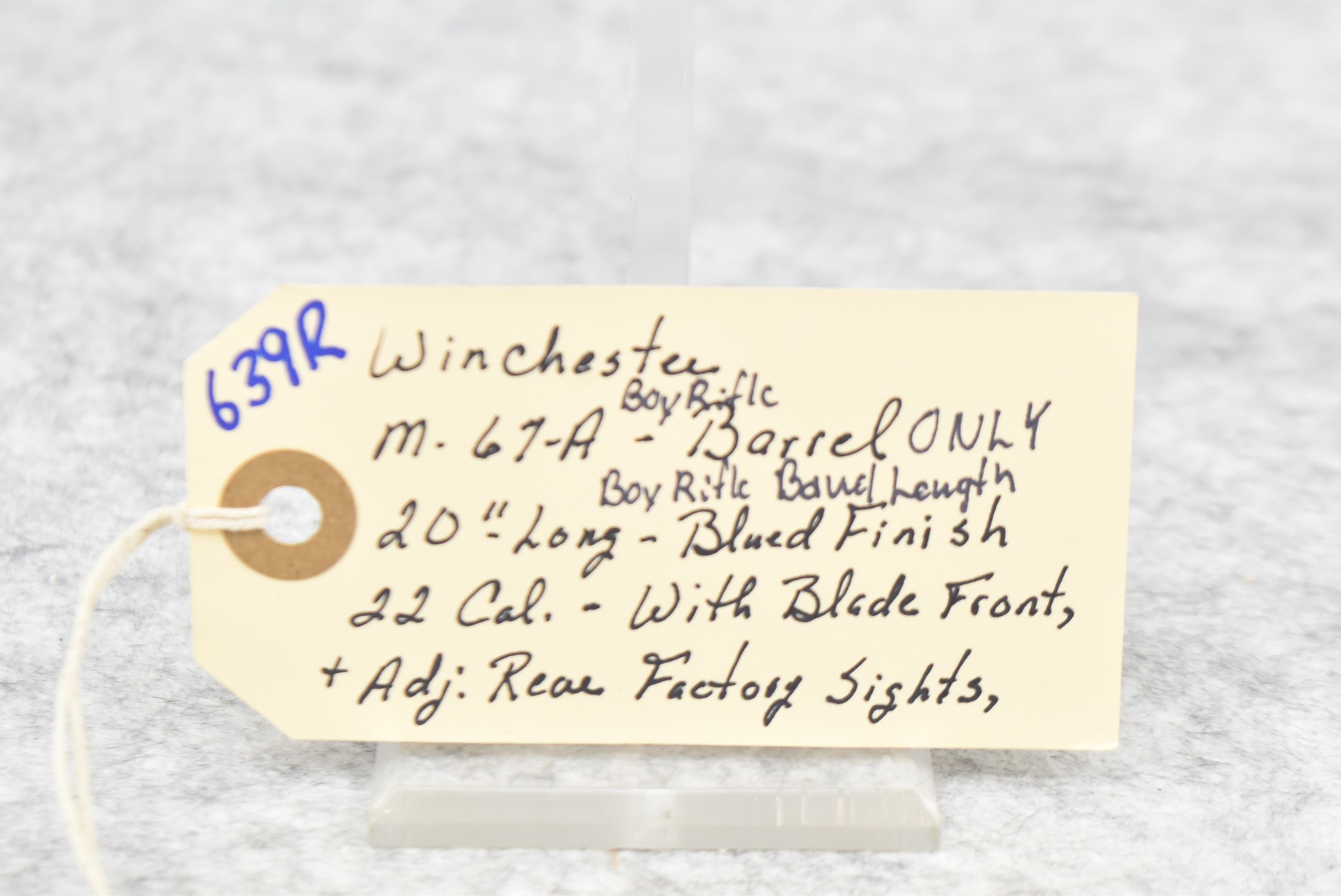 639R. Winchester – Mod. 67A Boy Rifle – 22 Cal. Barrel Only – w/20” Boy Rifle Barrel Length – w/Blade Front and Adjustable Rear Factory Sights – Blued Finish