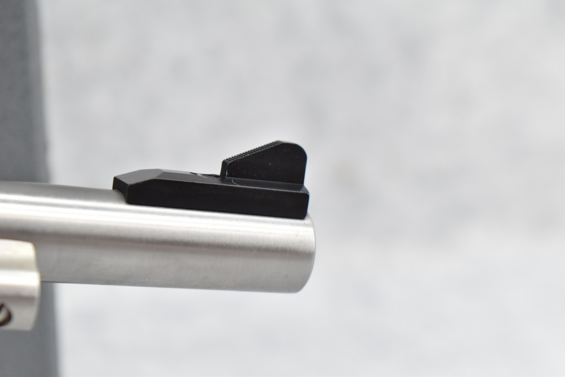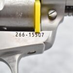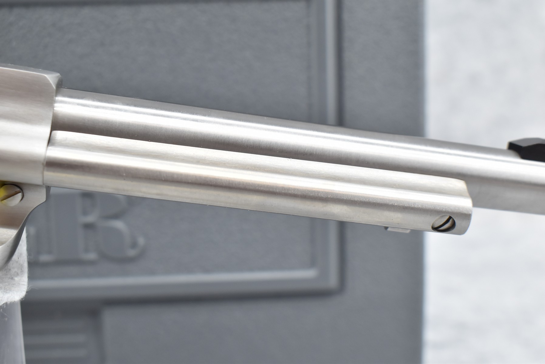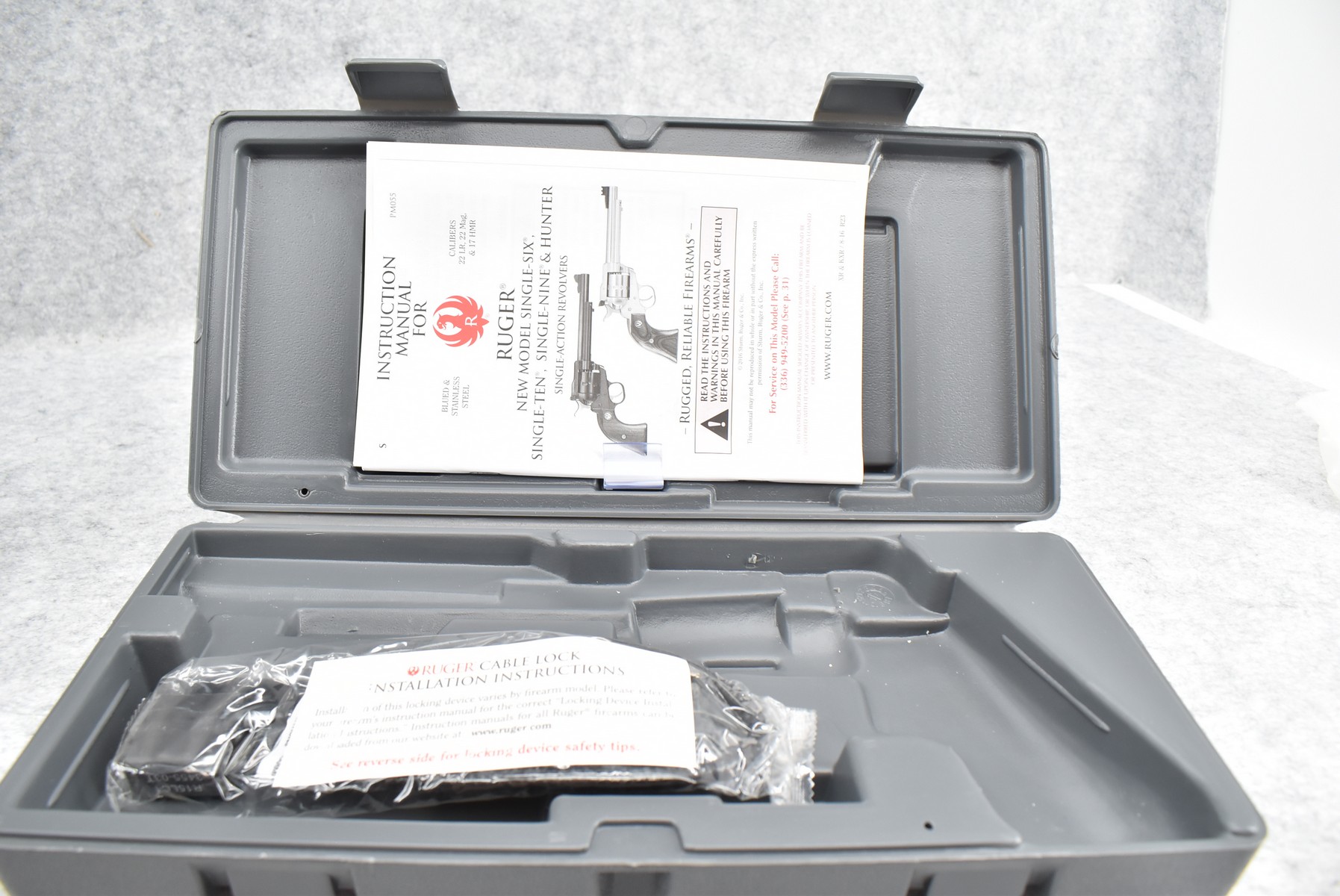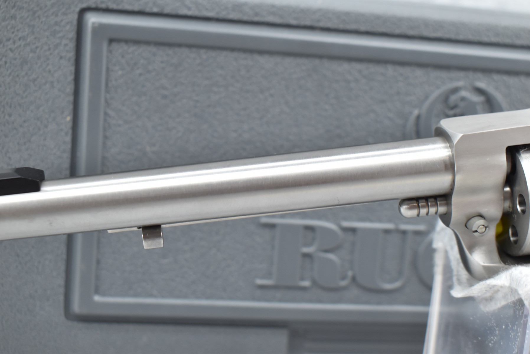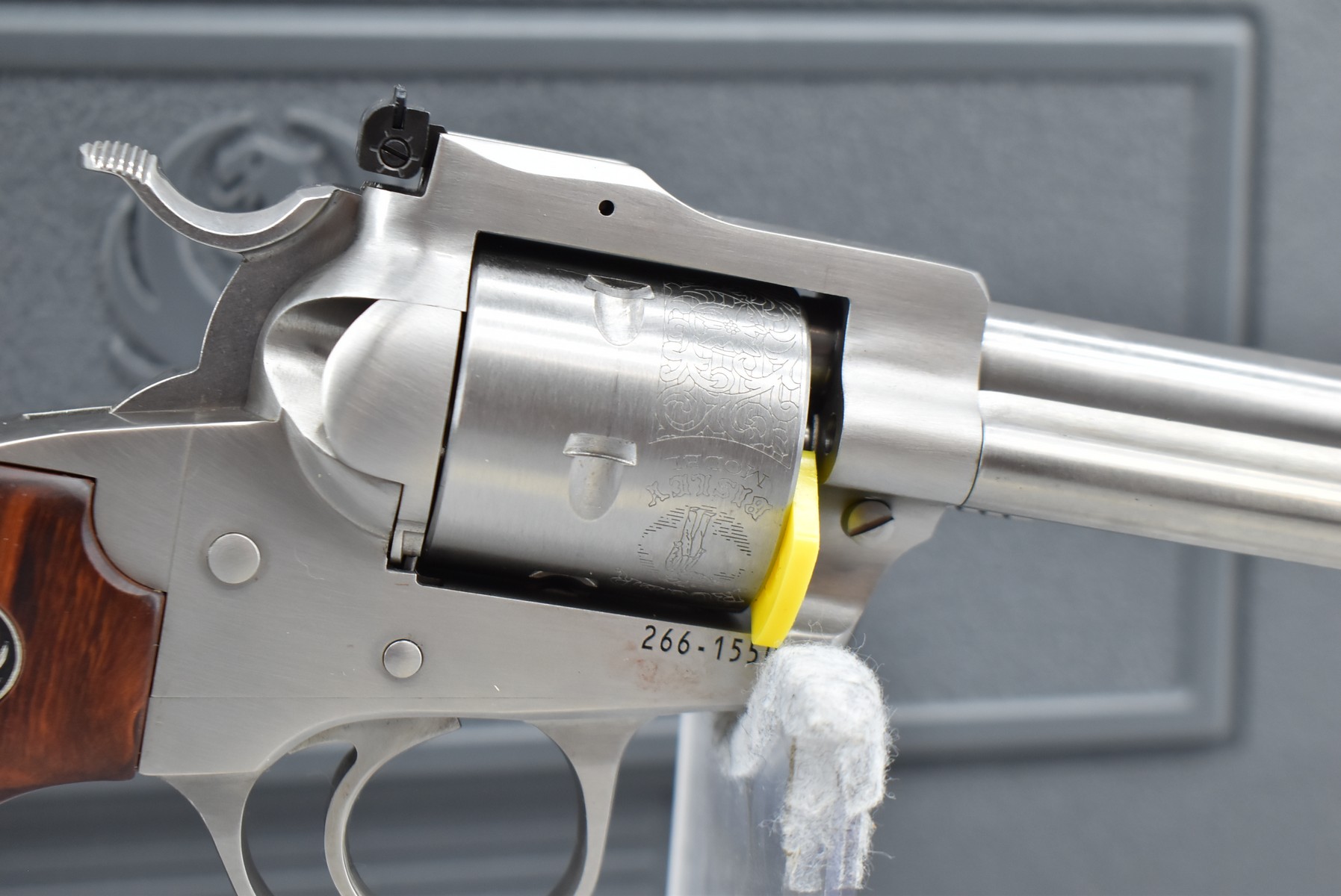 63R.       Ruger – Mod. Bisley Single Six – 22 Cal. Single Action Revolver – w/6.37” Barrel w/Front Blade & Rear Adj. Sight – Stainless Finish – w/Engraved Cylinder – w/Rosewood Factory Grip – w/Ruger Silver Eagle Medallion – Mfg. 2017 – New & Unfired w/Factory Hard Case, Manual & Lock