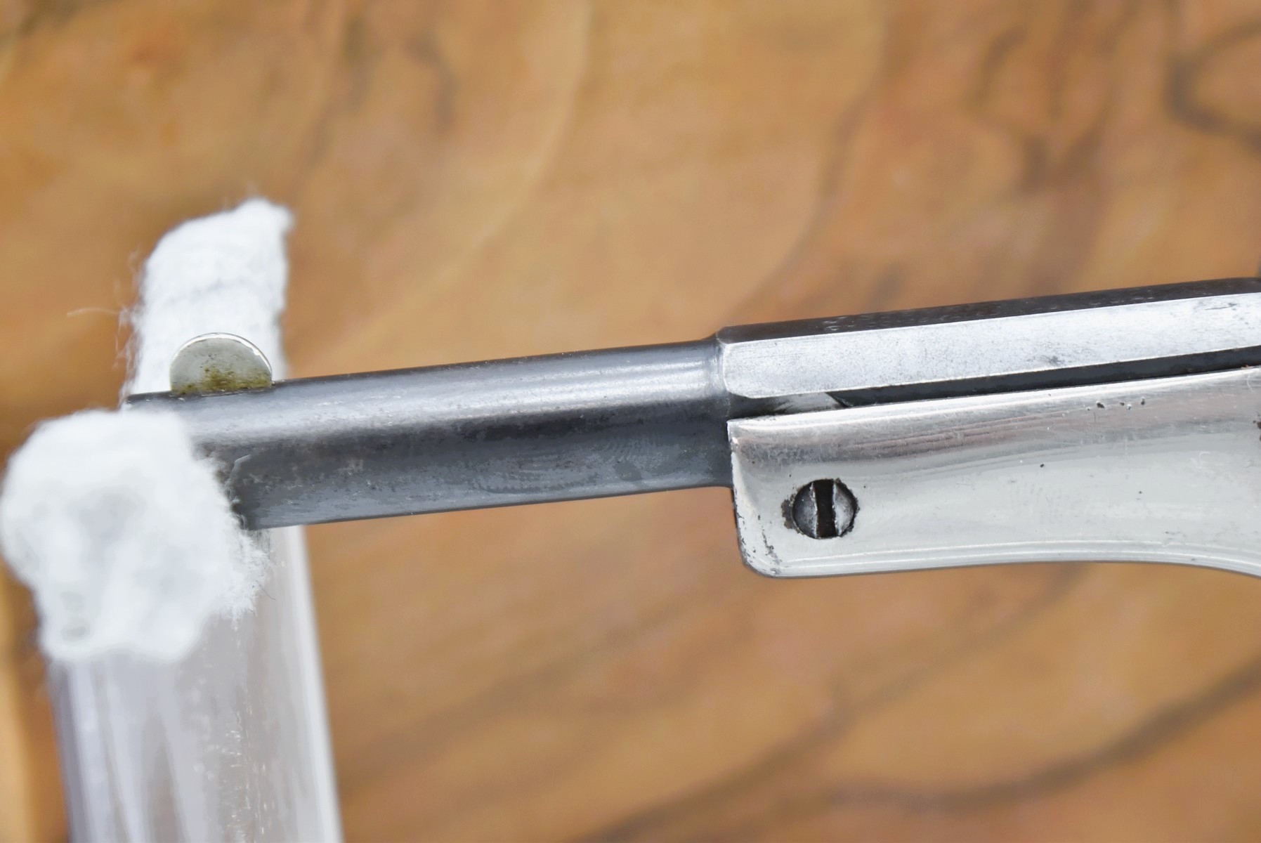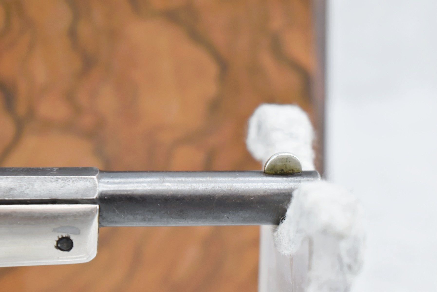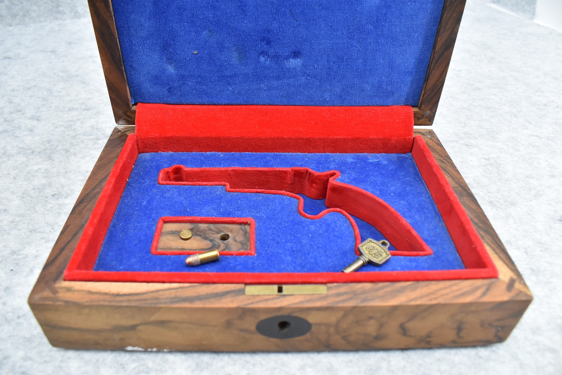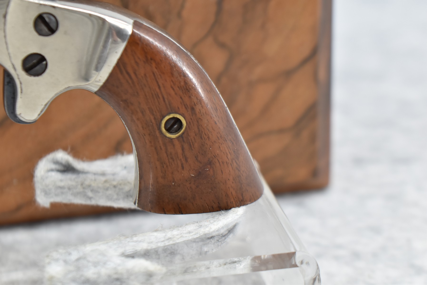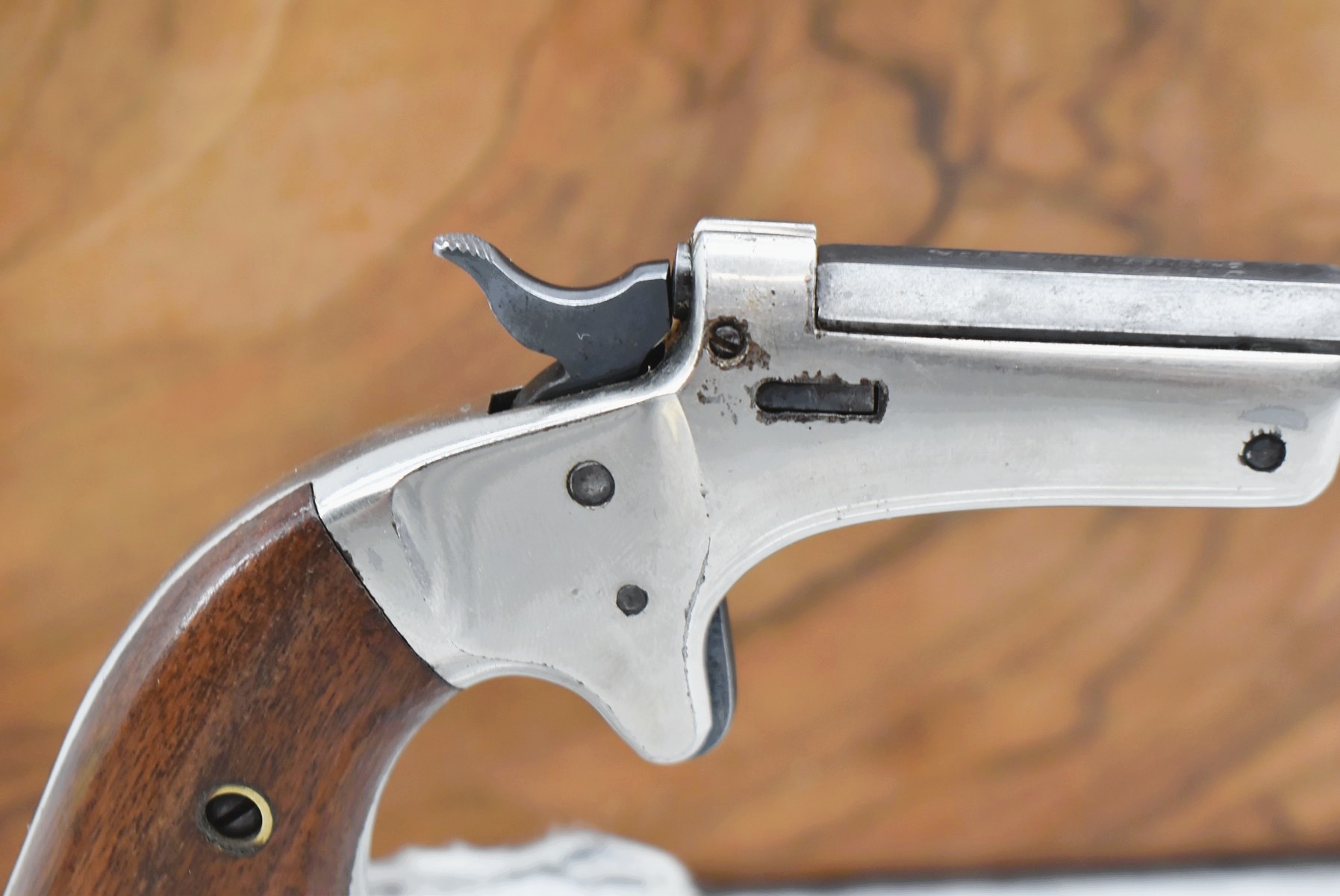 642R. J. Stevens – Mod. Tip UP – 22 Short Cal. Single Shot Pistol – w/3 ¼” Barrel w/Factory Sights – Blued/Nickel Finish – w/Smooth Wood Grips – w/Lockable Wooden Case – Note: Barrel Release is Snug (CANNOT GO TO MARYLAND!)