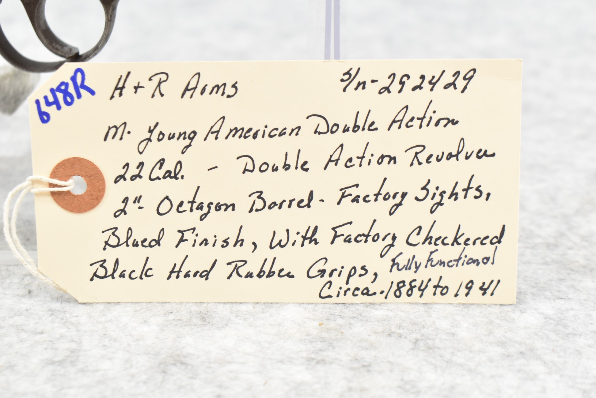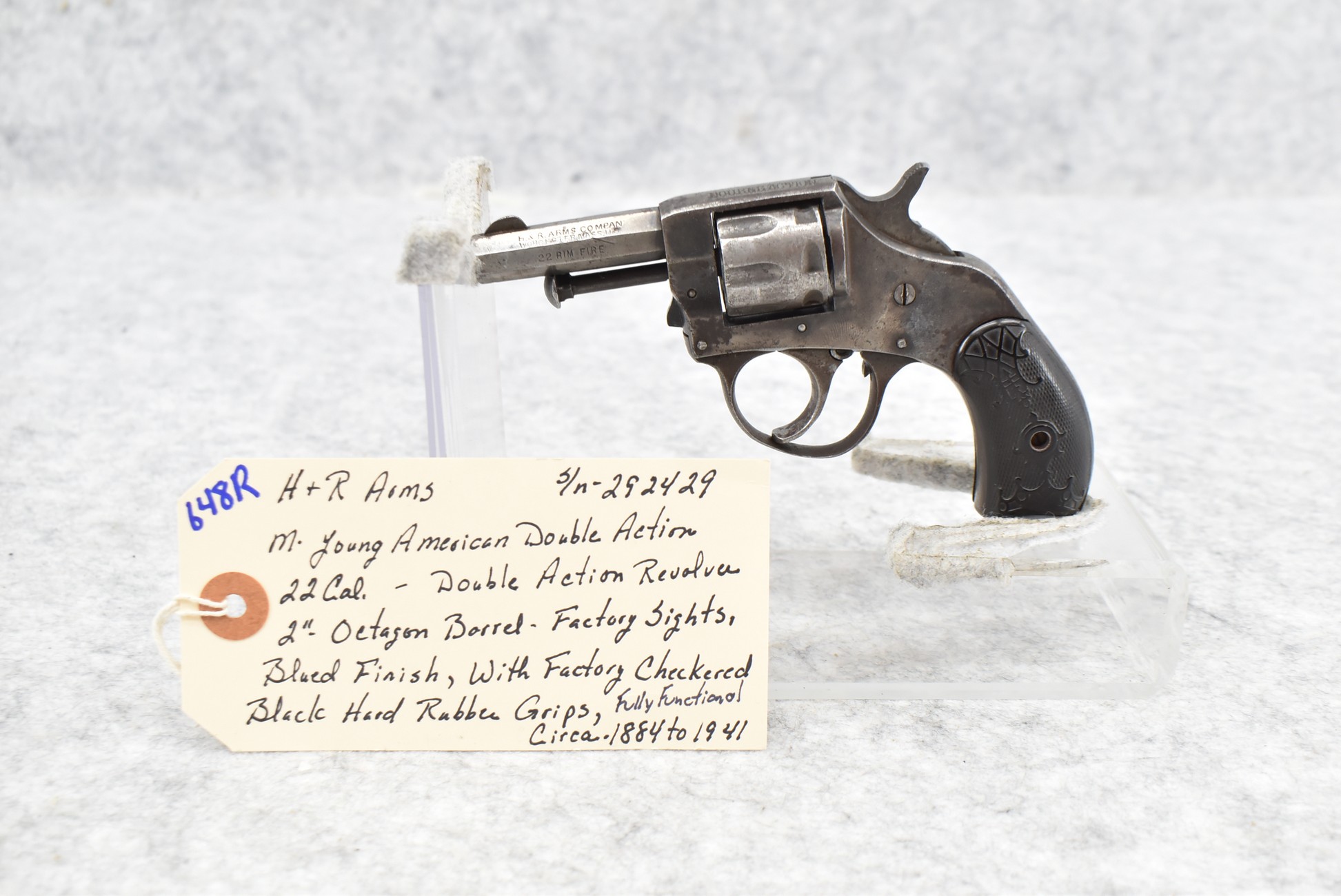 648R. H&R Arms – Mod. Young American Double Action – 22 Cal. Double Action Revolver – w/2” Octagon Barrel w/Factory Sights – Blued Finish – w/Factory Checkered Black Hard Rubber Grips – Fully Functional