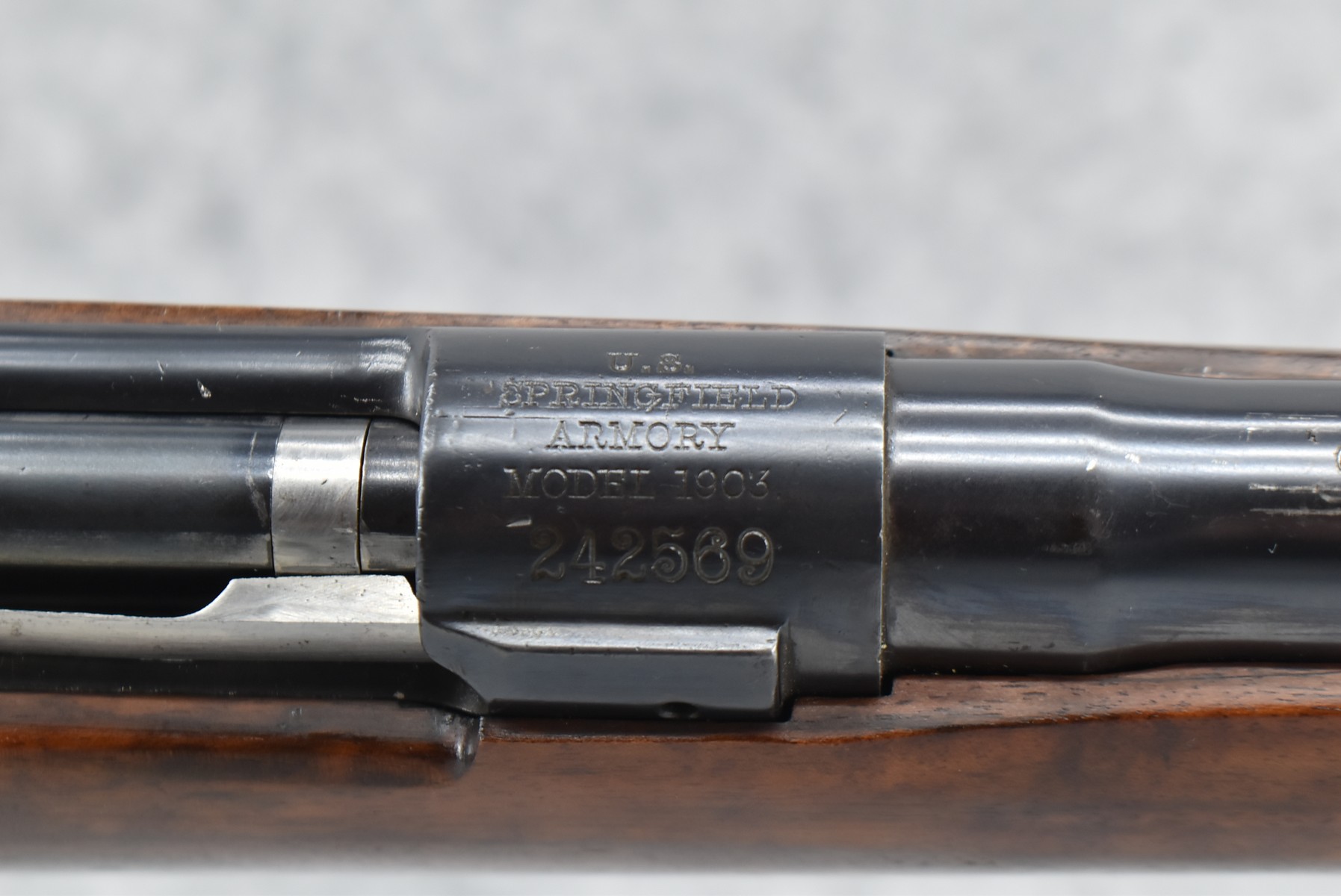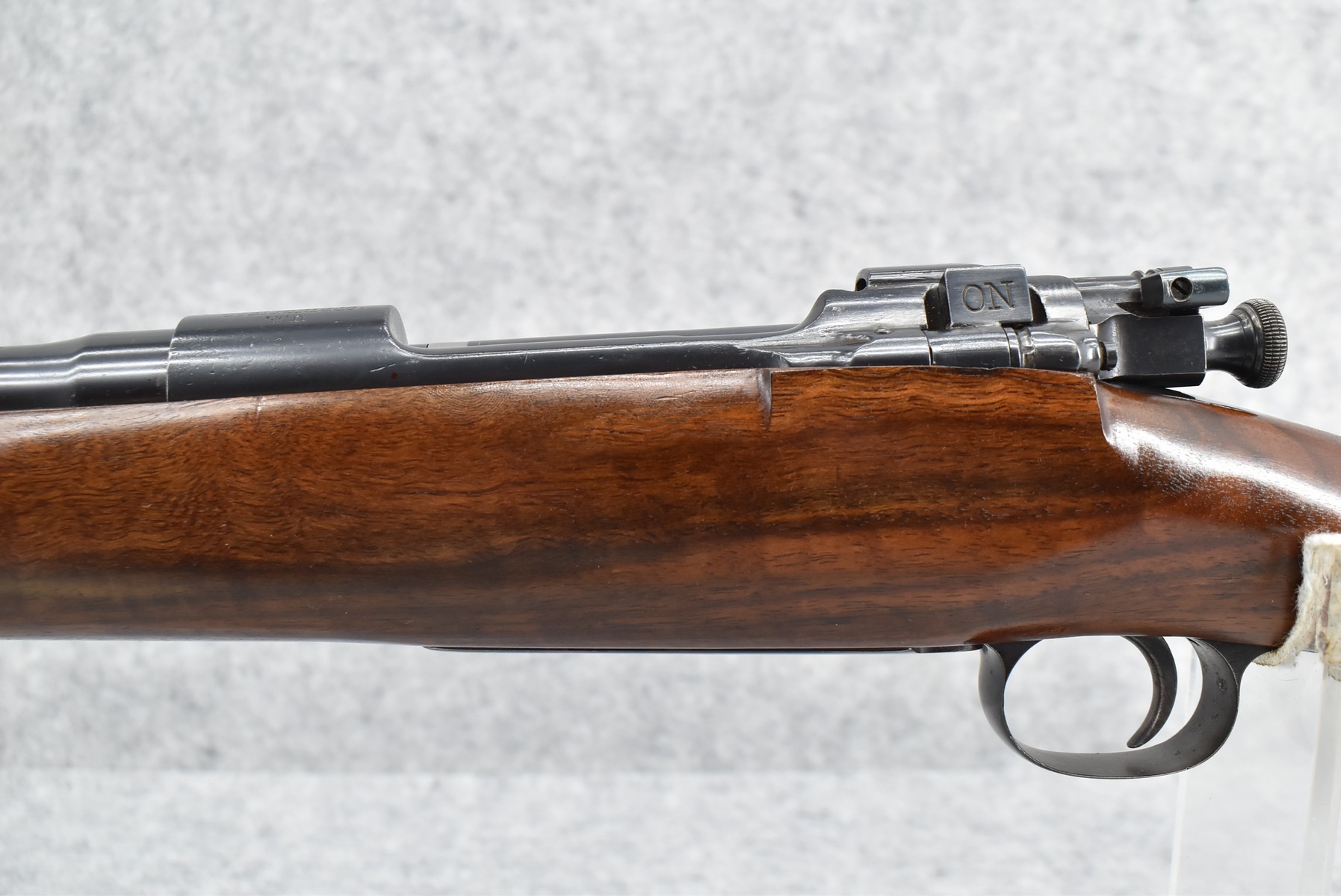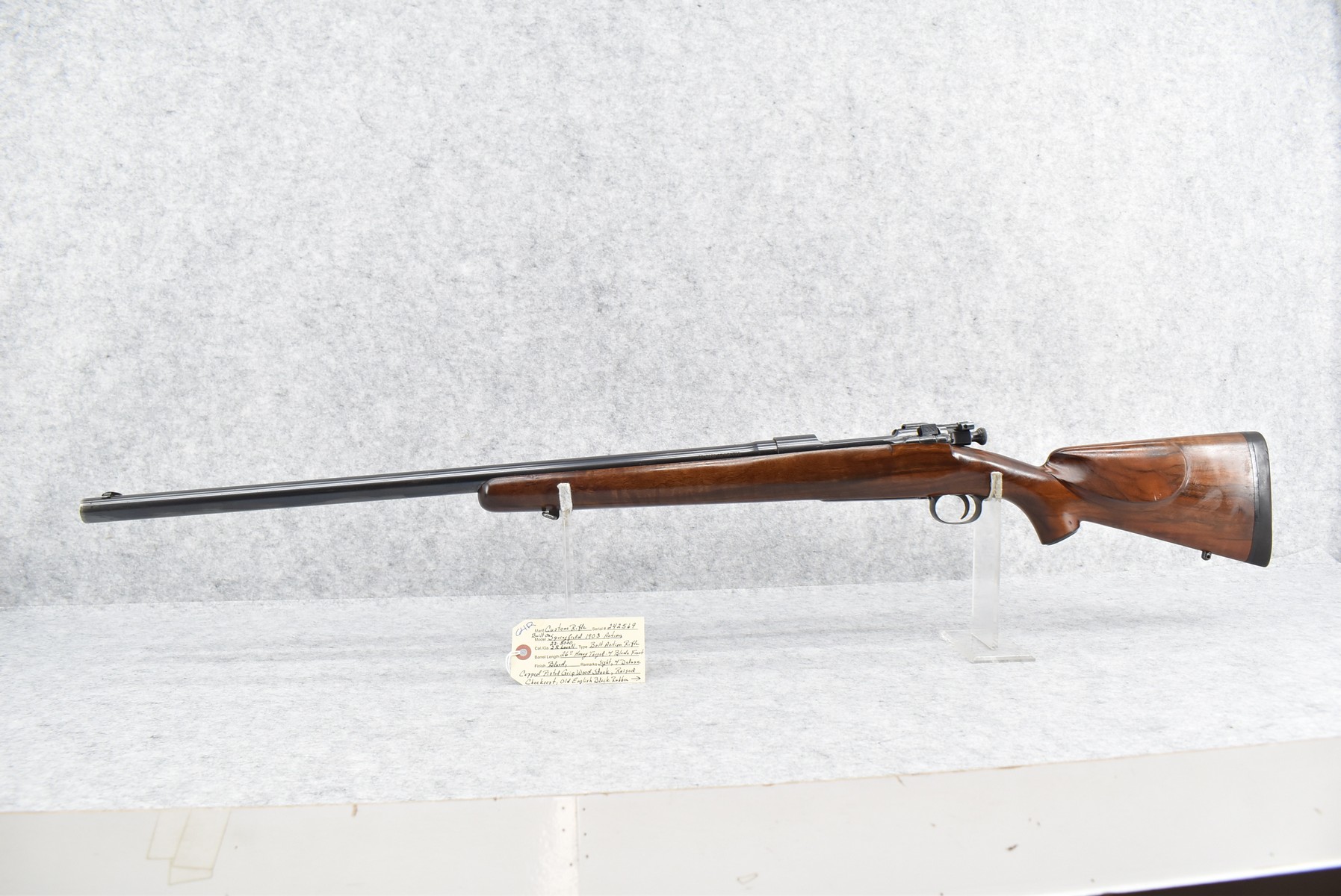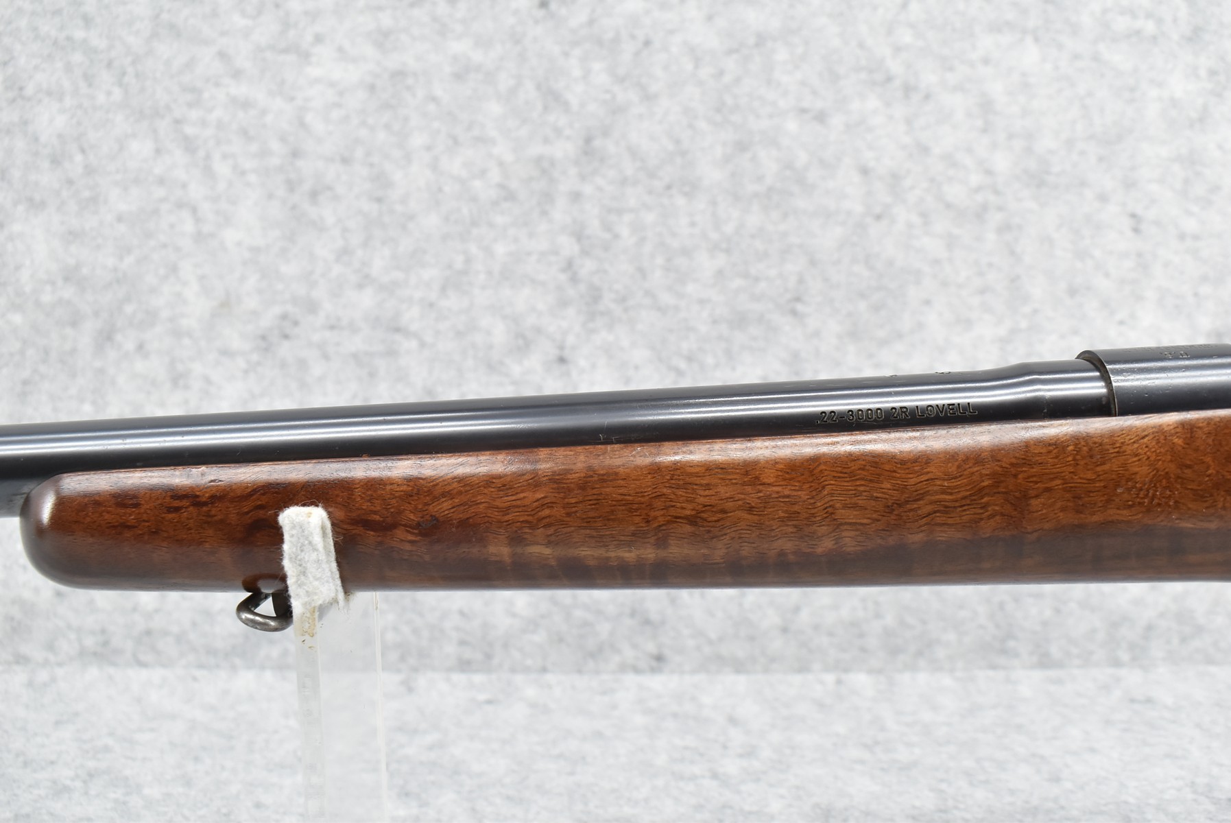 64R. Custom Rifle – Built on Springfield 1903 Action – 22-3000 Lovell Cal. Bolt Action Rifle – w/26” Heavy Target Barrel w/Blade Front Sight – Blued Finish – w/Deluxe Capped Pistol Grip Wood Stock w/Raised Cheek Piece w/Old English Black Rubber Butt Pad