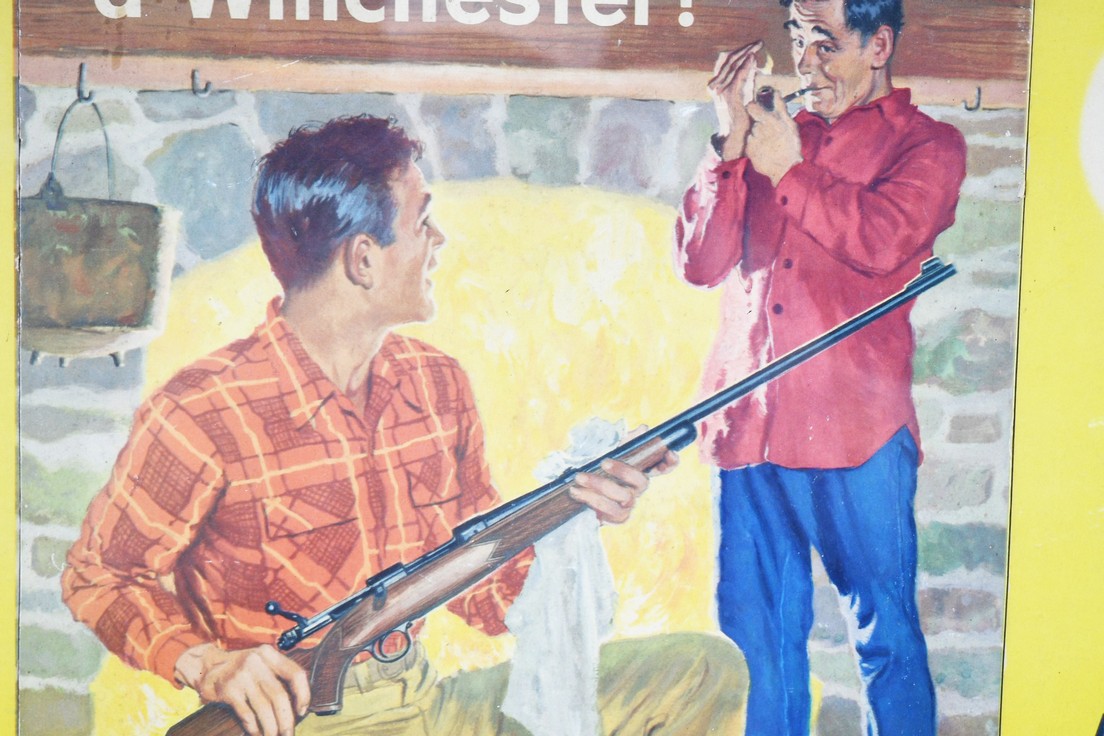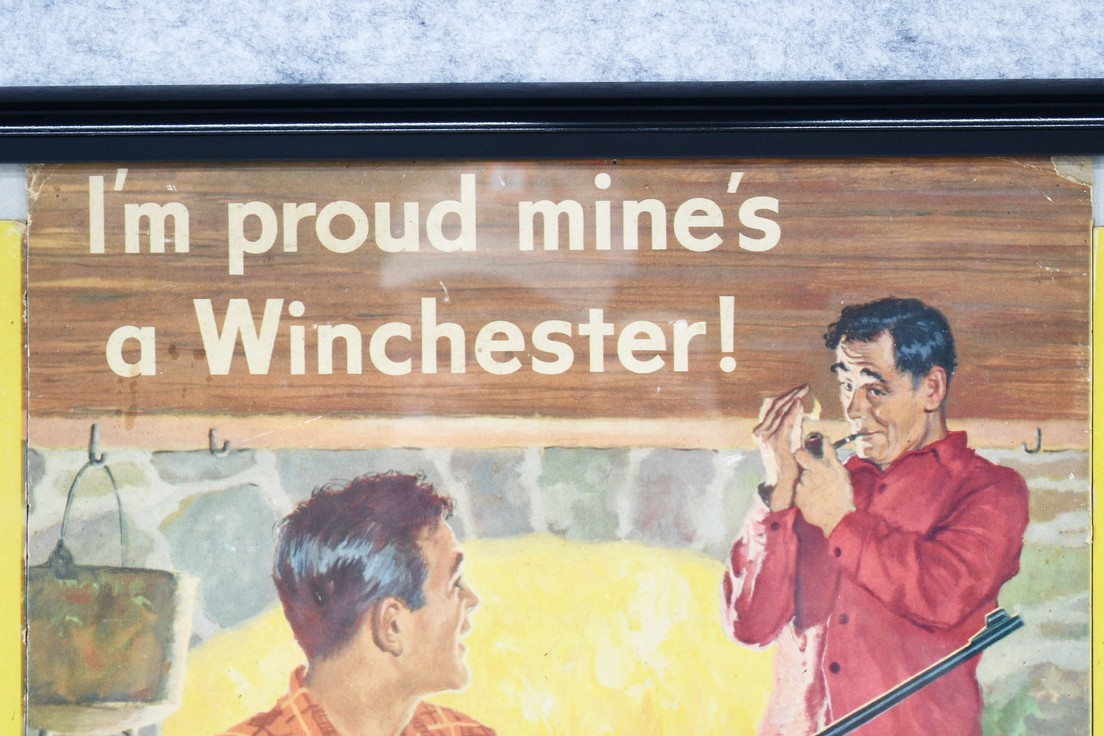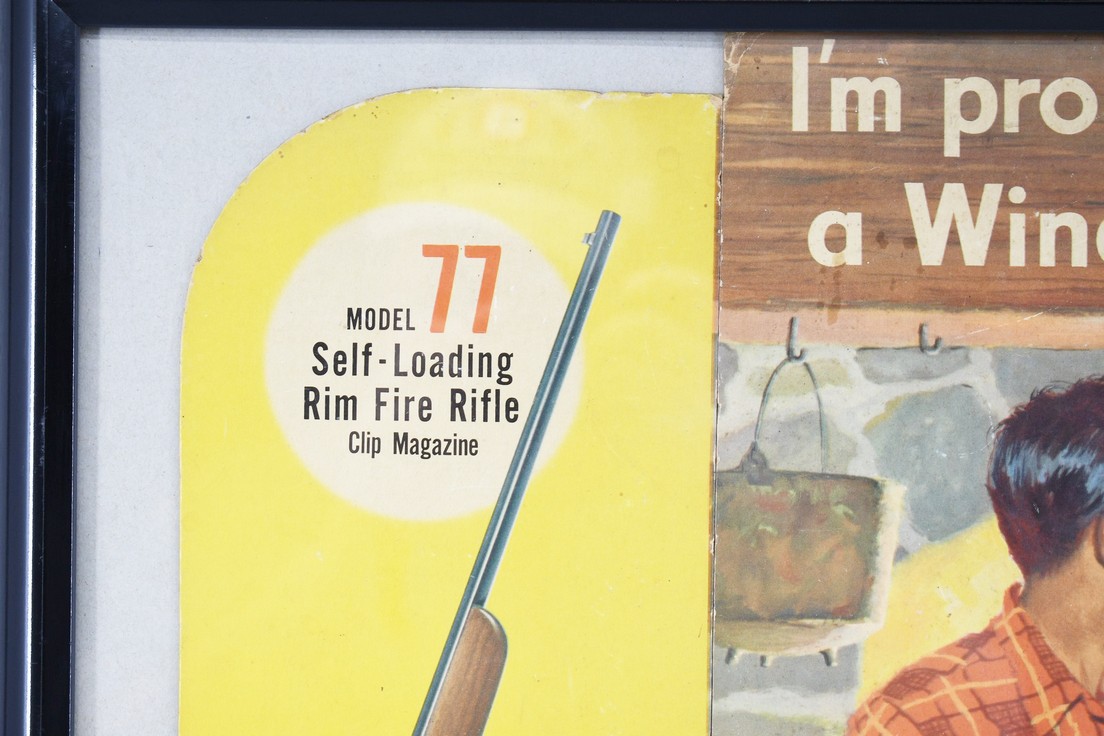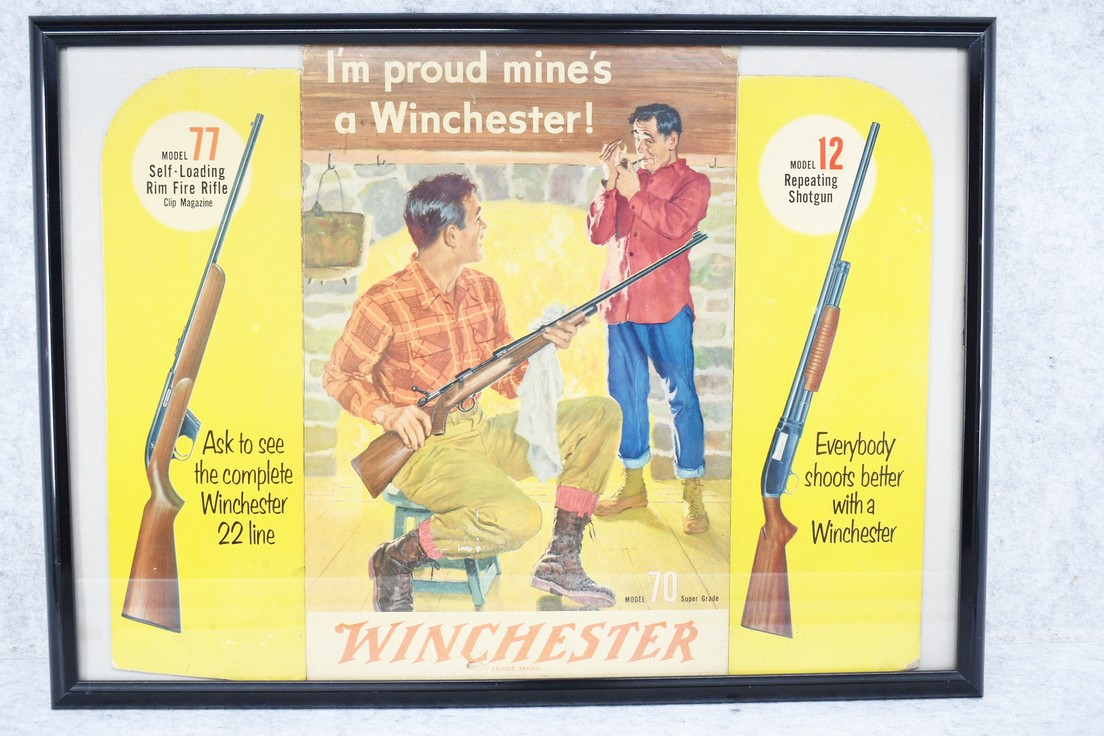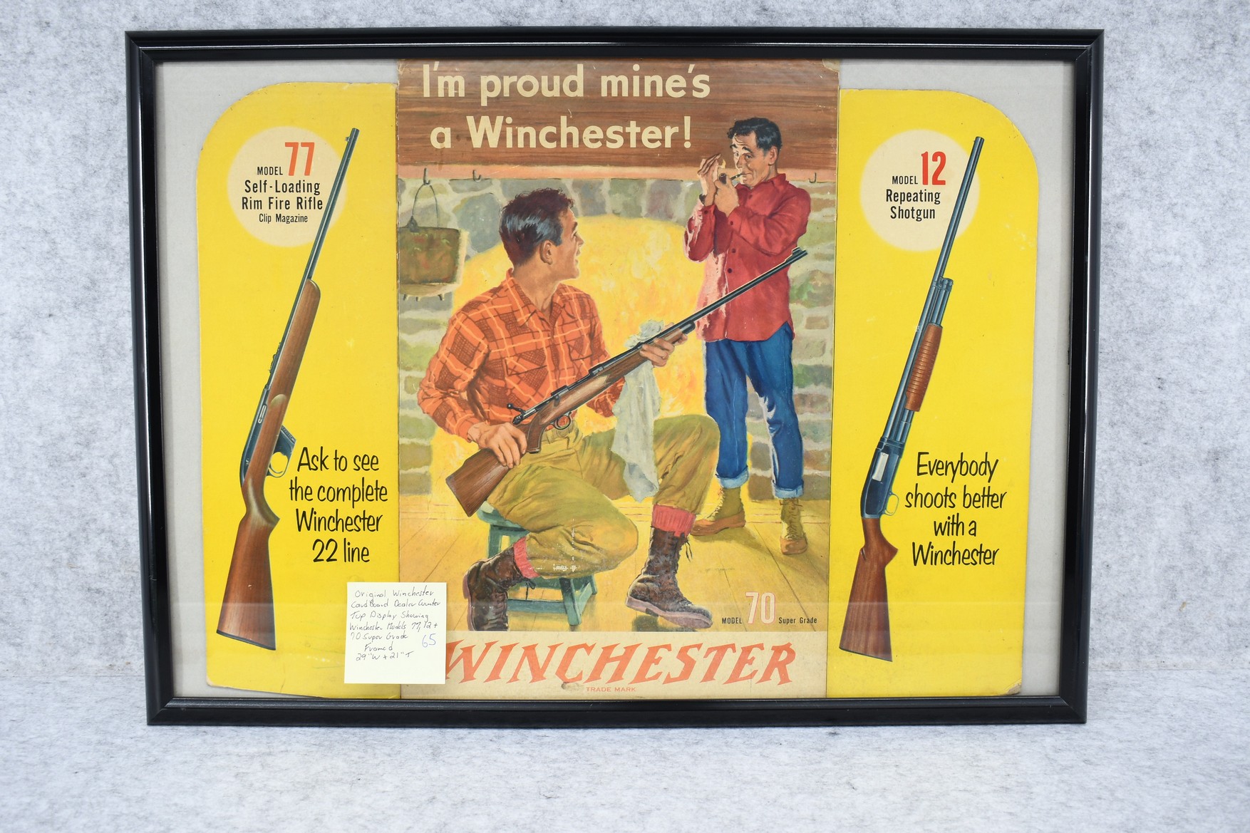 65. Original Winchester Cardboard Dealer Countertop Display Showing Winchester Models 77, 12 & 70 Super Grade – in 29” Wide x 21” Tall Frame