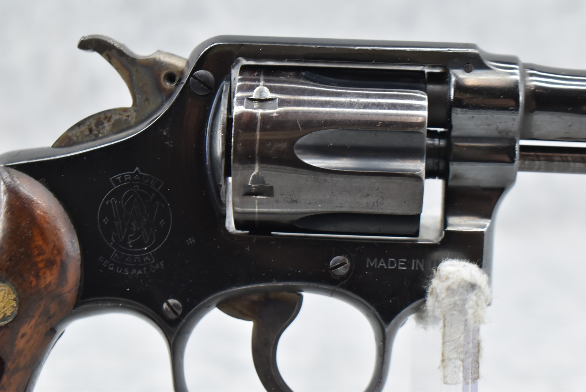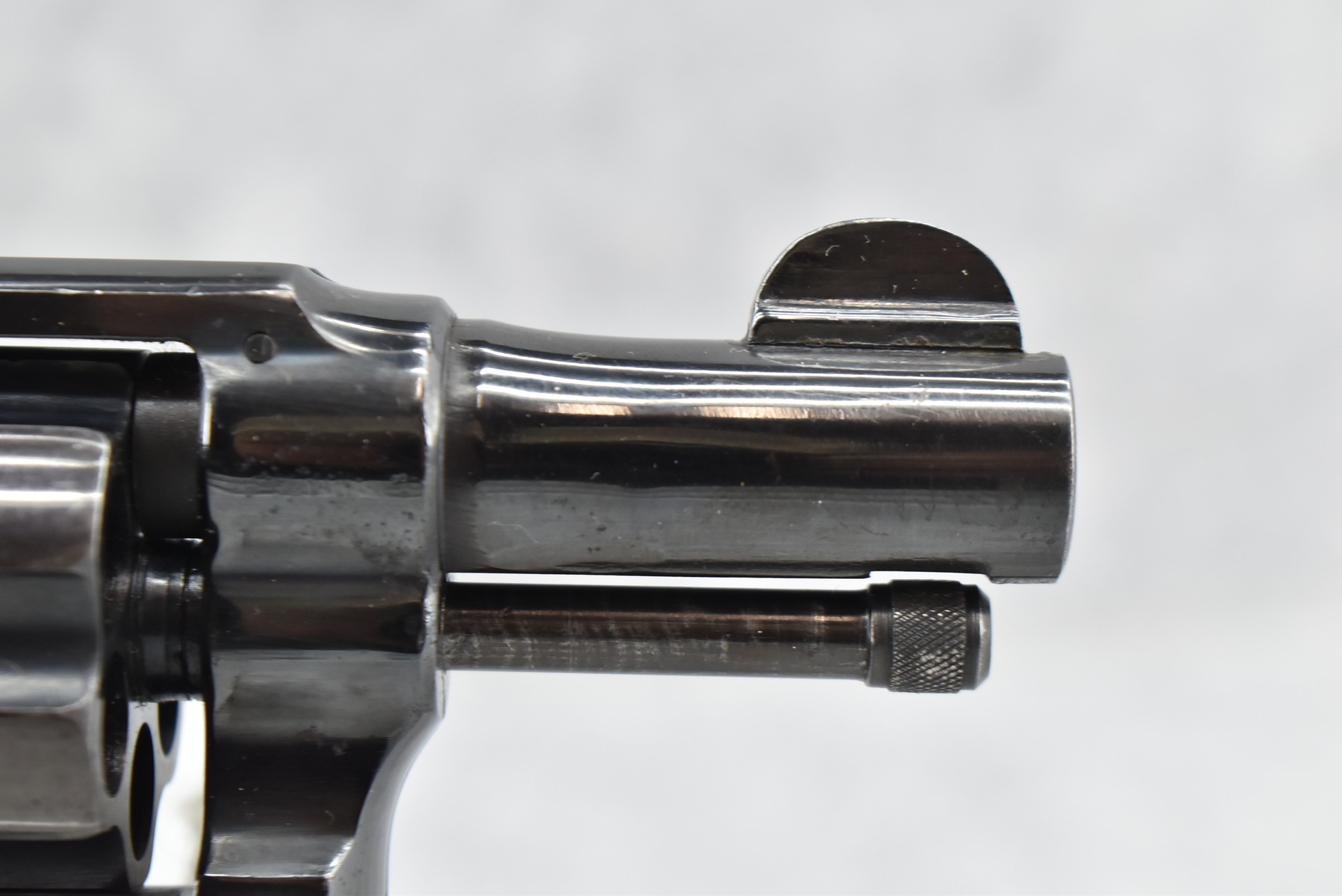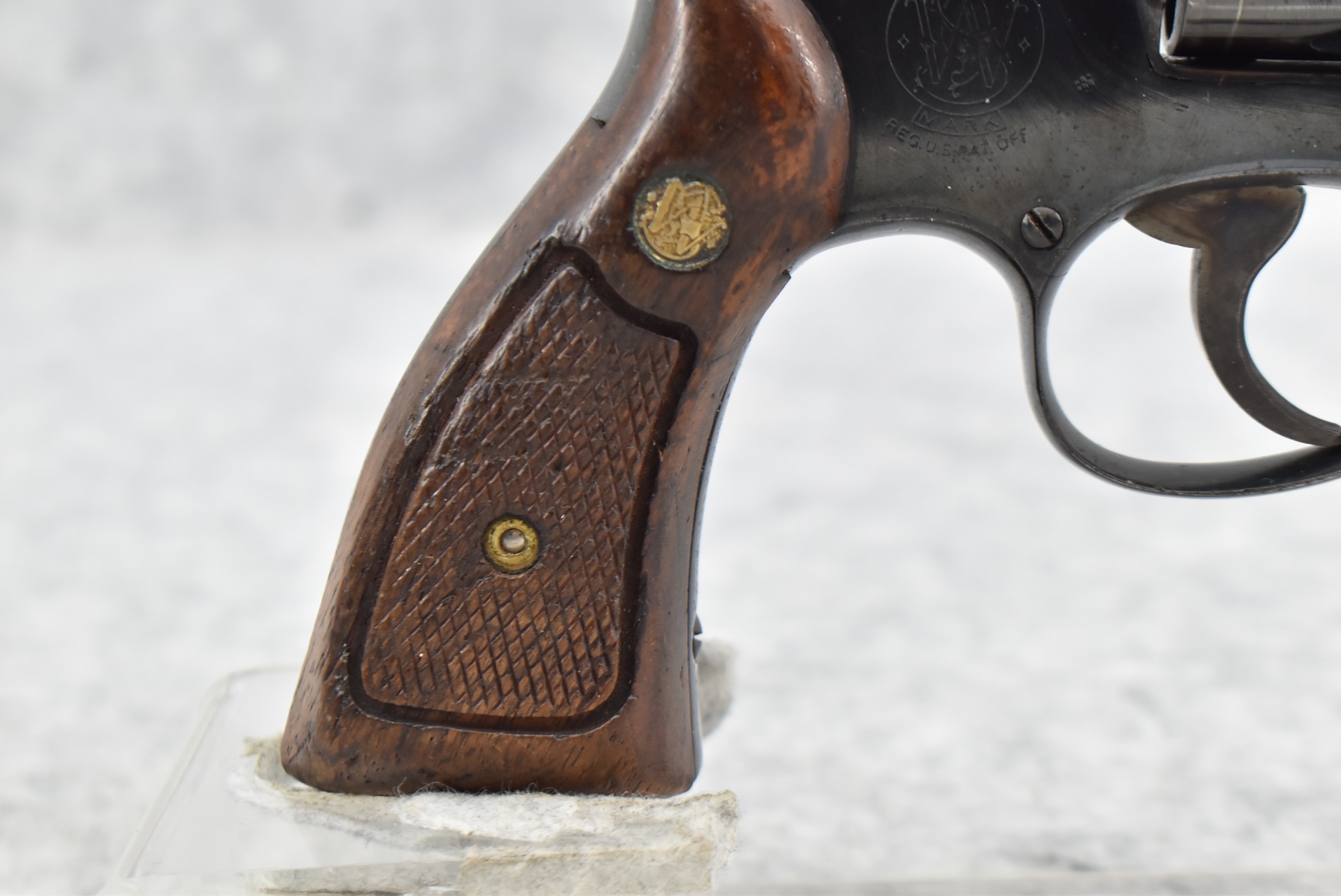 663R. Smith & Wesson – Mod. Pre-Model 10 – 38 Spl. Cal. Double Action Revolver – w/2” Barrel w/Round Blade Front and Rear Notch Sights – Blued Finish – w/Factory Checkered Wood Grip w/Smith & Wesson Medallion – Cylinder and Butt Numbers are Matching