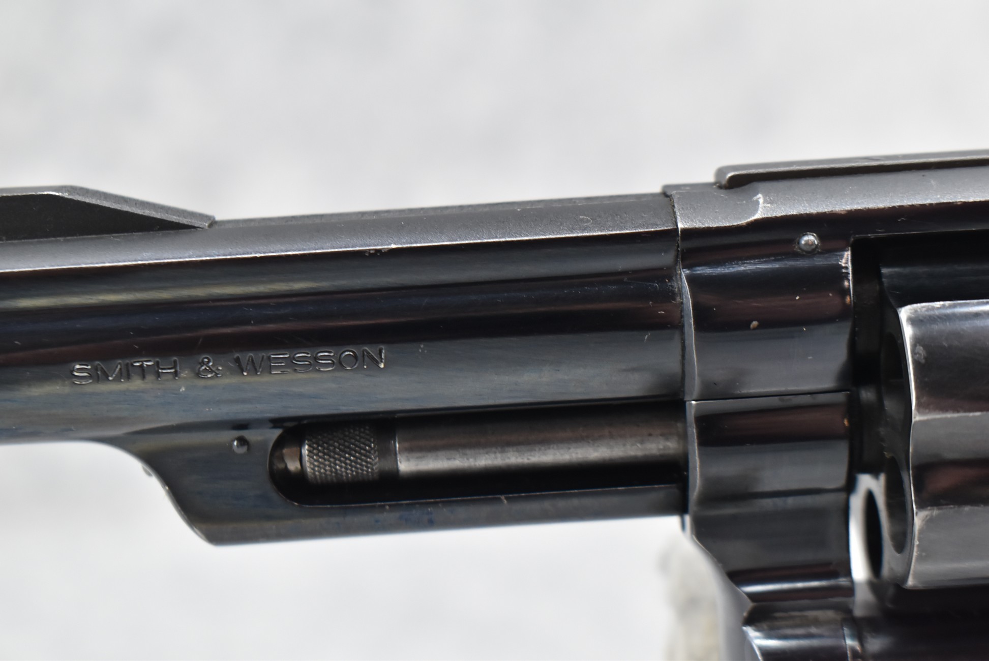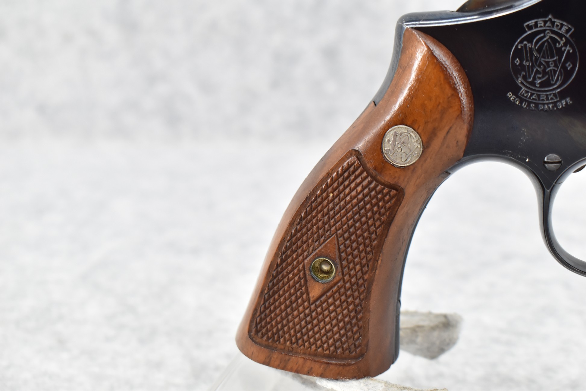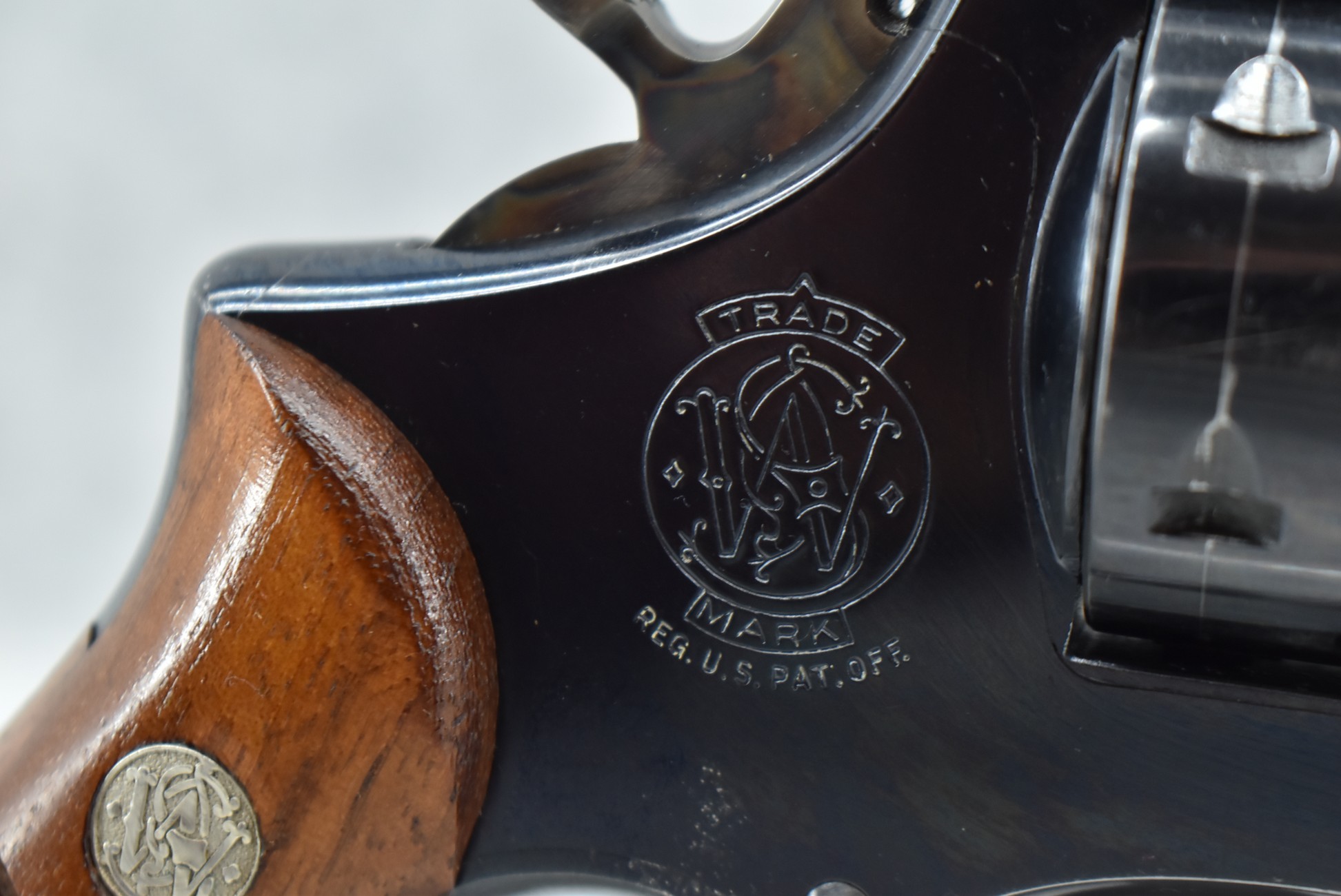 668R. Smith & Wesson – Mod. 19-1 – 357 Mag. Cal. Double Action Revolver – w/4” Barrel w/Ramp Blade Front and Adjustable Rear Sights – Blued Finish – w/Factory Diamond Checkered Wood Grips w/Smith & Wesson Medallion