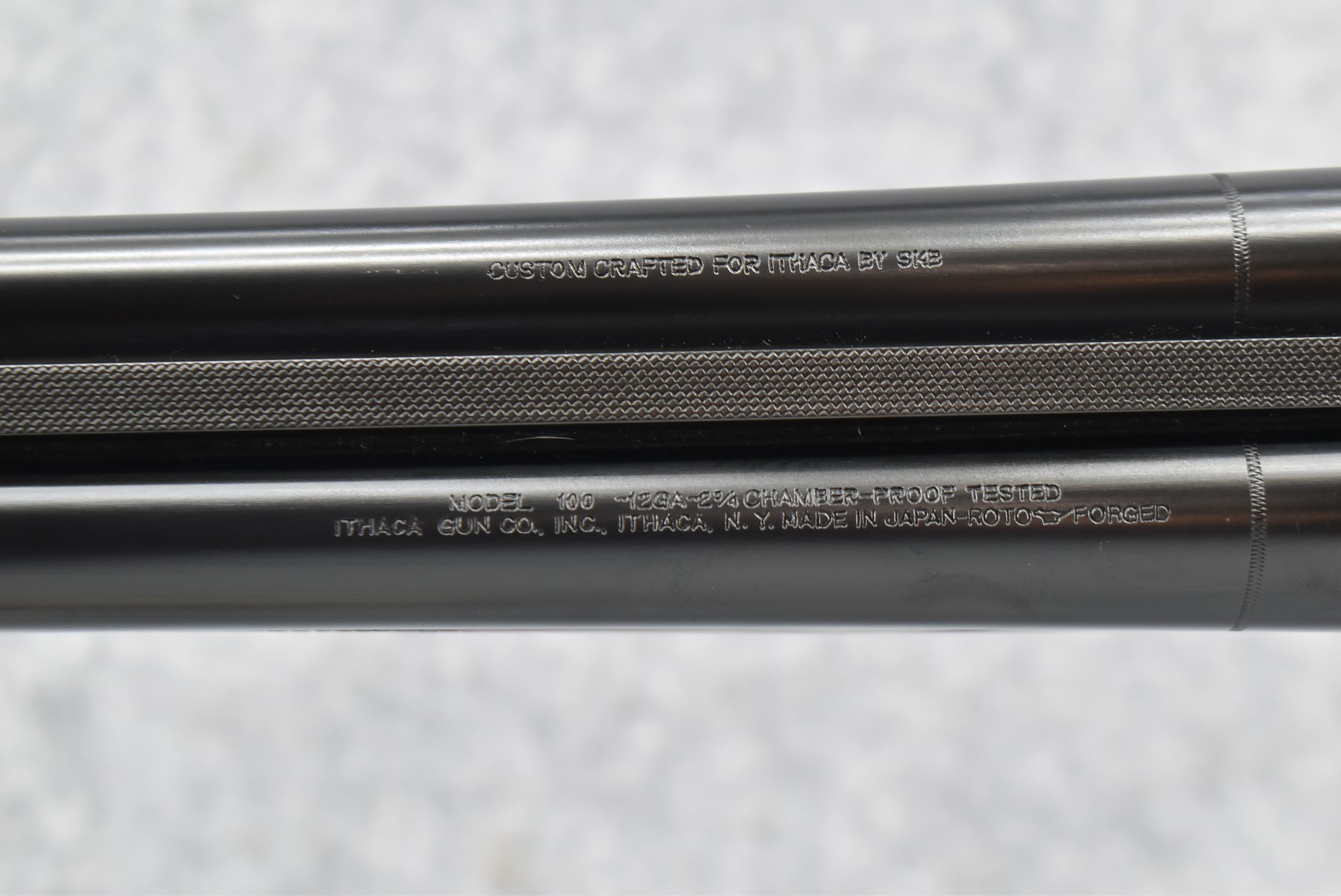 670R. Ithaca By SKB – Mod. Ithaca 100 – 12ga. 2¾” Double Barrel Shotgun – w/28” Solid Rib Mod and Imp Mod Choked Barrels w/Fiber Optic Front Sight – Blued Finish – w/Factory Checkered Capped Pistol Grip Wood Stocks w/Factory Butt Plate – w/Single Select Trigger