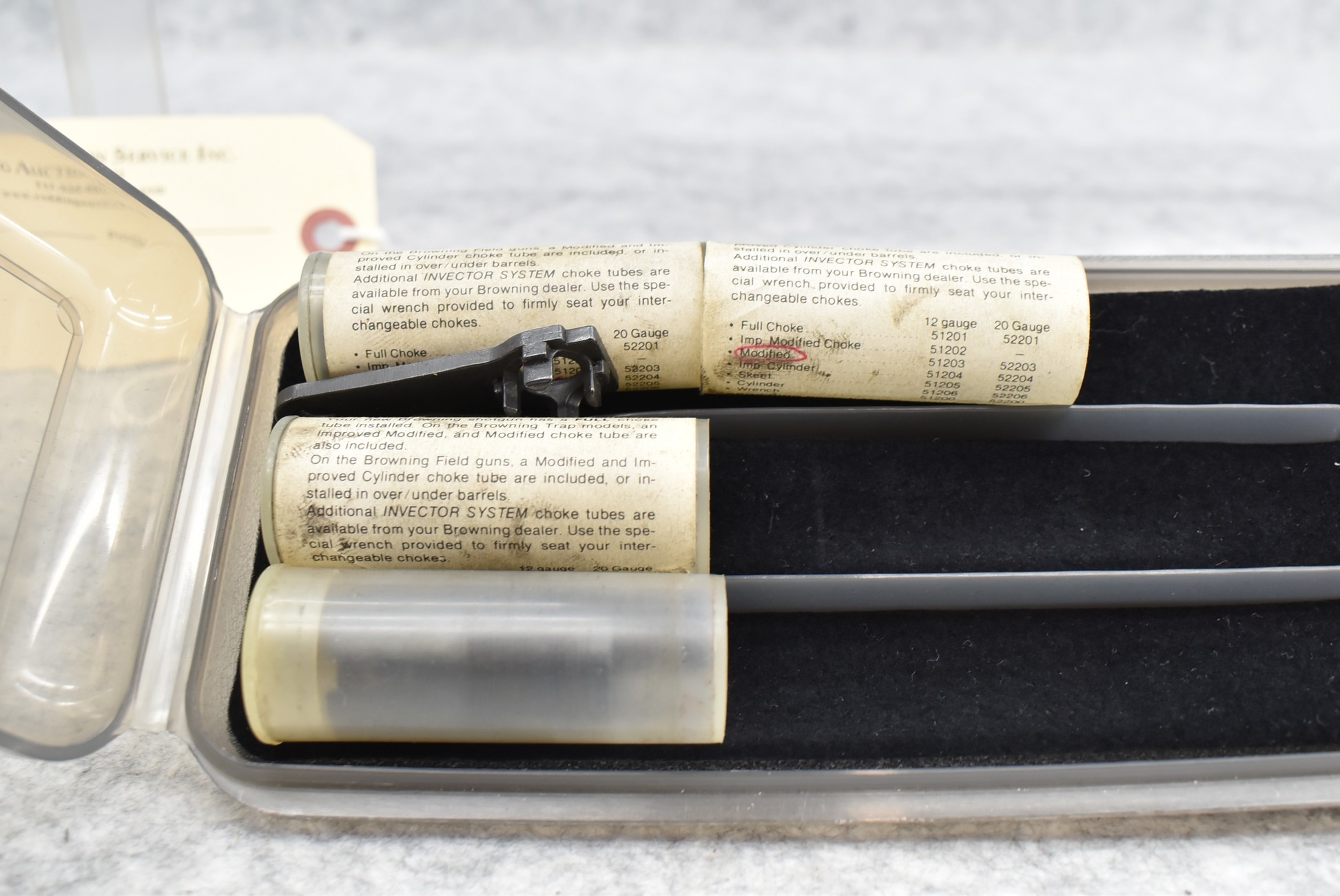 673R. Browning – Mod. Field Model – 12ga. 3” Pump Action Shotgun – w/22” Vent Rib Invector Choked Barrel w/Front Bead Sight – Blued Finish – w/Factory Checkered Straight Grip Wood Stocks w/Factory Butt Plate – w/Factory Set of Chokes