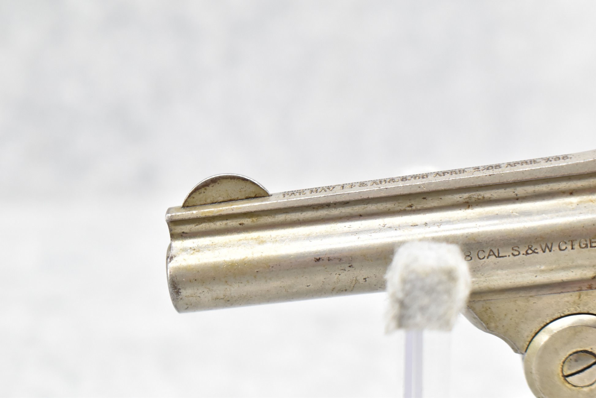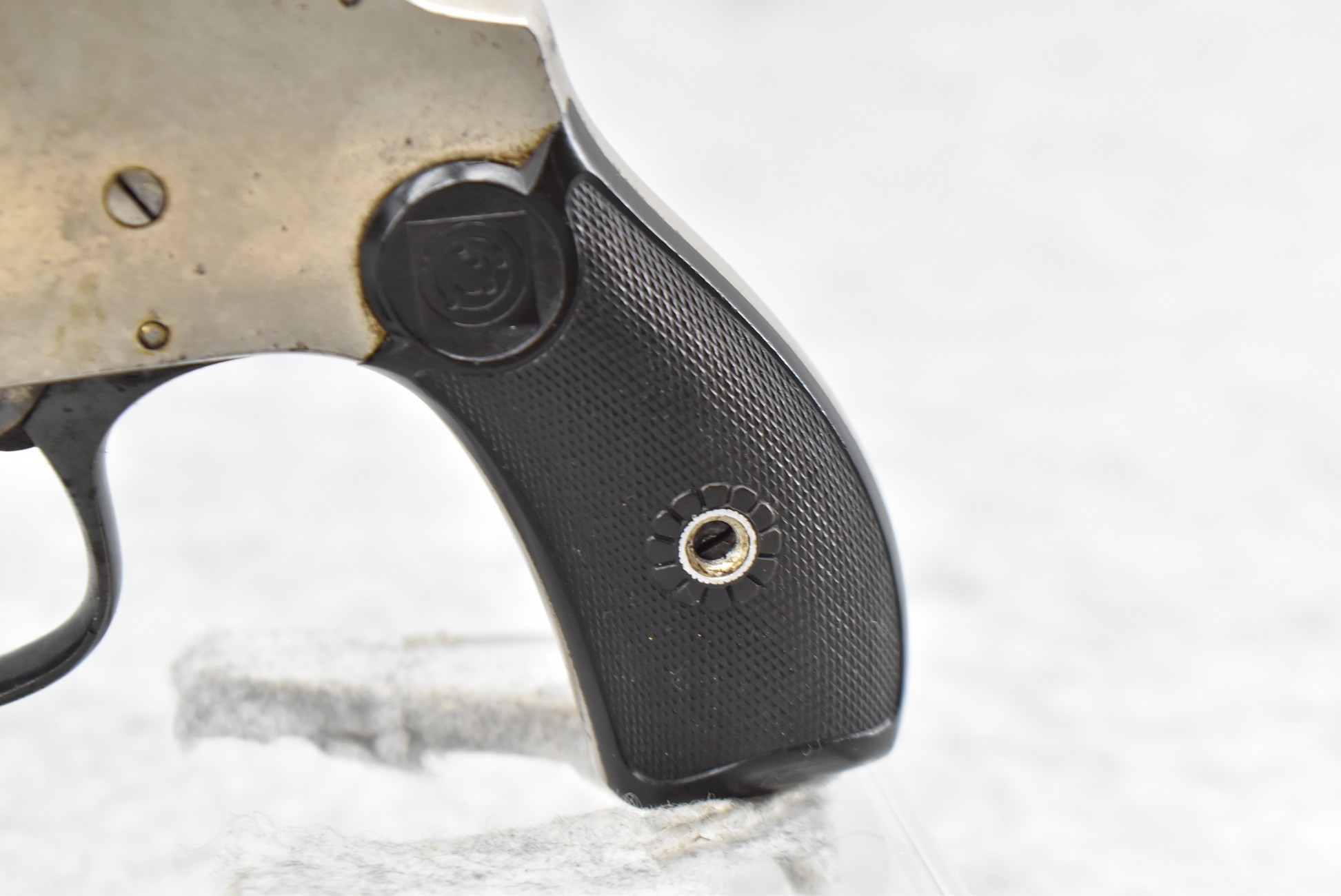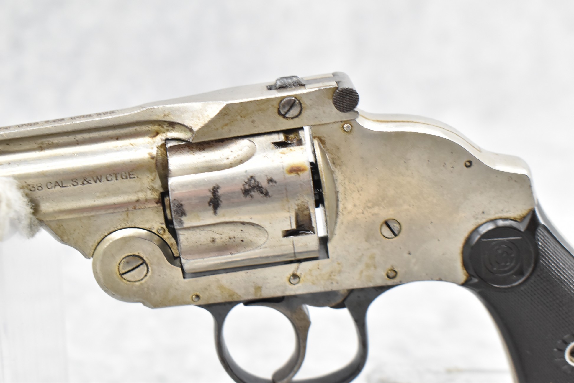 676R. H. & R. Arms – Mod. Top Break Concealed Hammer – 38 S&W Cal. Double Action Revolver – w/3 ¼” Top Rib Barrel w/Factory Sights – Nickel Finish – w/H&R Target Checkered Hard Rubber Grips – Fully Functional