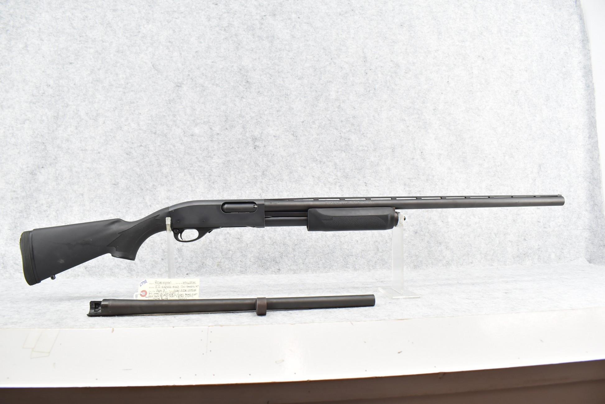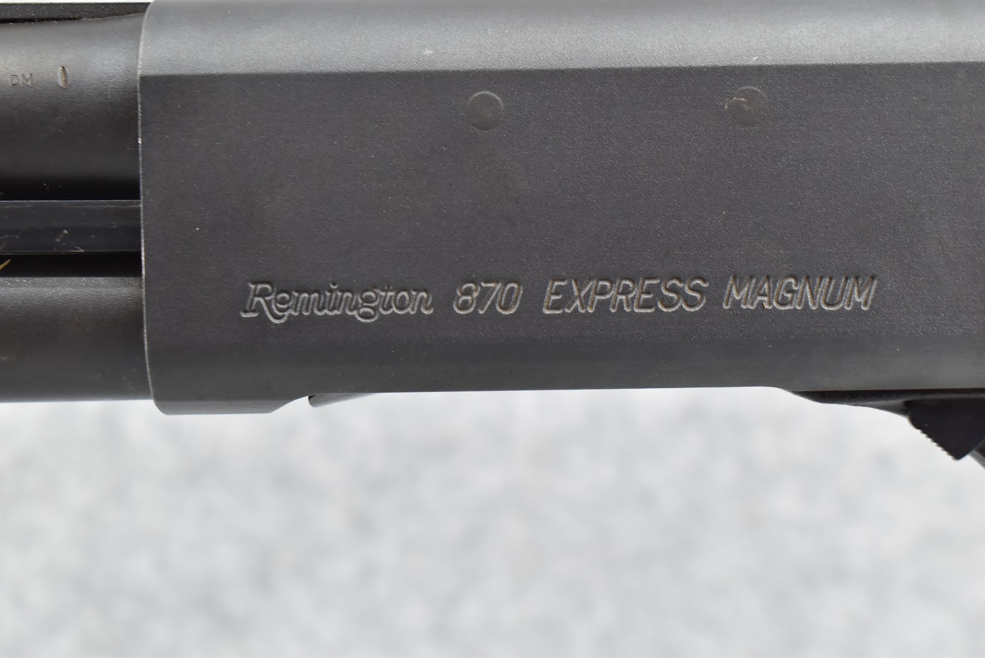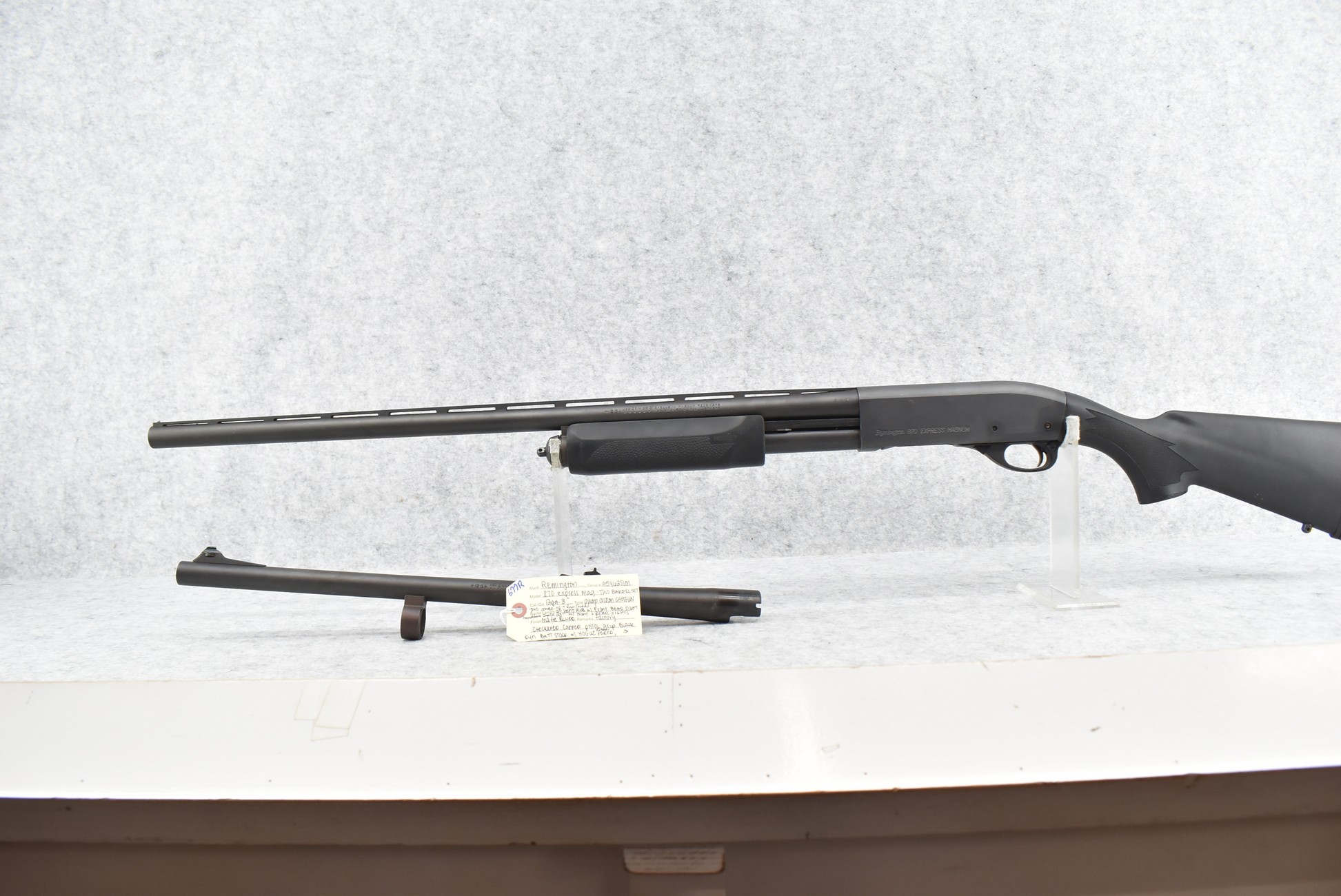 677R. Remington – Mod. 870 Express Mag 2-Barrel Set Combo – 12ga. 3” Pump Action Shotgun – w/1 28” Vent Rib Rem. Choked Barrel w/Front Bead Sight – 2nd is 26” Smoothbore Imp. Cyl. Choked Barrel w/Rifle Sights – Matte Blued Finish – w/Factory Checkered Capped Pistol Grip Black Synthetic Butt Stock w/Hogue Rubber Forend and Factory Recoil Pad