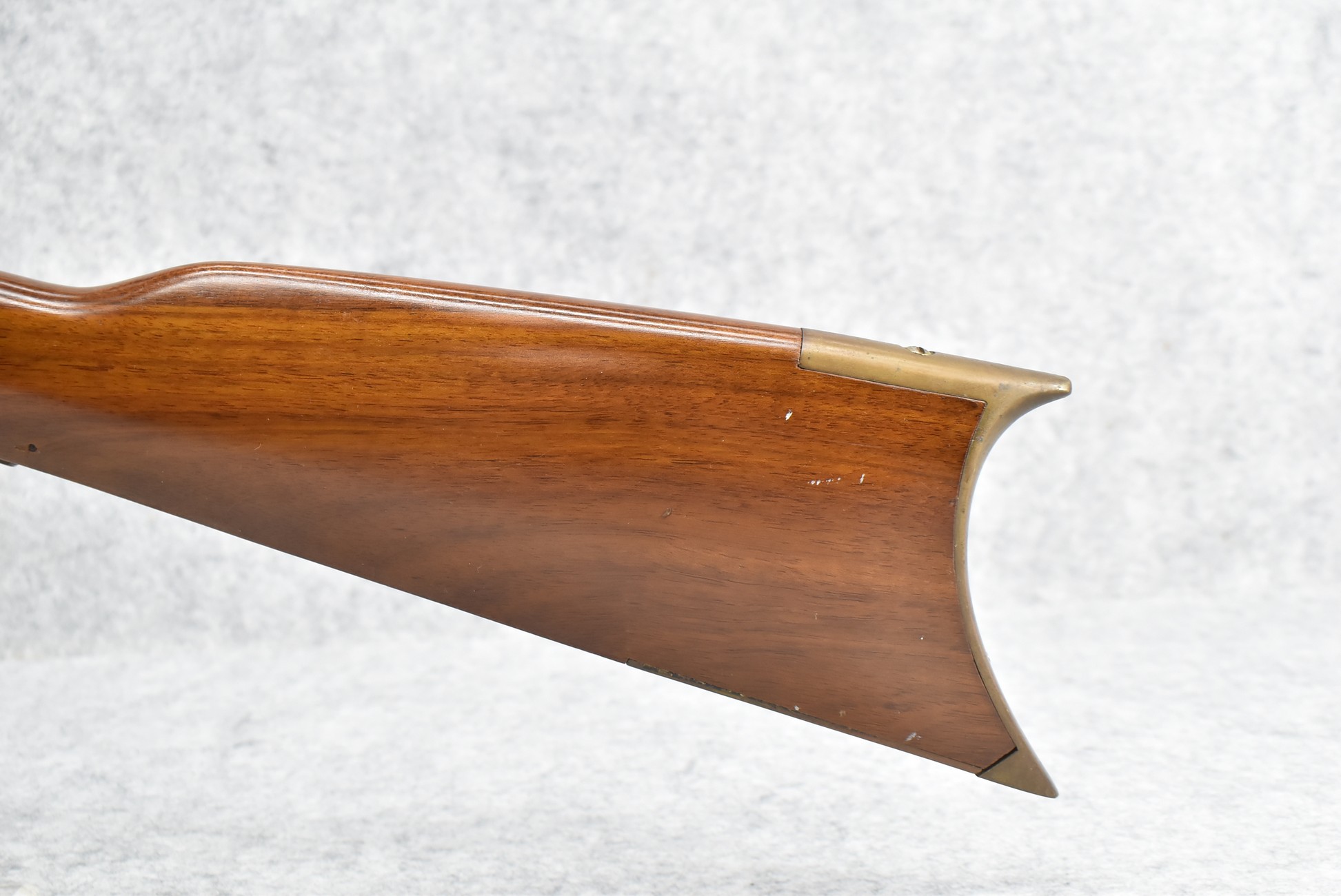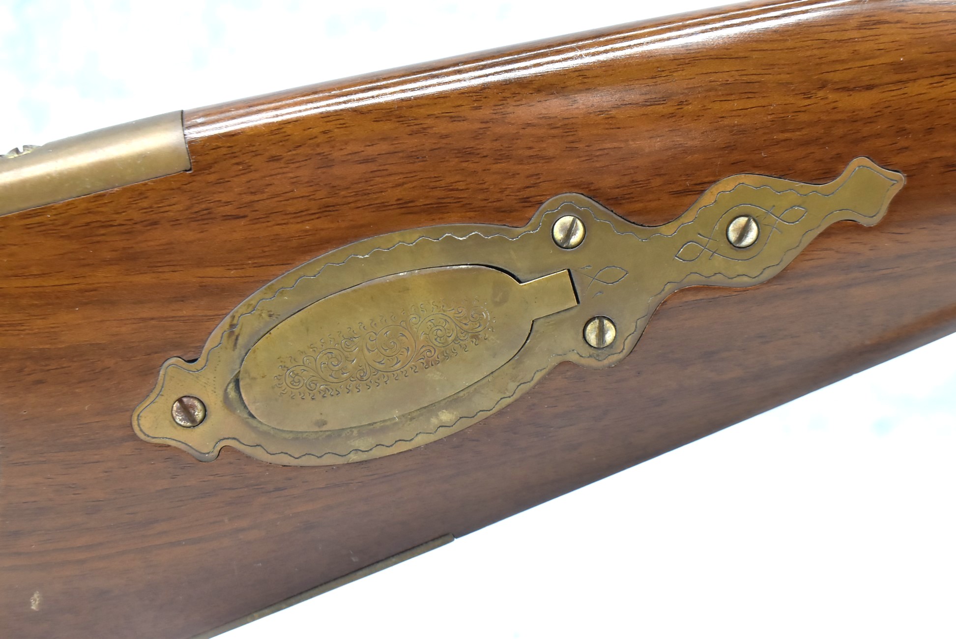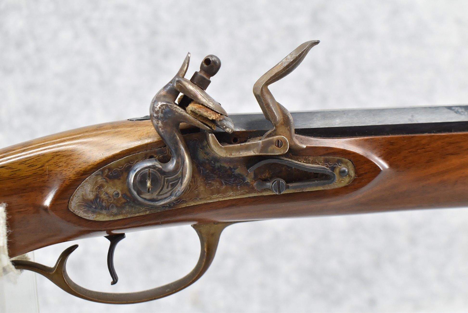 679.        Italian – Mod. Kentuckian – 50 Cal. Black Powder Flintlock Rifle – w/35” Octagon Barrel w/Front and Rear Iron Sights – Blued Finish w/Case Hardened Lock Plate – w/Full Straight Grip Wood Stock w/Crescent Metal Butt Plate – w/Brass Furniture – w/1-Piece Patch Box – w/Ramrod