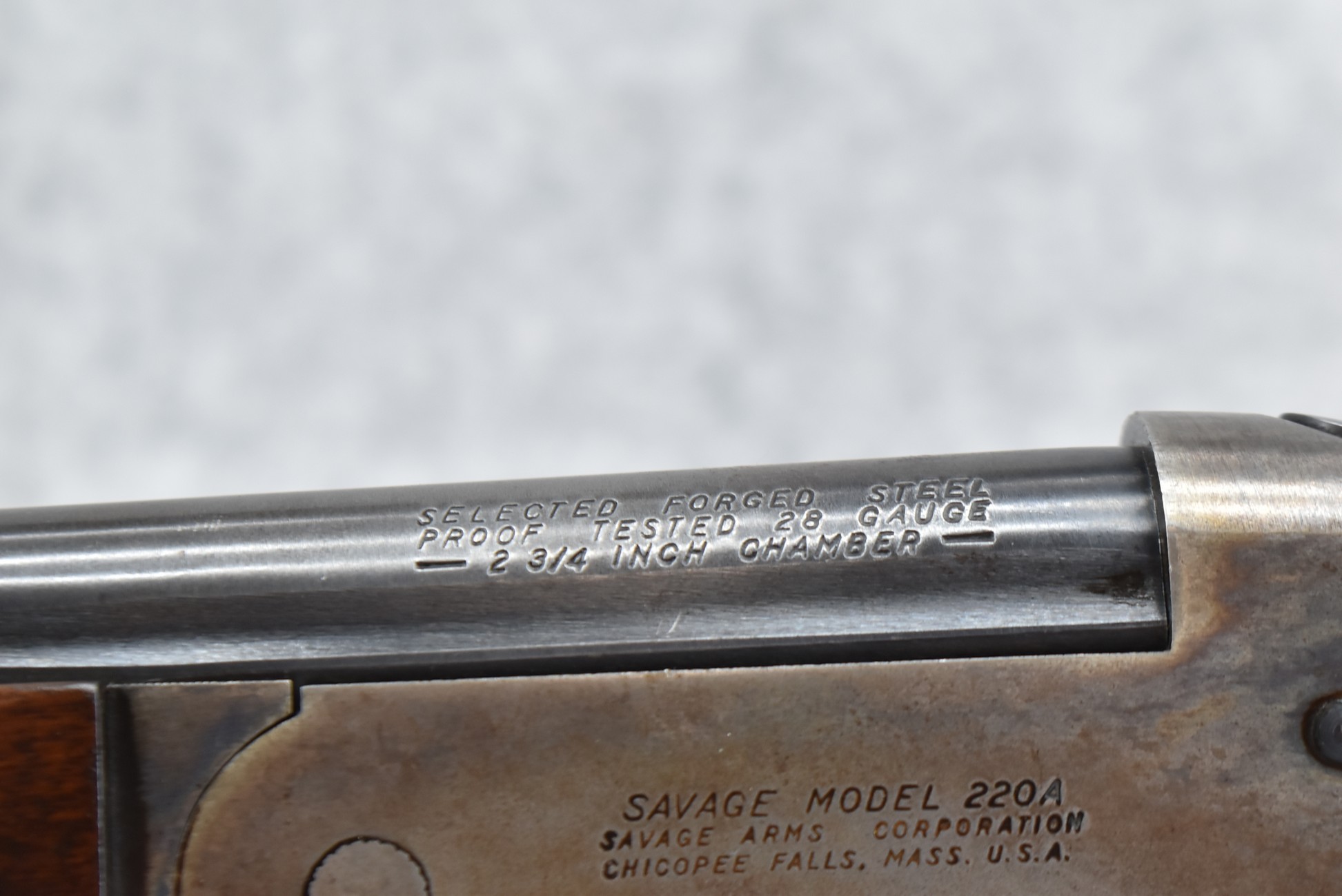 682R. Savage – Mod. 220A – 28ga. 2¾” Single Shot Shotgun – w/28” Barrel w/Front Bead Sight – Blued/Grey Finish – w/Smooth Pistol Grip Wood Stocks w/Factory White Line Pad