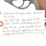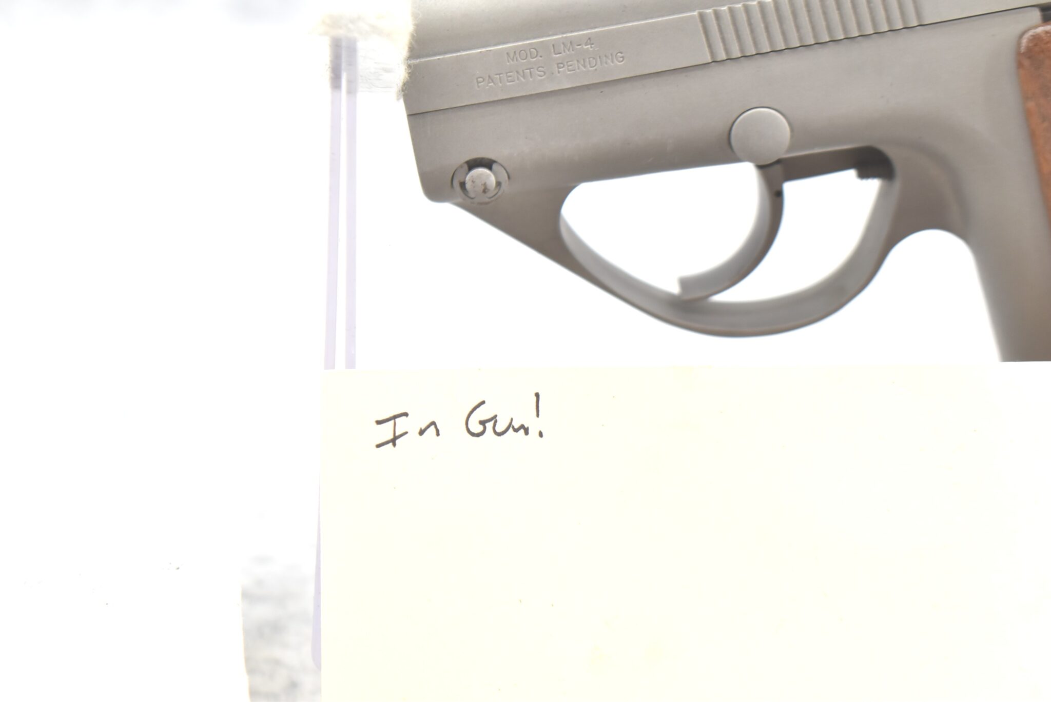 685R. American Derringer Corp. – Mod. LM4 – 45 ACP Cal. Semi-Auto Pistol – w/3 ½” Barrel w/Factory Sights – Gray Finish – w/Smooth Wood Grips – w/Manual, Soft Case & Spare Grip Parts – Note: Mag Needs Attention, Won’t Stay in Gun!