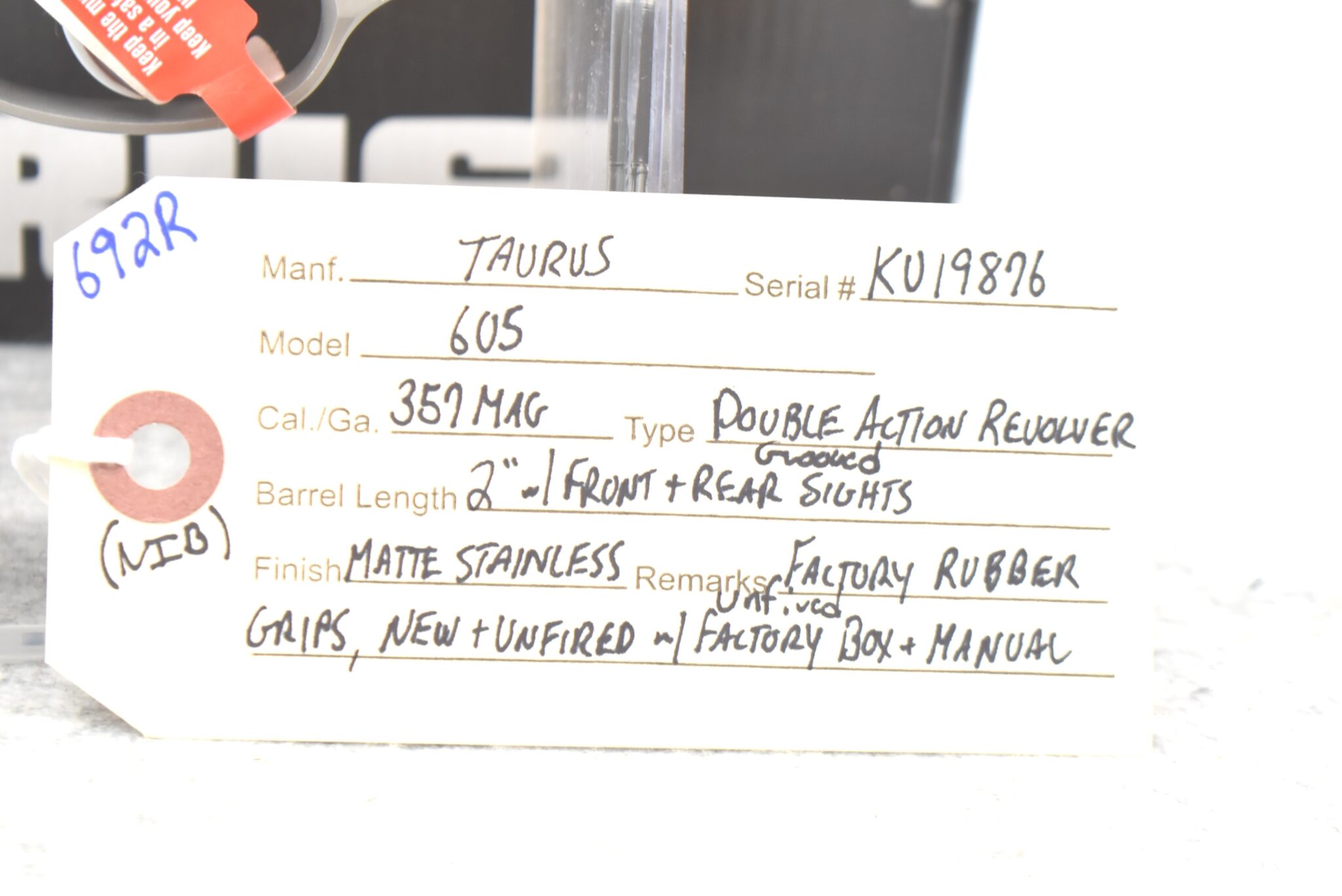 692R. Taurus – Mod. 605 – 357 Mag. Cal. Double Action Revolver – w/2” Barrel w/Front & Rear Grooved Sights – Matte Stainless Finish – w/Factory Rubber Grips – New & Unfired w/Factory Box & Manual