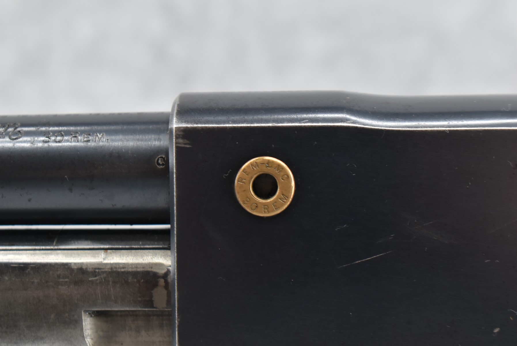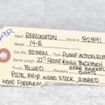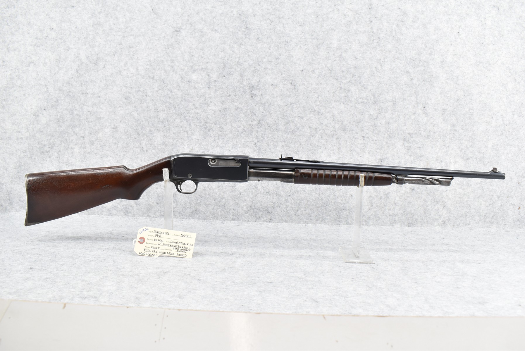 69R. Remington – Mod. 14-A – 30 Rem. Cal. Pump Action Rifle – w/22” Barrel w/Front & High Buckhorn Rear Barrels Sights – Blued Finish – w/Pistol Grip Wood Stock w/Ribbed Wood Forearm