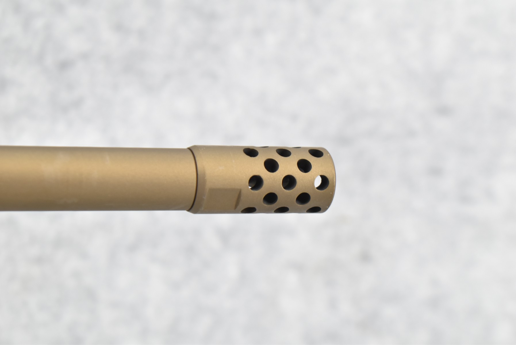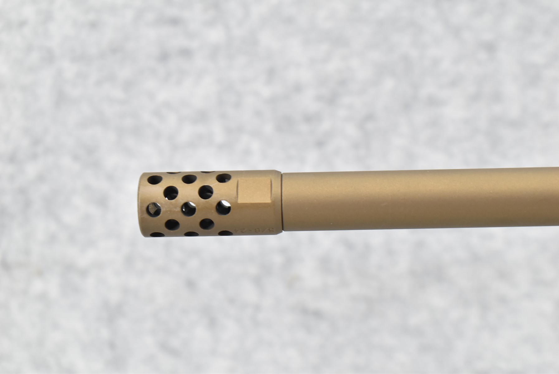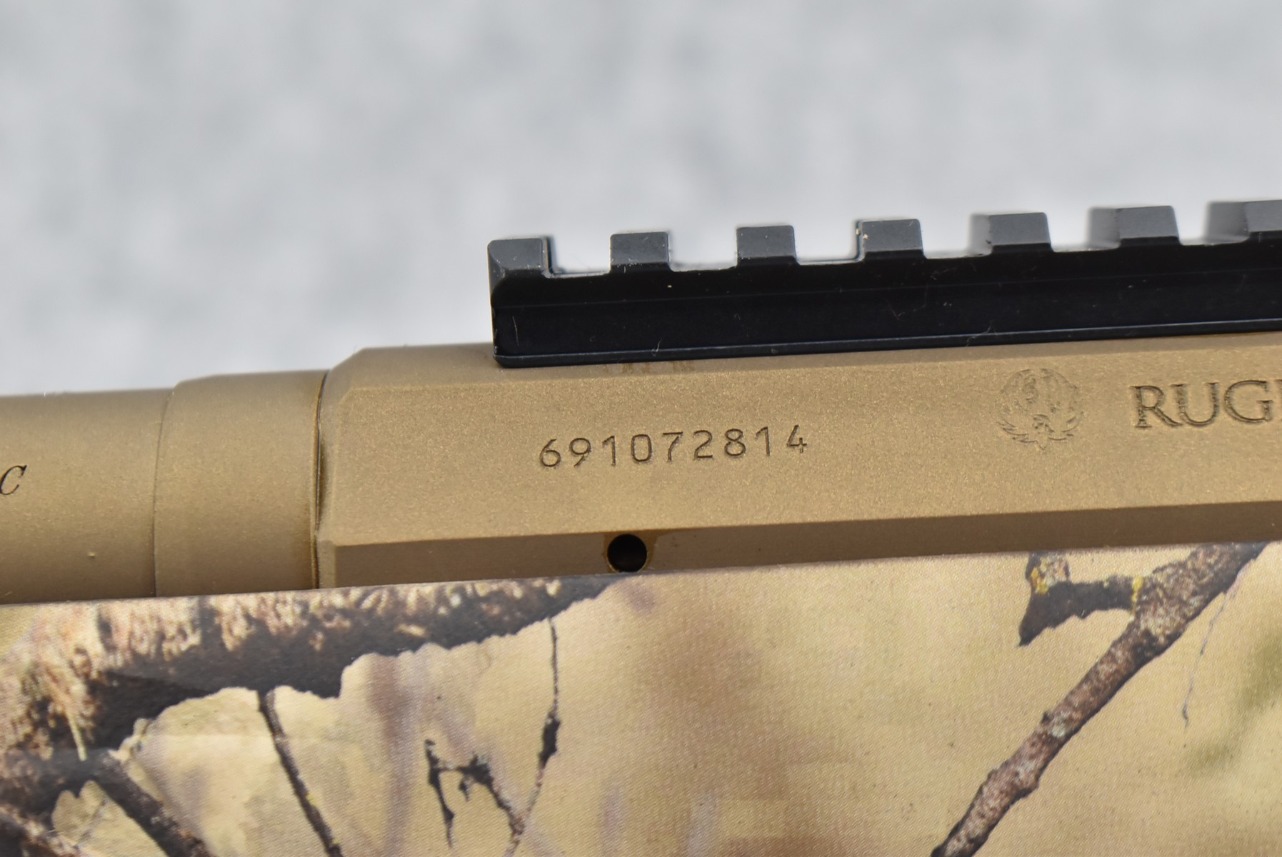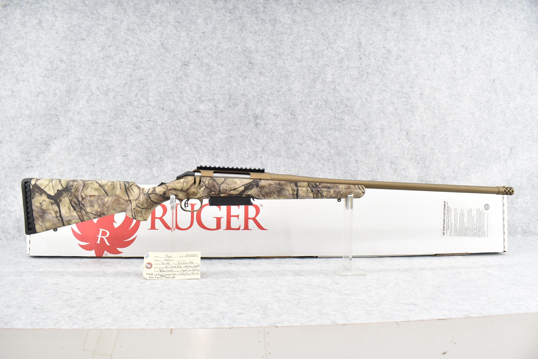 6R. Ruger – Mod. American – 7mm PRC Cal. Bolt Action Rifle – w/24” Barrel w/Muzzle Break and Picatinny Scope Rail – Burnt Bronze Cerakote Camoed Finish – w/Capped Synthetic Pistol Grip Go Wild 1-M Brush Stock w/Factory Recoil Pad – As New w/Factory Box and Factory Magazine