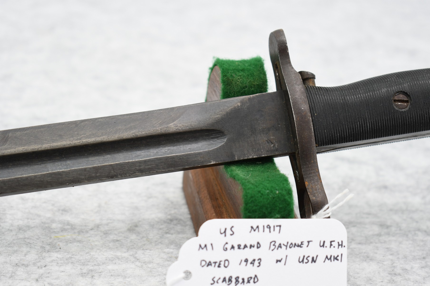 7. U.S. U.F.H. M1917 MI Garand Bayonet w/U.S.N. MKI Scabbard – Dated 1943