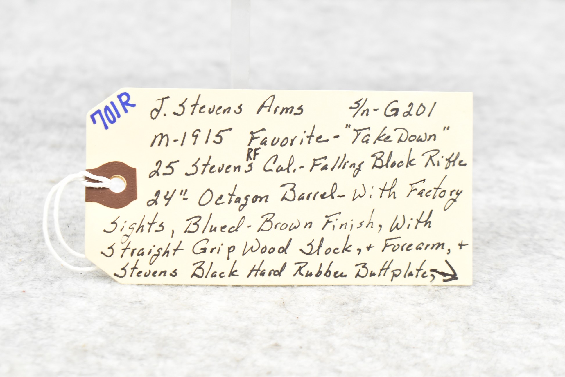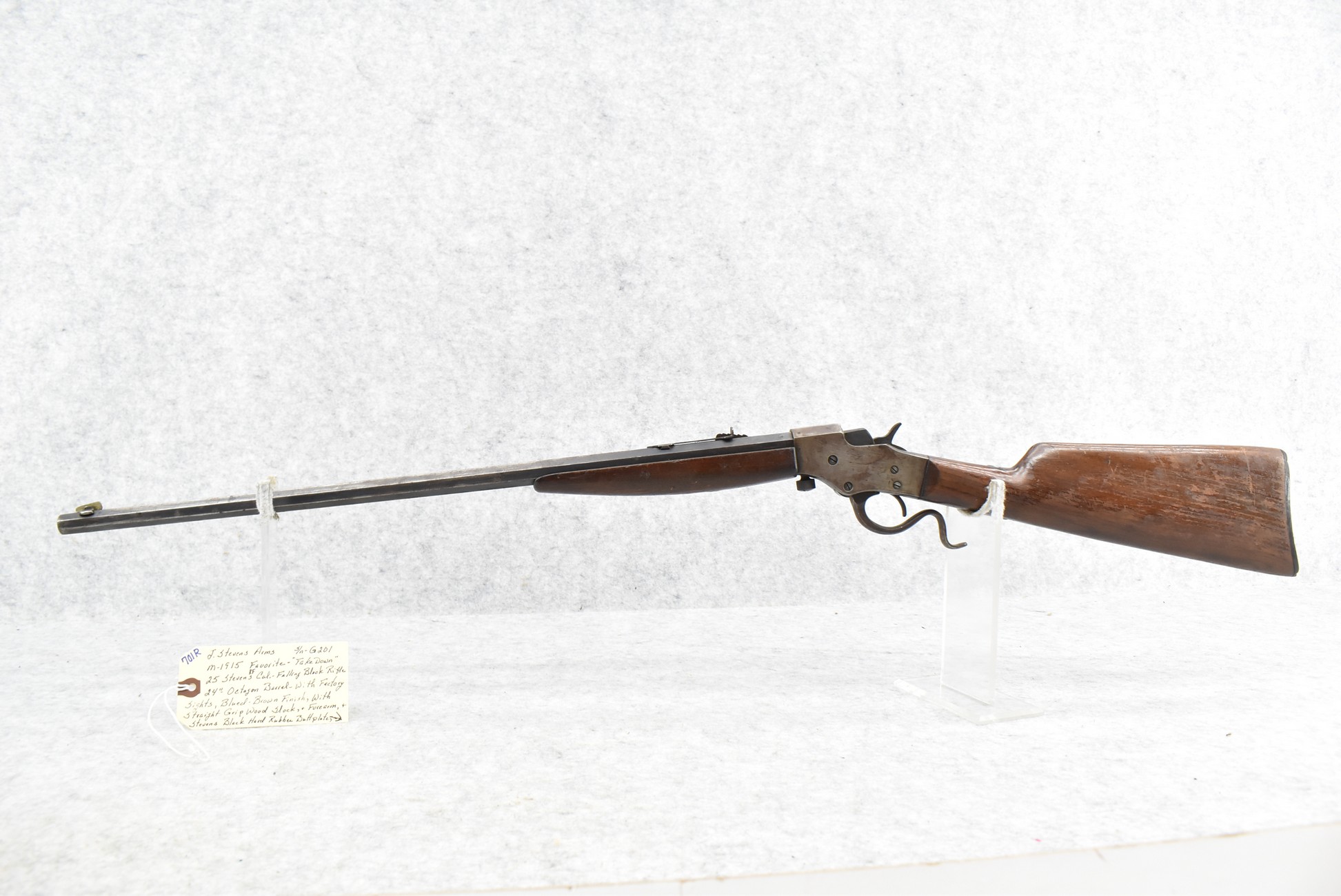 701R. J. Stevens Arms – Mod. 1915 Favorite Takedown – 25 Stevens Rimfire Cal. Falling Block Rifle – w/24” Octagon Barrel w/Factory Sights – Blued/Brown Finish – w/Straight Grip Wood Stocks w/Stevens Butt Plate – Fully Functional